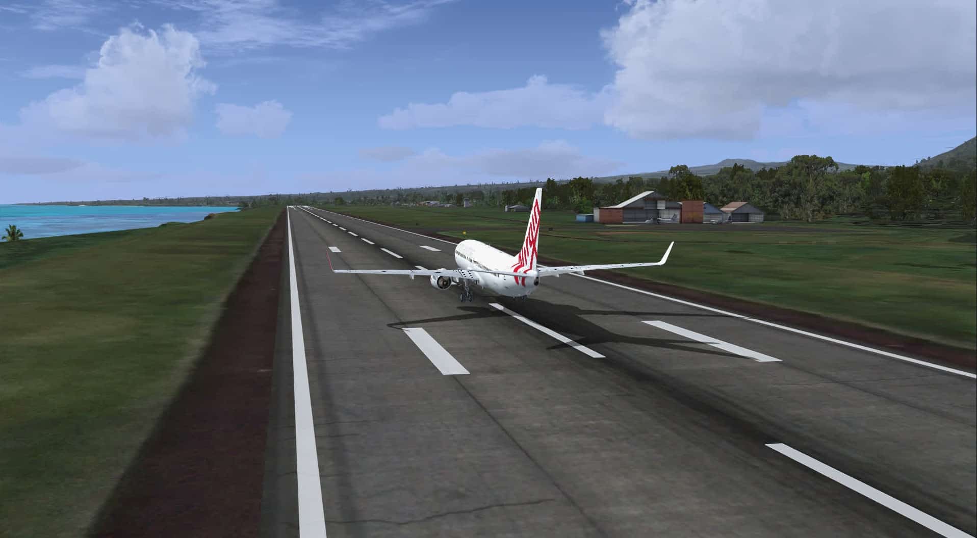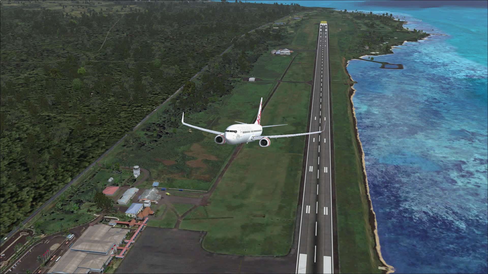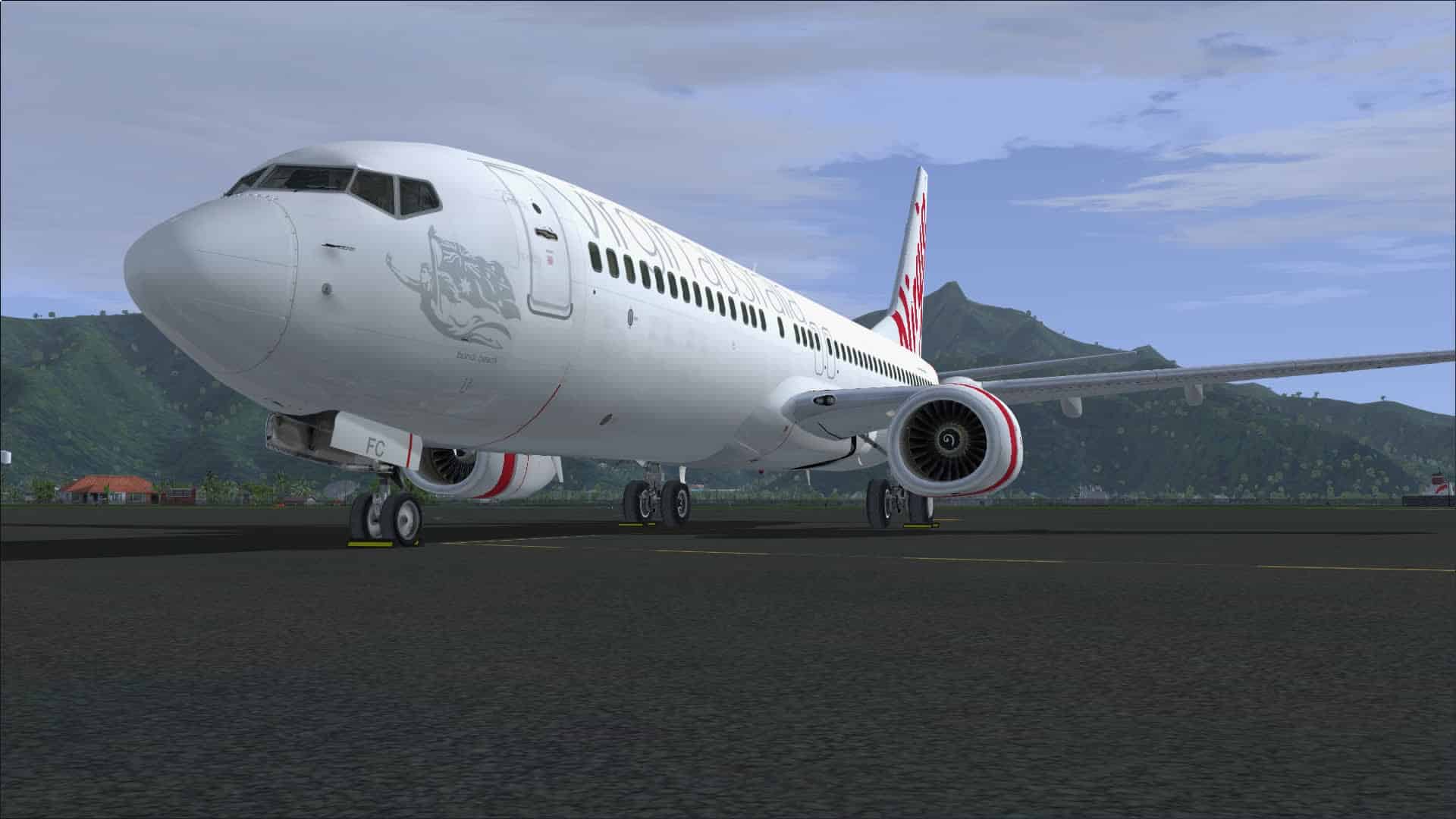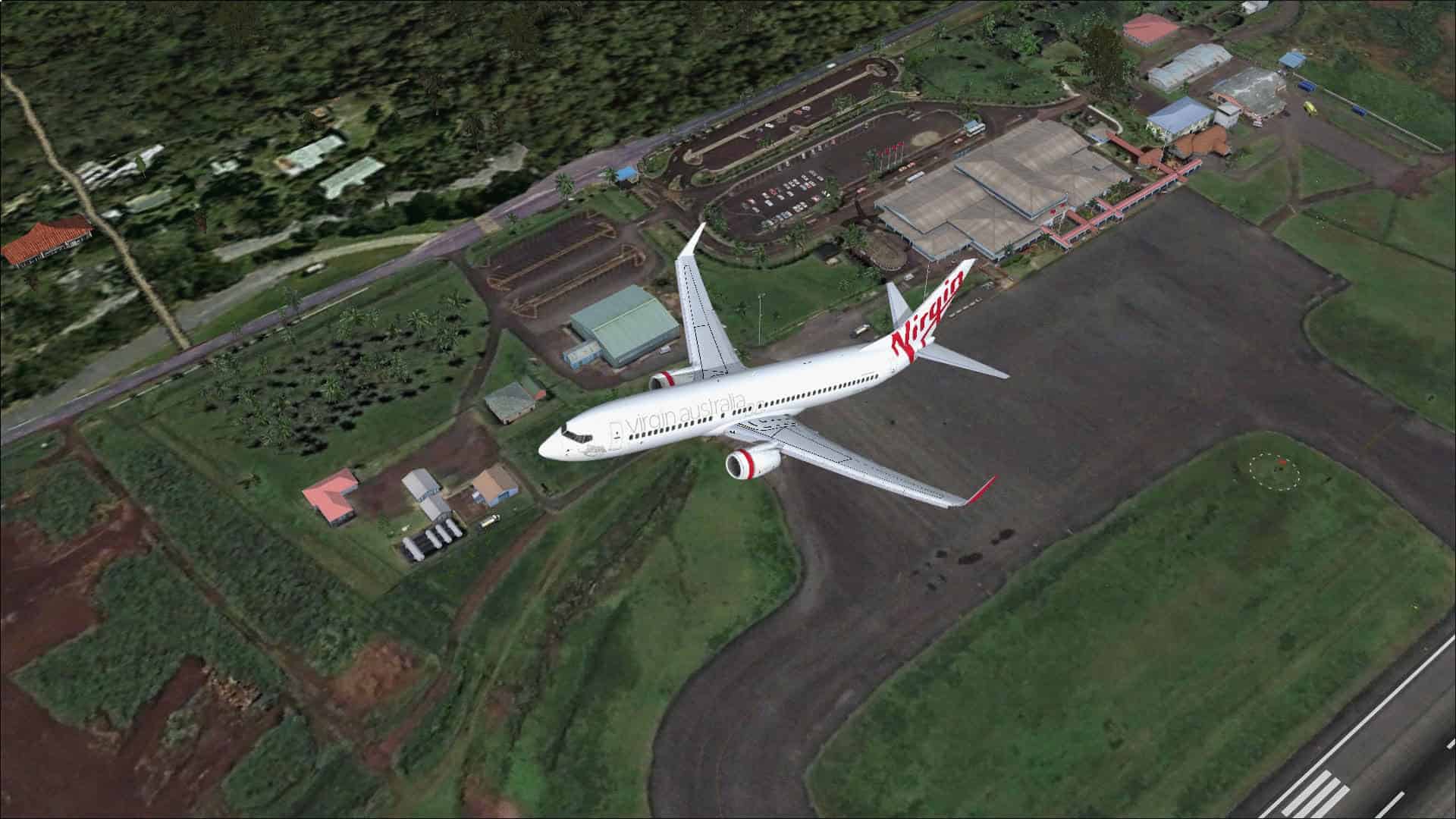 Auch auf West-Samoa gibt es einen internationalen Flughafen: Apia NSFA mit seiner 3000-Meter-Bahn ist der Anlaufpunkt für Flüge aus Australien und Neuseeland. Apia ist etwas kleiner als Pago, und der westliche Bereich von Samoa ist auch weniger detailliert modelliert als Amerikanisch-Samoa. Luftlinie ist die Strecke von Pago nach Apia etwa 130 km, dafür ist die 737 von Virgin Australia vielleicht etwas zu groß gewählt. Da Apia im Gegensatz zu Pago aber über Stars verfügt, ist es vorteilhaft, ein FMC an Bord zu haben.