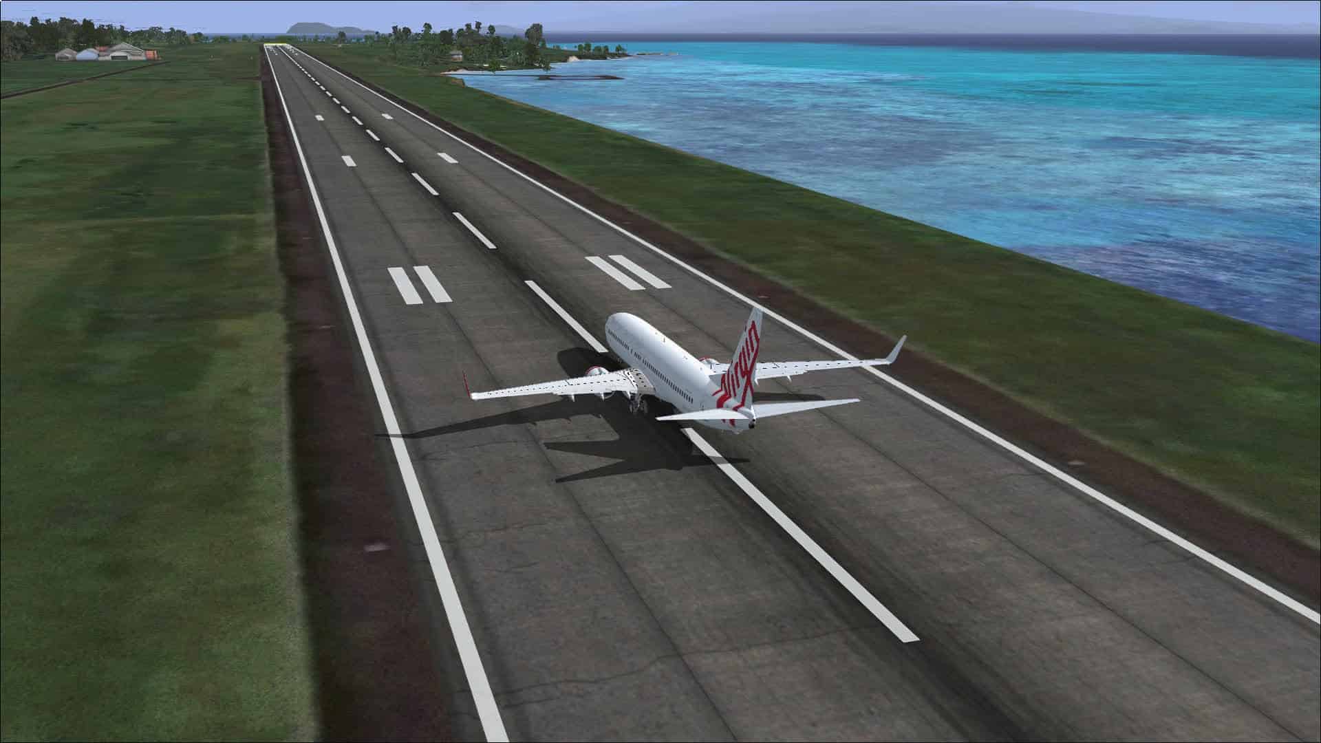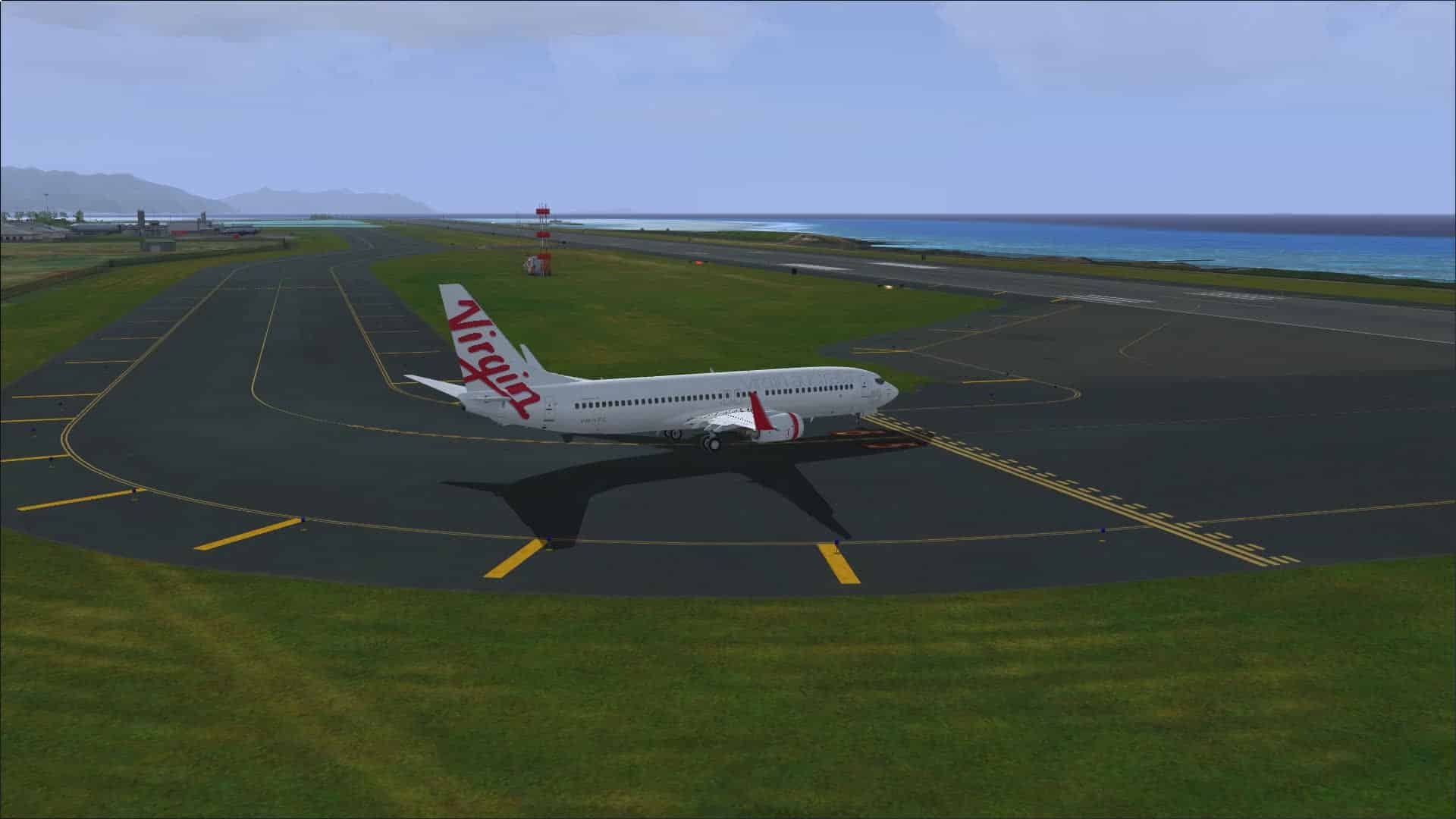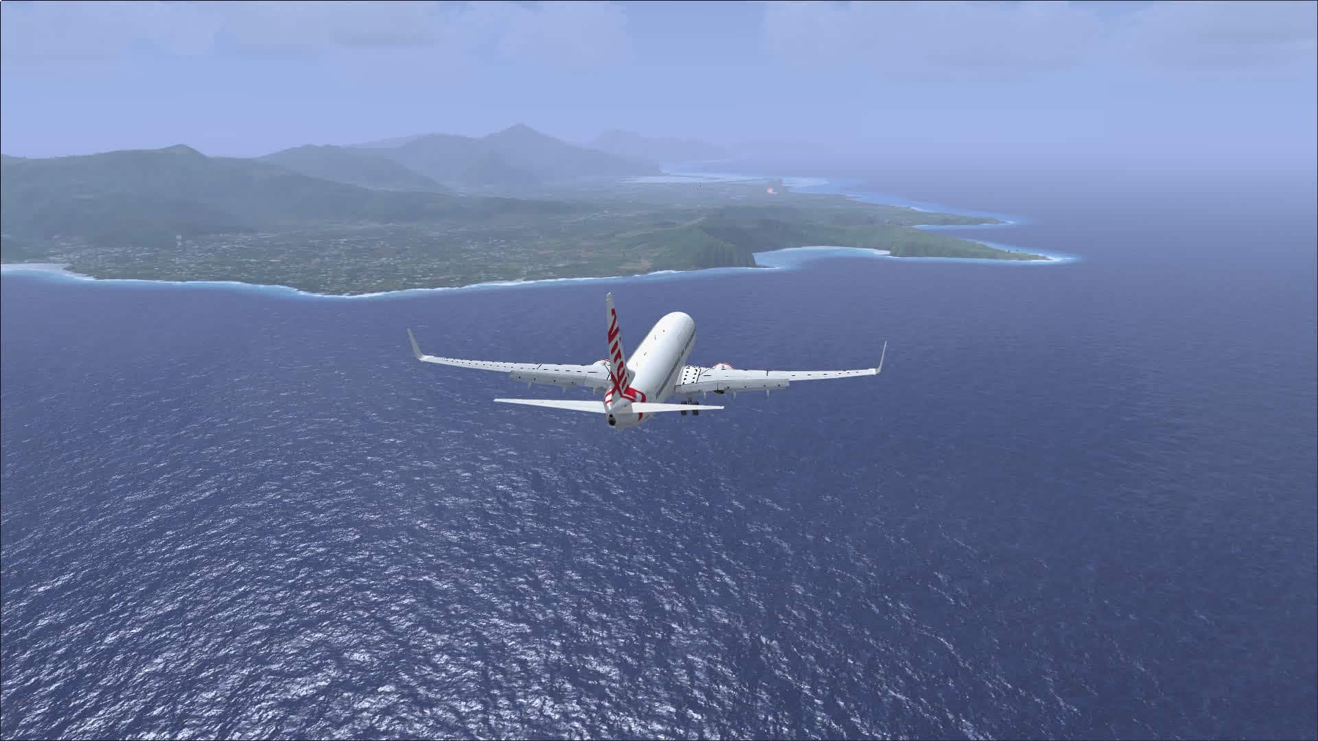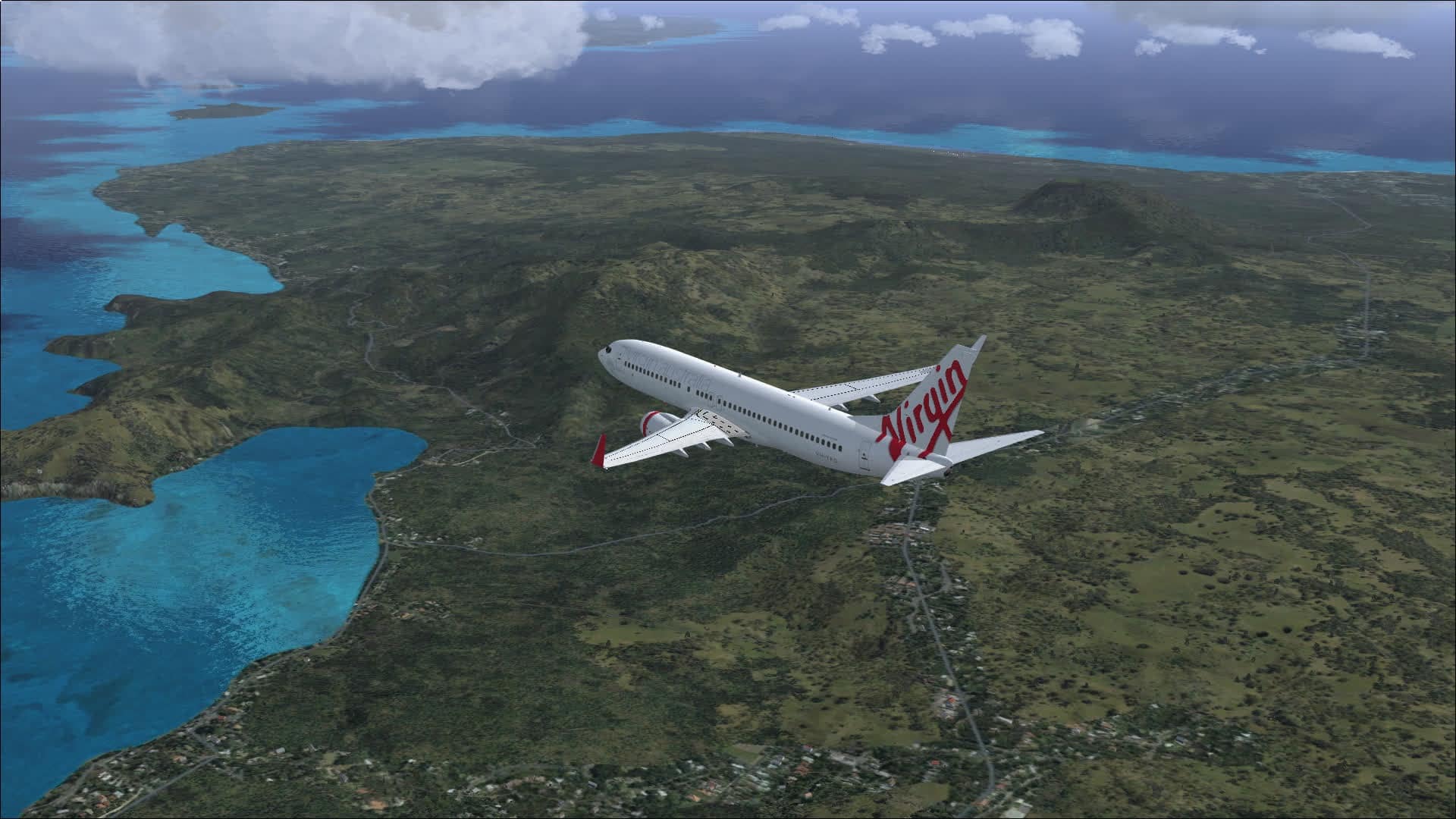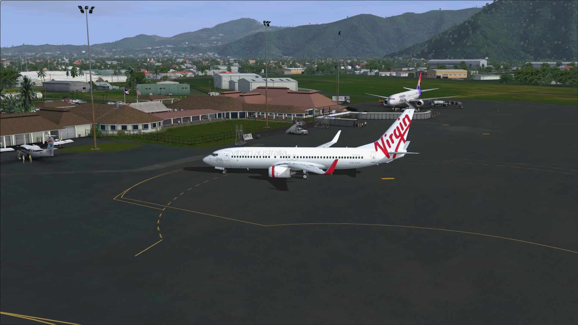 Auch auf West-Samoa gibt es einen internationalen Flughafen: Apia NSFA mit seiner 3000-Meter-Bahn ist der Anlaufpunkt für Flüge aus Australien und Neuseeland. Apia ist etwas kleiner als Pago, und der westliche Bereich von Samoa ist auch weniger detailliert modelliert als Amerikanisch-Samoa. Luftlinie ist die Strecke von Pago nach Apia etwa 130 km, dafür ist die 737 von Virgin Australia vielleicht etwas zu groß gewählt. Da Apia im Gegensatz zu Pago aber über Stars verfügt, ist es vorteilhaft, ein FMC an Bord zu haben.