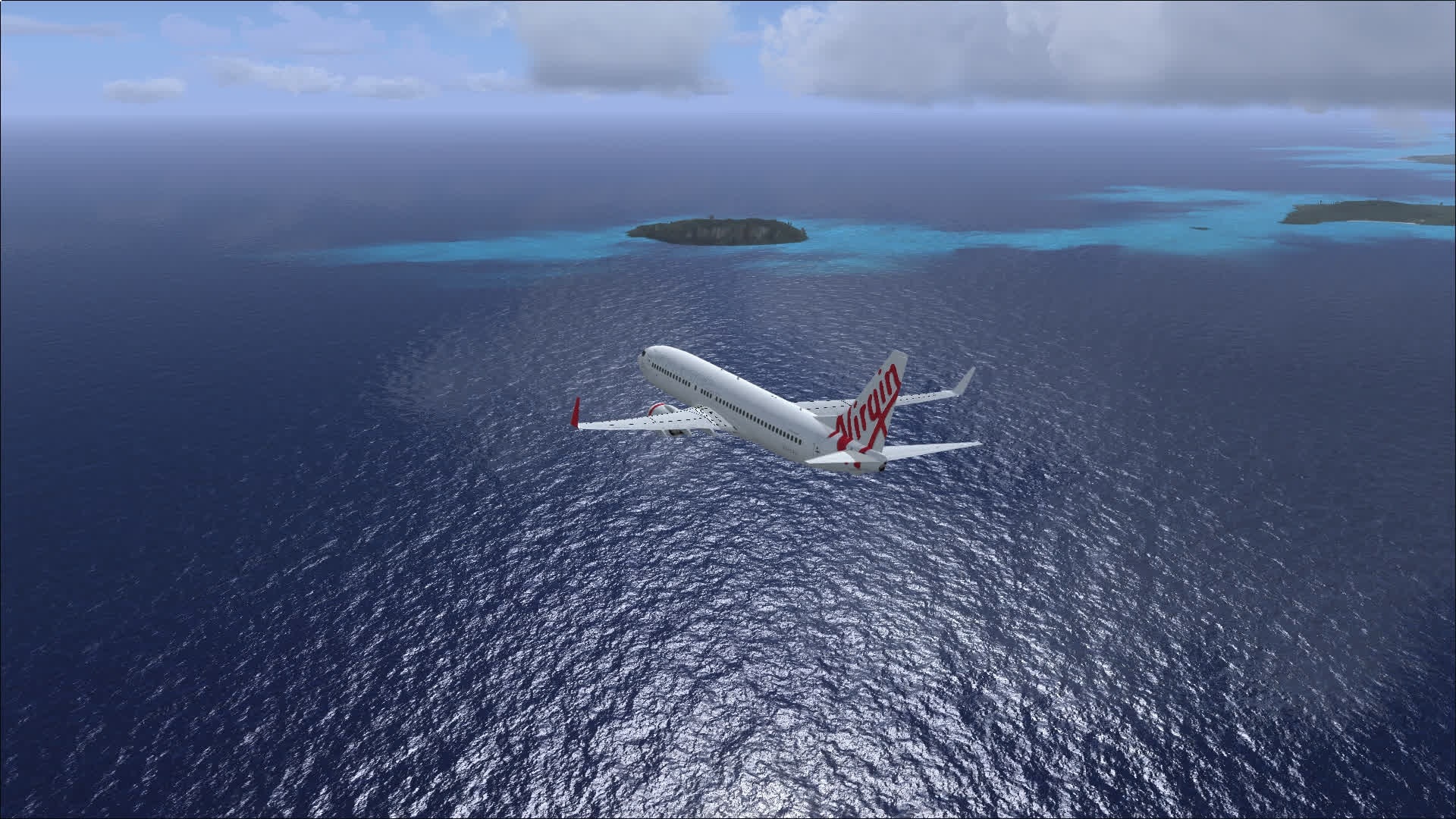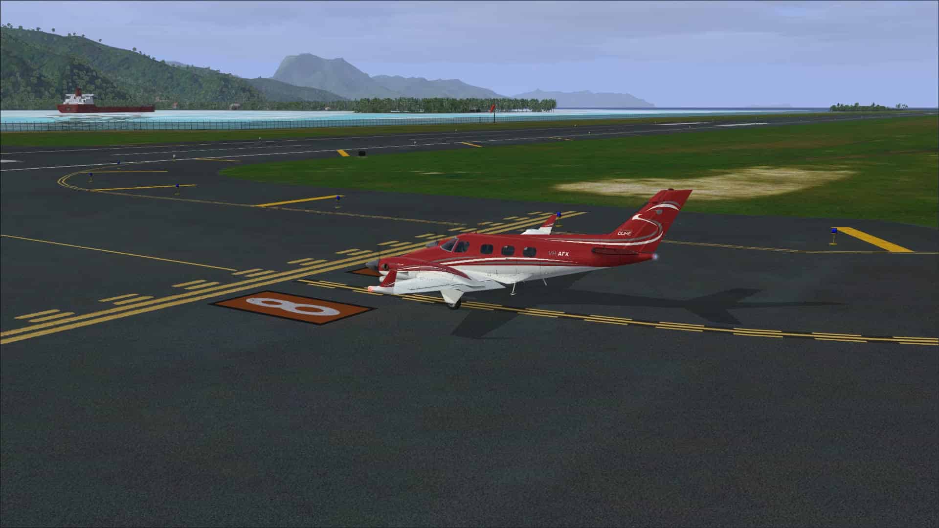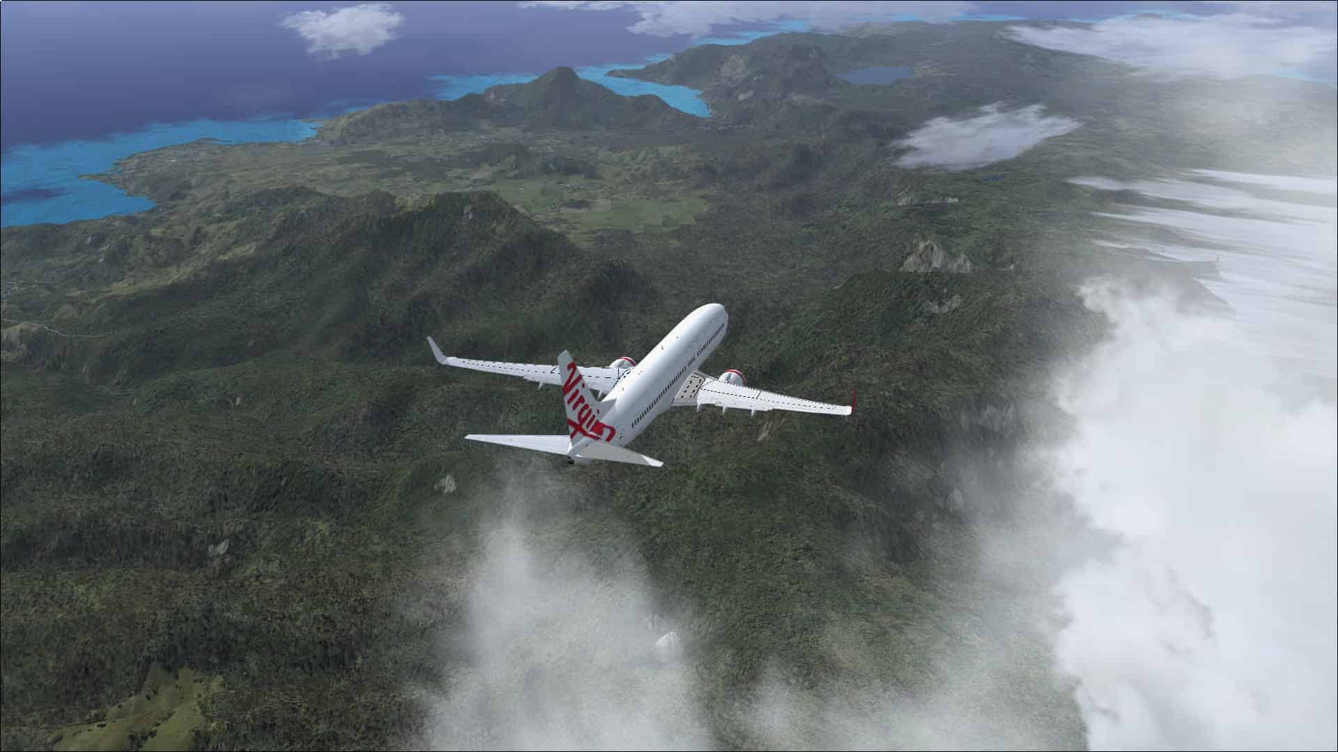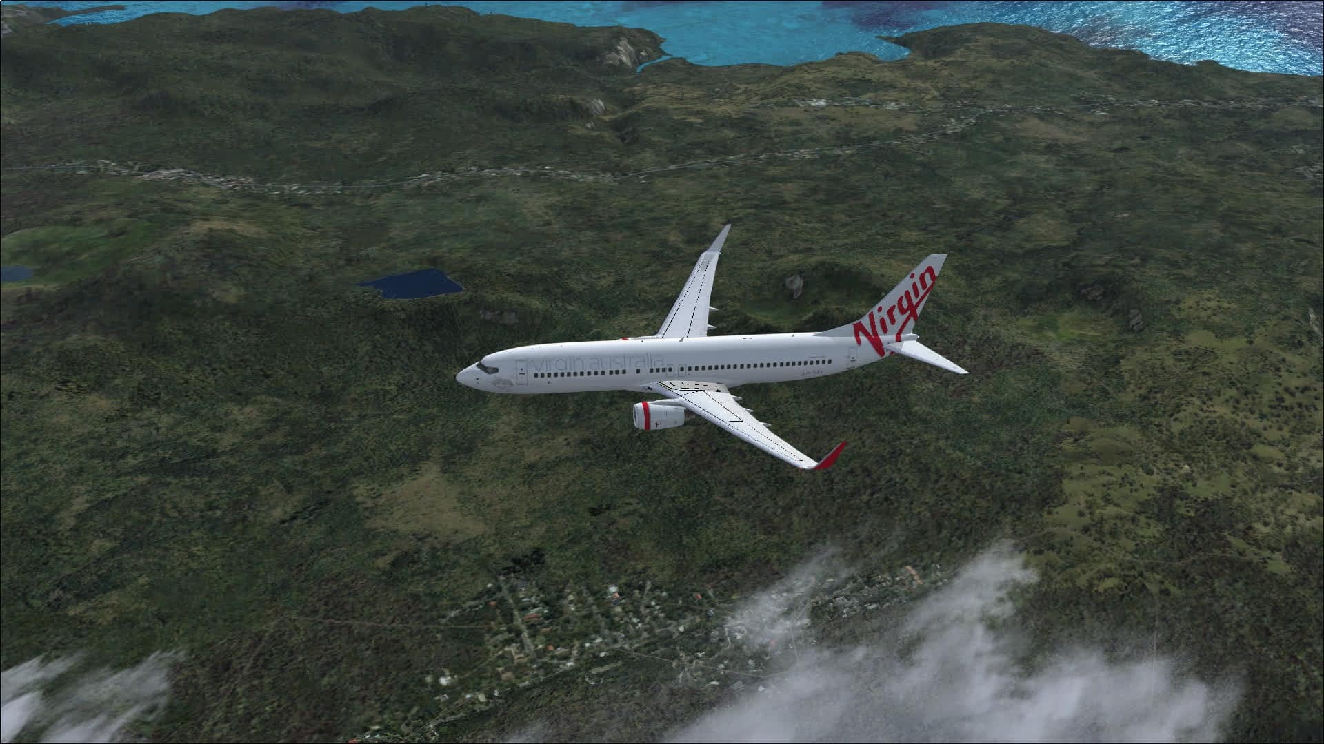 Auch auf West-Samoa gibt es einen internationalen Flughafen: Apia NSFA mit seiner 3000-Meter-Bahn ist der Anlaufpunkt für Flüge aus Australien und Neuseeland. Apia ist etwas kleiner als Pago, und der westliche Bereich von Samoa ist auch weniger detailliert modelliert als Amerikanisch-Samoa. Luftlinie ist die Strecke von Pago nach Apia etwa 130 km, dafür ist die 737 von Virgin Australia vielleicht etwas zu groß gewählt. Da Apia im Gegensatz zu Pago aber über Stars verfügt, ist es vorteilhaft, ein FMC an Bord zu haben.