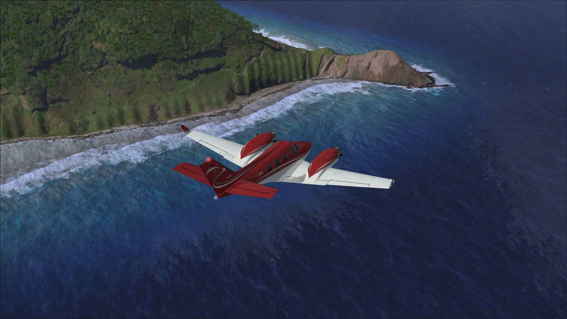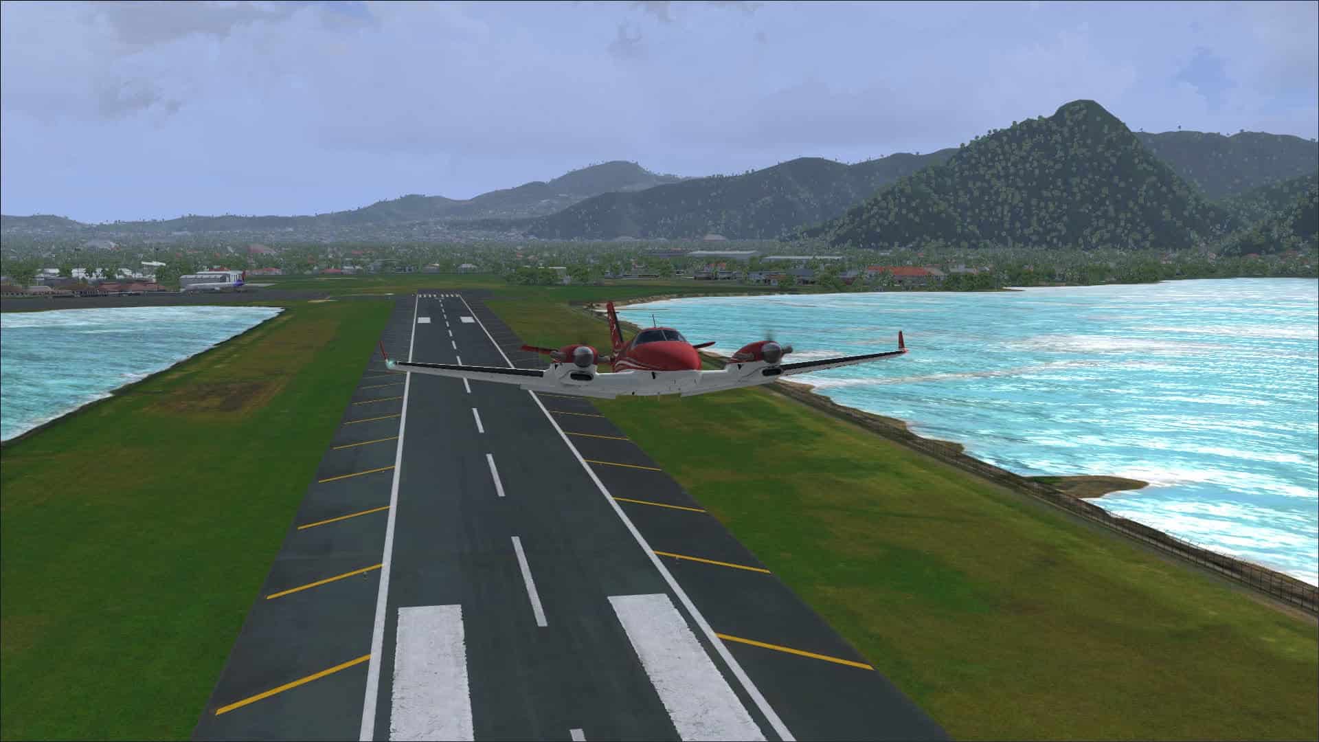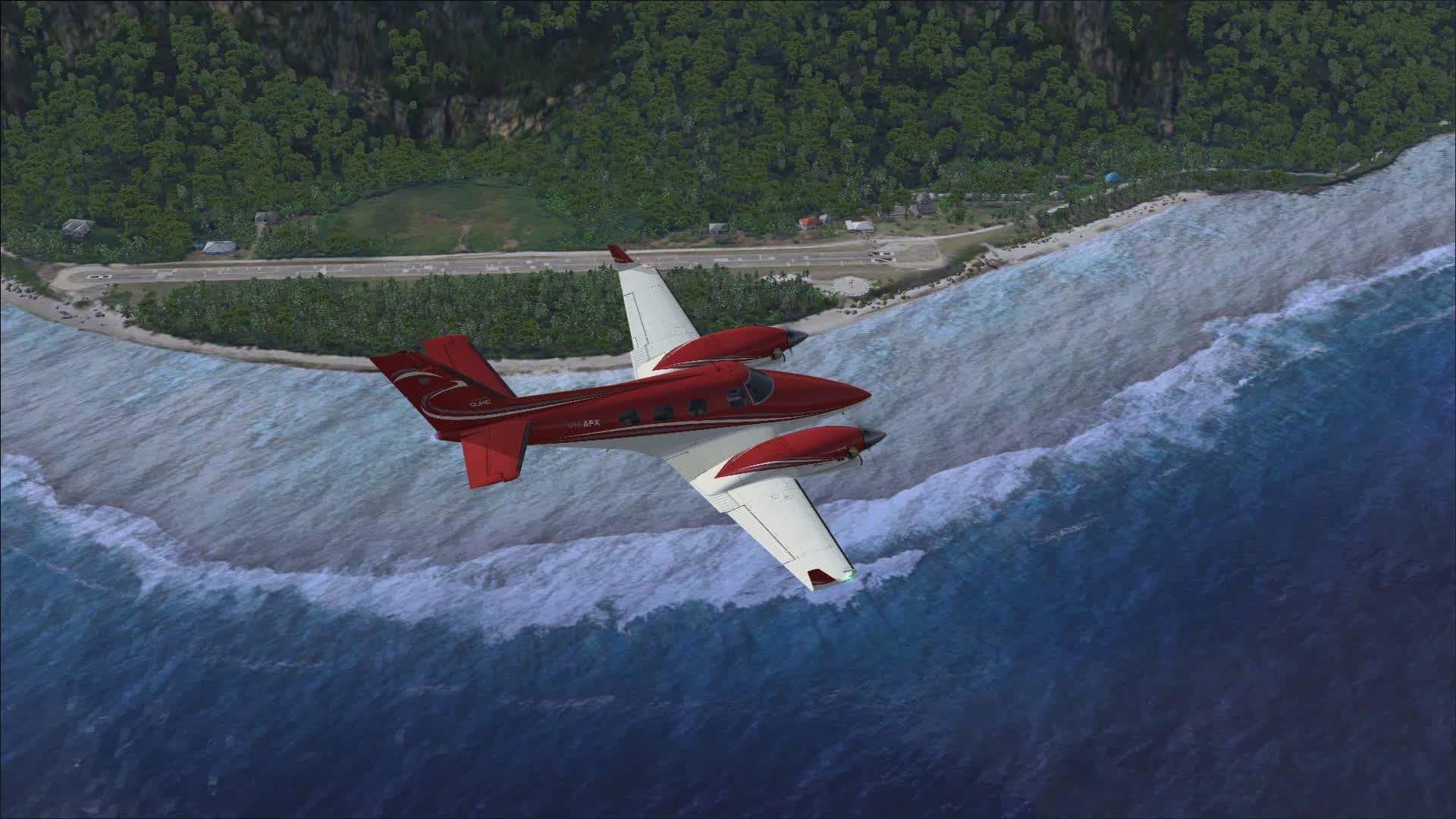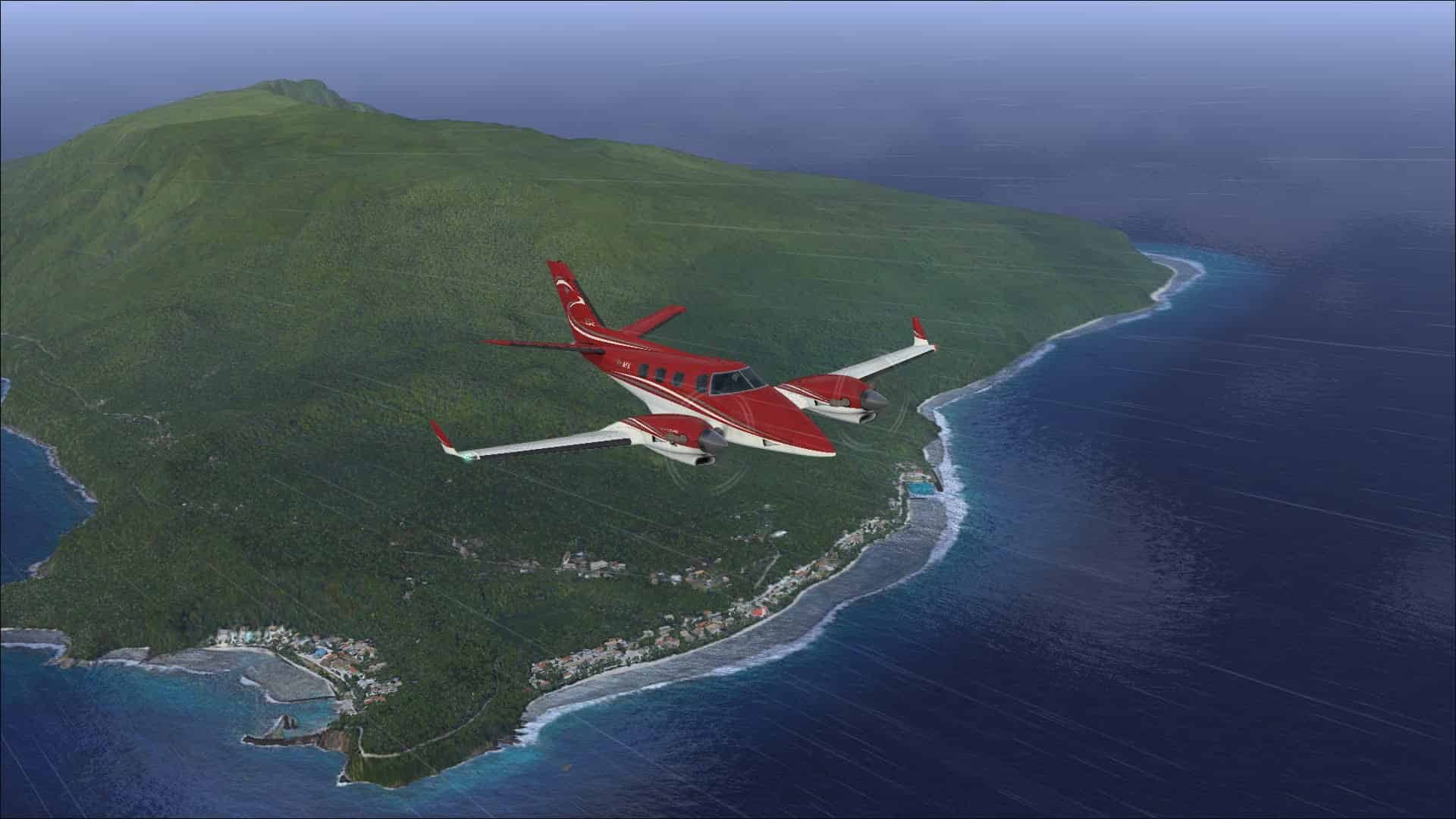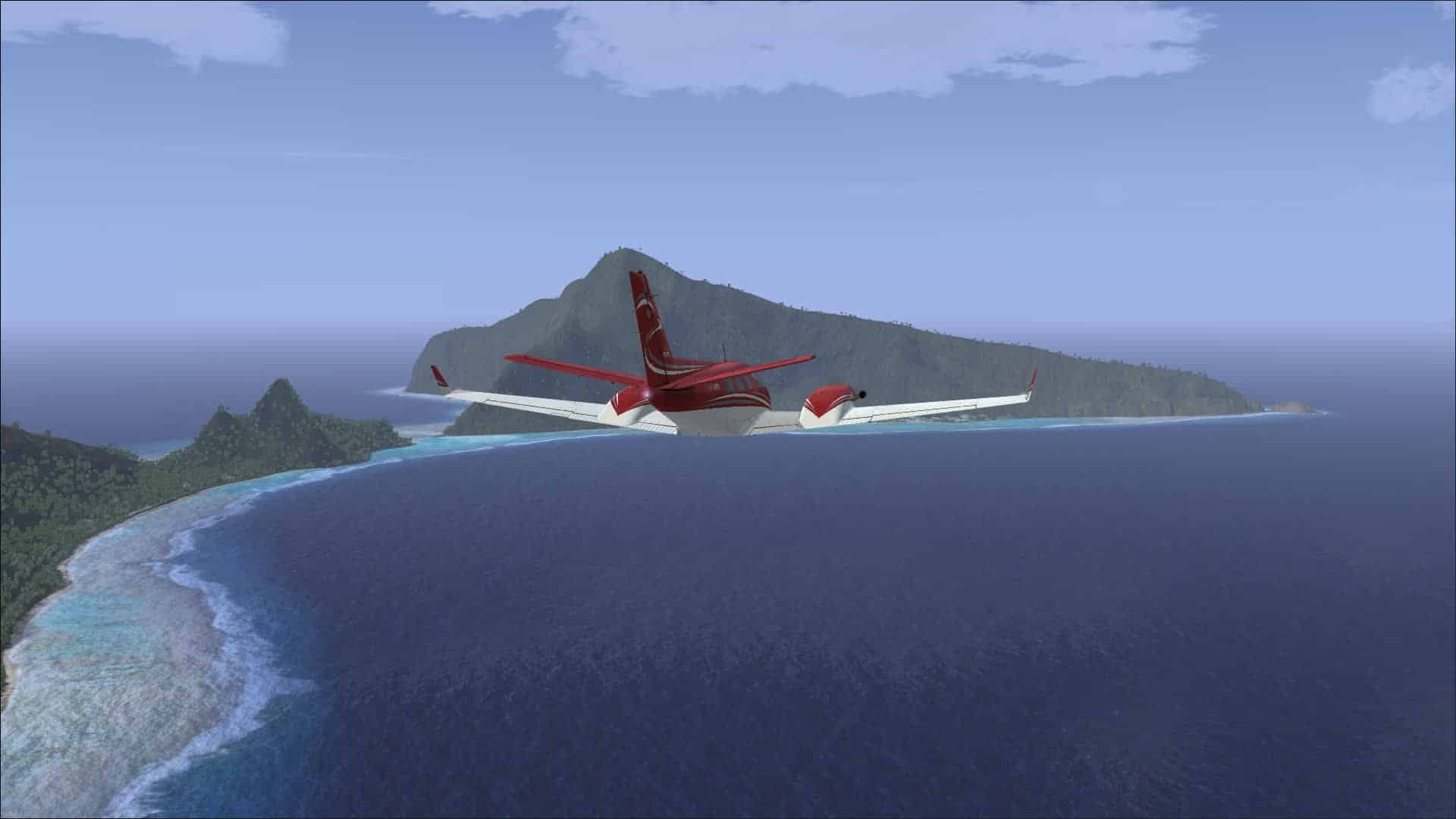 Um den „Experience“-Teil einzufangen, habe ich mich entschlossen, die Struktur des Reviews im Vergleich zu unseren übrigen Reviews ein wenig abzuändern. Ich möchte euch auf einige Flüge im und zum Szeneriegebiet mitnehmen, ohne wie üblich Detailaufnahmen von Flughafengebäuden und dergleichen zu machen: die Details sind bei Orbx über jeden Zweifel erhaben, und ihr könnt sie euch auf der Produktseite ohnehin ansehen. Ich möchte vielmehr zeigen, dass es Spaß macht, durch die Südsee zu fliegen, mit kleinen, mittleren und großen Fliegern, und euch abschließend eine Übersicht über das Gebiet geben. Das Thema Performance ist keins: Orbx Pago Pago ist so perfekt abgestimmt (zum Beispiel durch weniger Vegetations-Autogen auf Tutuila, weil dort viele Häuser stehen), dass ich niemals irgendwelche Probleme hatte.