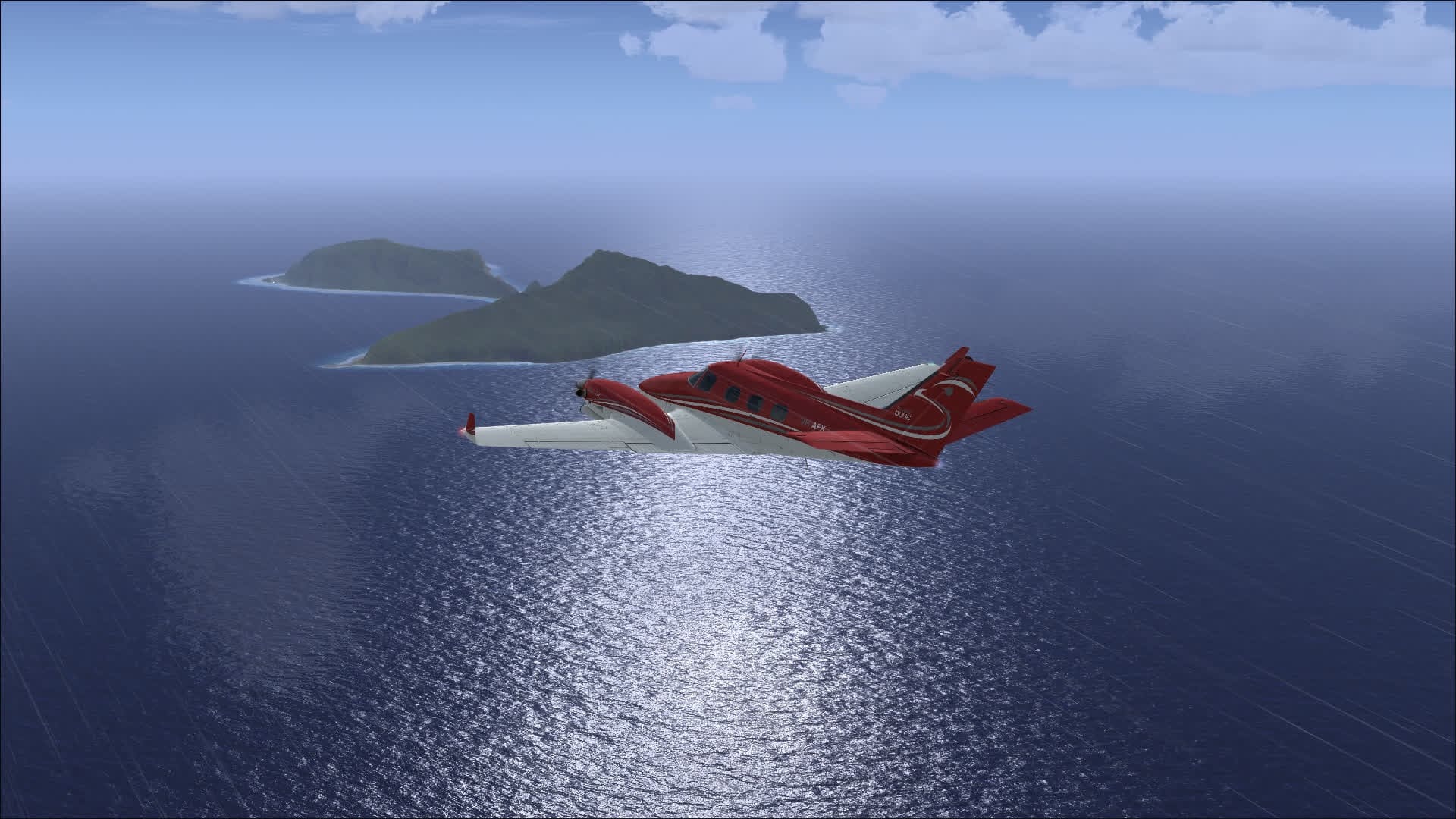 Das klingt zunächst mal toll. Der Nachteil: Leider ist die Gegend etwas weiter weg, sehr weit weg und zwar nicht nur von uns, sondern von jeder größeren Landmasse. Von Sydney aus sind es Luftlinie etwa 5000 km, von Hawaii aus etwa 4000, Neuseeland etwa 3000, und die nächsten größeren Flughäfen sind auch etwas über 1000 km entfernt (Rarotonga, Fiji). Man hat als IFR-Flieger also besser viel Zeit und Lust entspannt auf das Wasser zu schauen und gelegentliche Schiffe zu zählen, oder nutzt Flugzeuge, die mit der Zeitkompression des Simulators zurechtkommen.