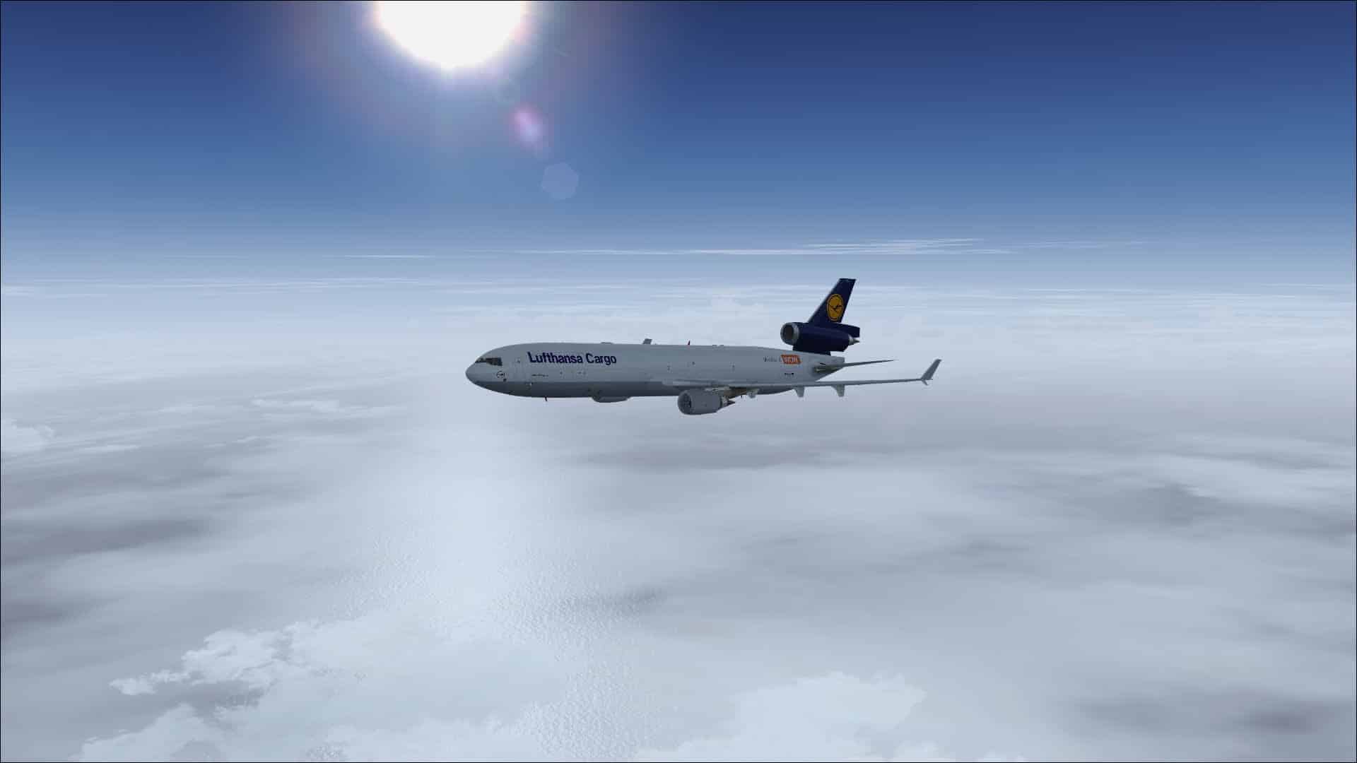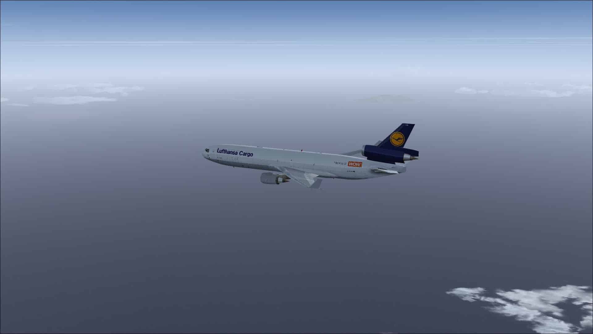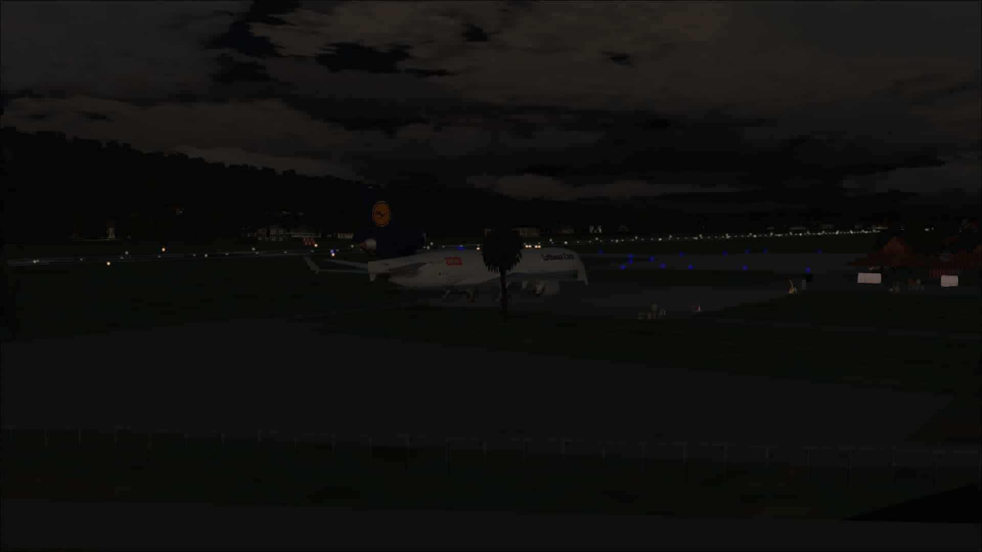 Sicherlich gibt es keine direkte Vebindung von Lufthansa Cargo zwischen Rarotonga auf den Cook-Inseln und Pago Pago, aber die MD-11 von PMDG ist ein schönes und schweres Flugzeug, das oft ein wenig unterschätzt wird, und ein Flug mit schwerem Gerät nach Pago Pago ist doch ein schöner Anlass, den Dreistrahler mal wieder aus dem Hangar zu holen. Fliegen wir also eine Ladung deutsches Bier von Rarotonga (es gibt eine gute Freeware, die ich benutzt habe, aber die sicher nicht minder gute Payware von PacSim) nach Pago Pago. Luftlinie sind das etwa 1400 km, und der Airway, dem wir folgen, markiert auch tatsächlich die direkte Verbindung.