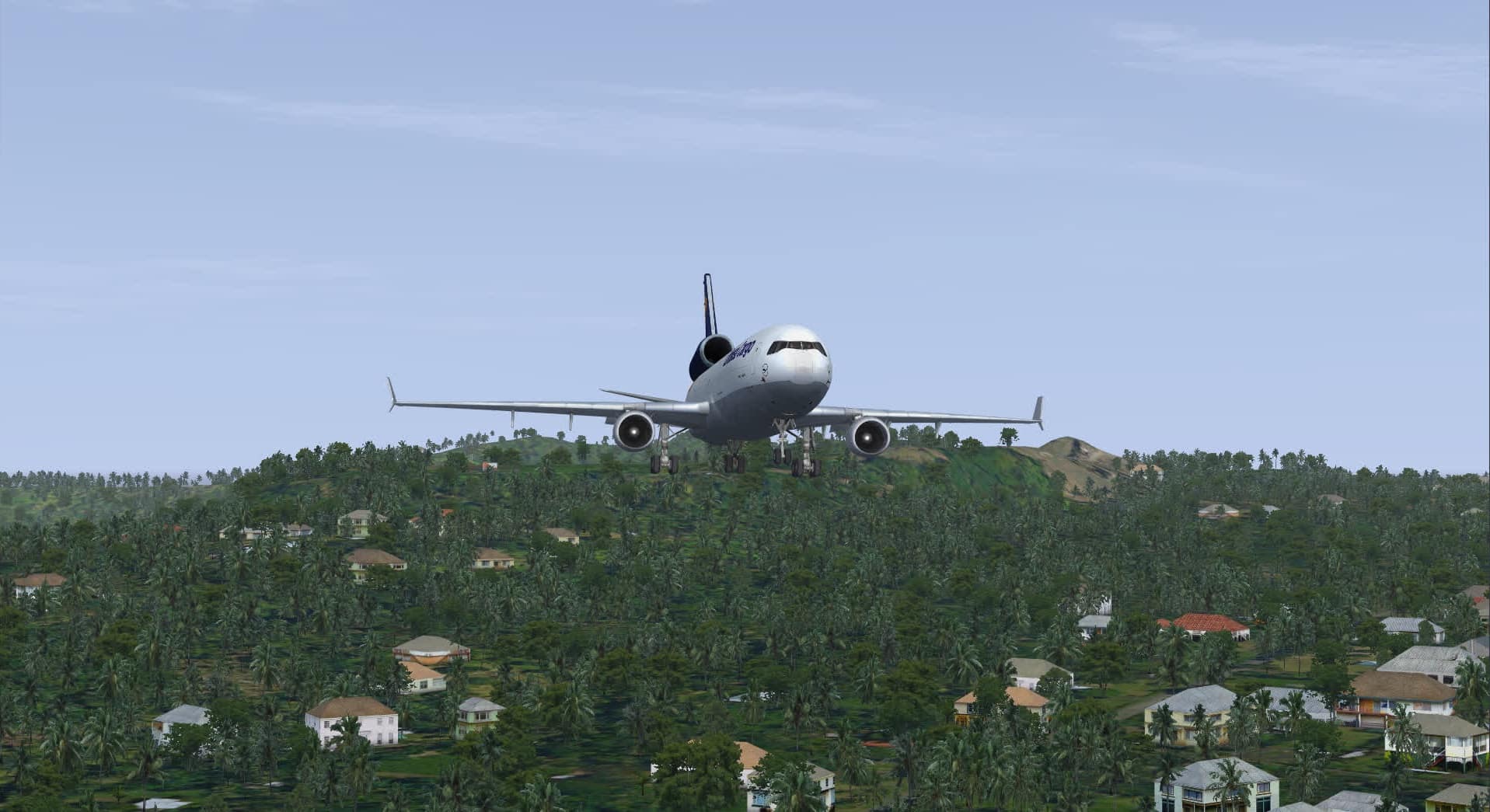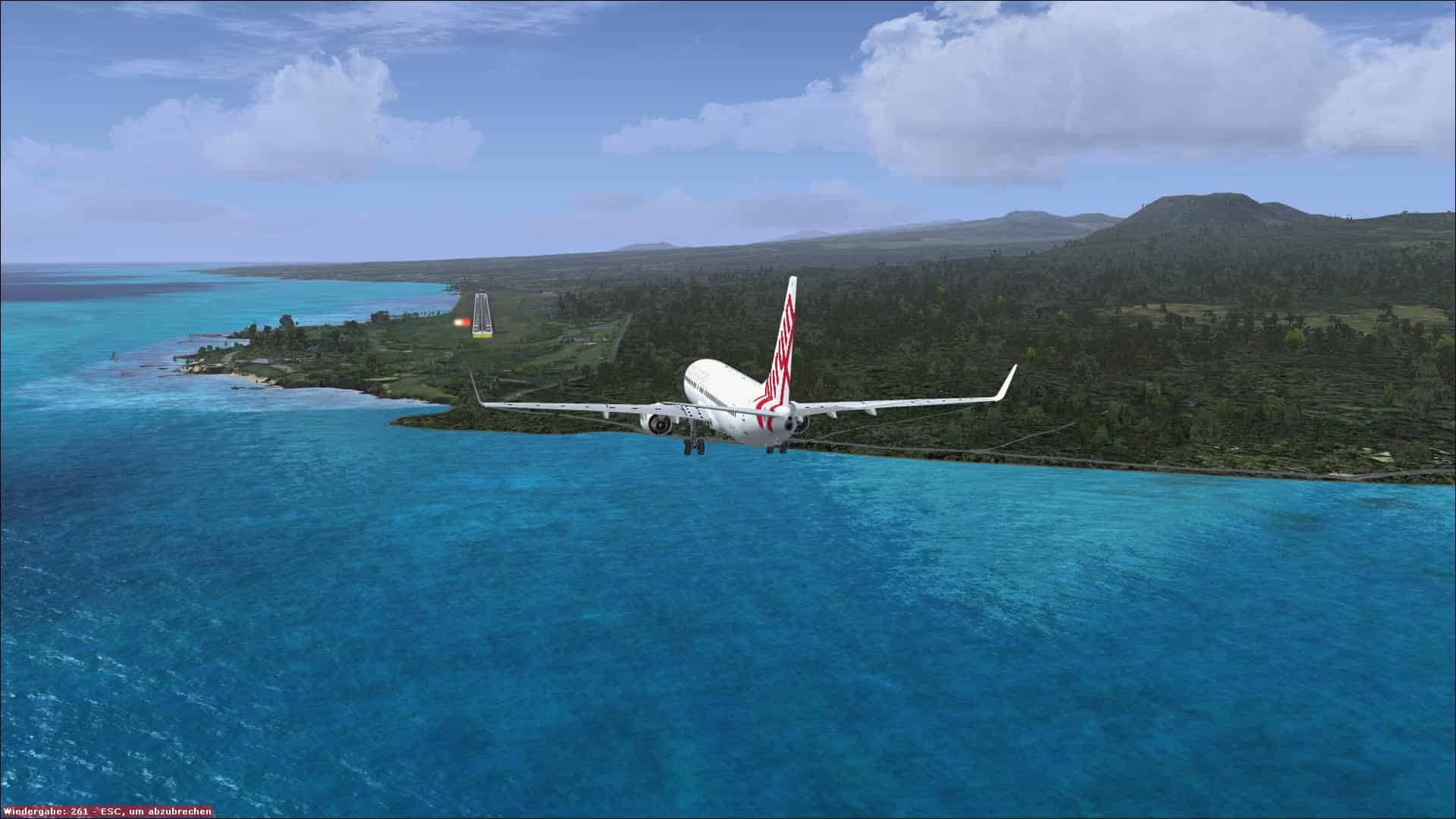 Der Anflug führt uns wieder direkt über Tutuila, nach Westen und dann auf die 05 – nur in dieser Richtung gibt es ein ILS. Der Anflug ist nicht besonders schwierig, man sollte nur wieder die Hügel vor der Landebahn im Blick haben.