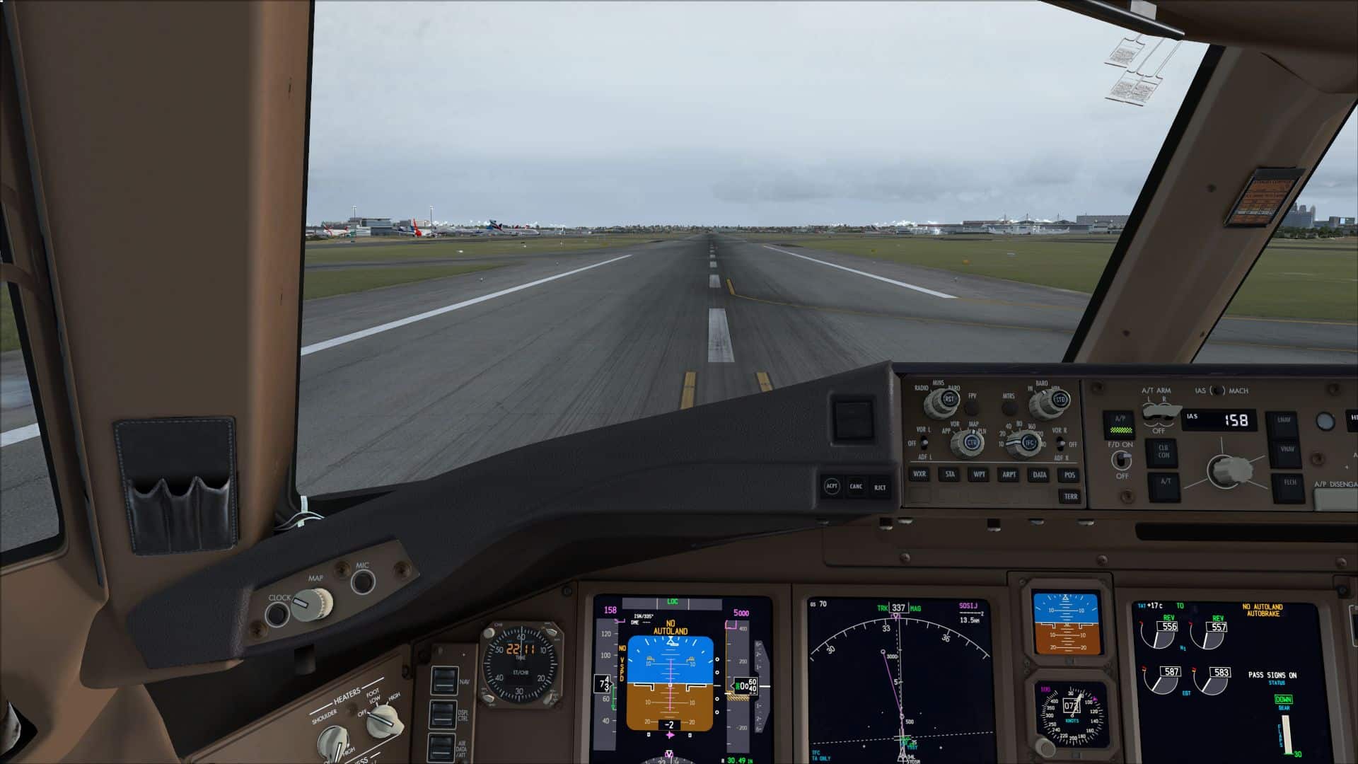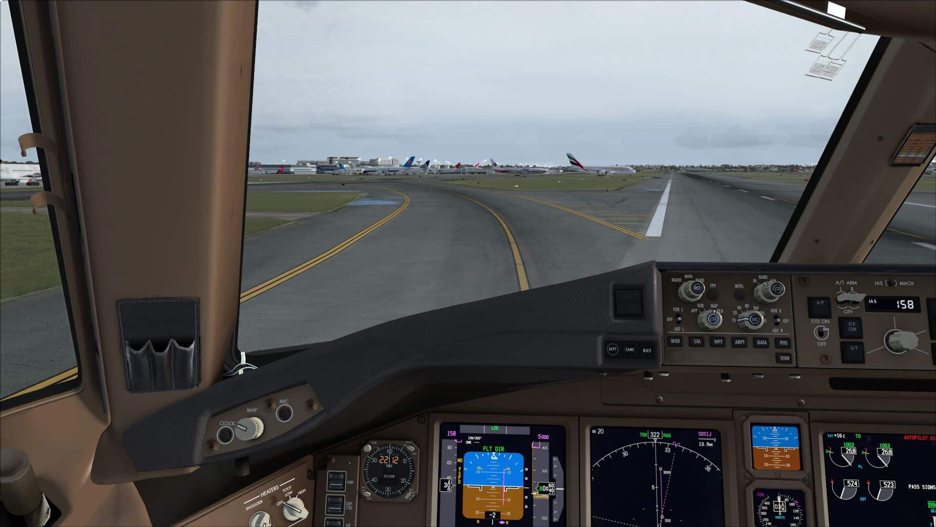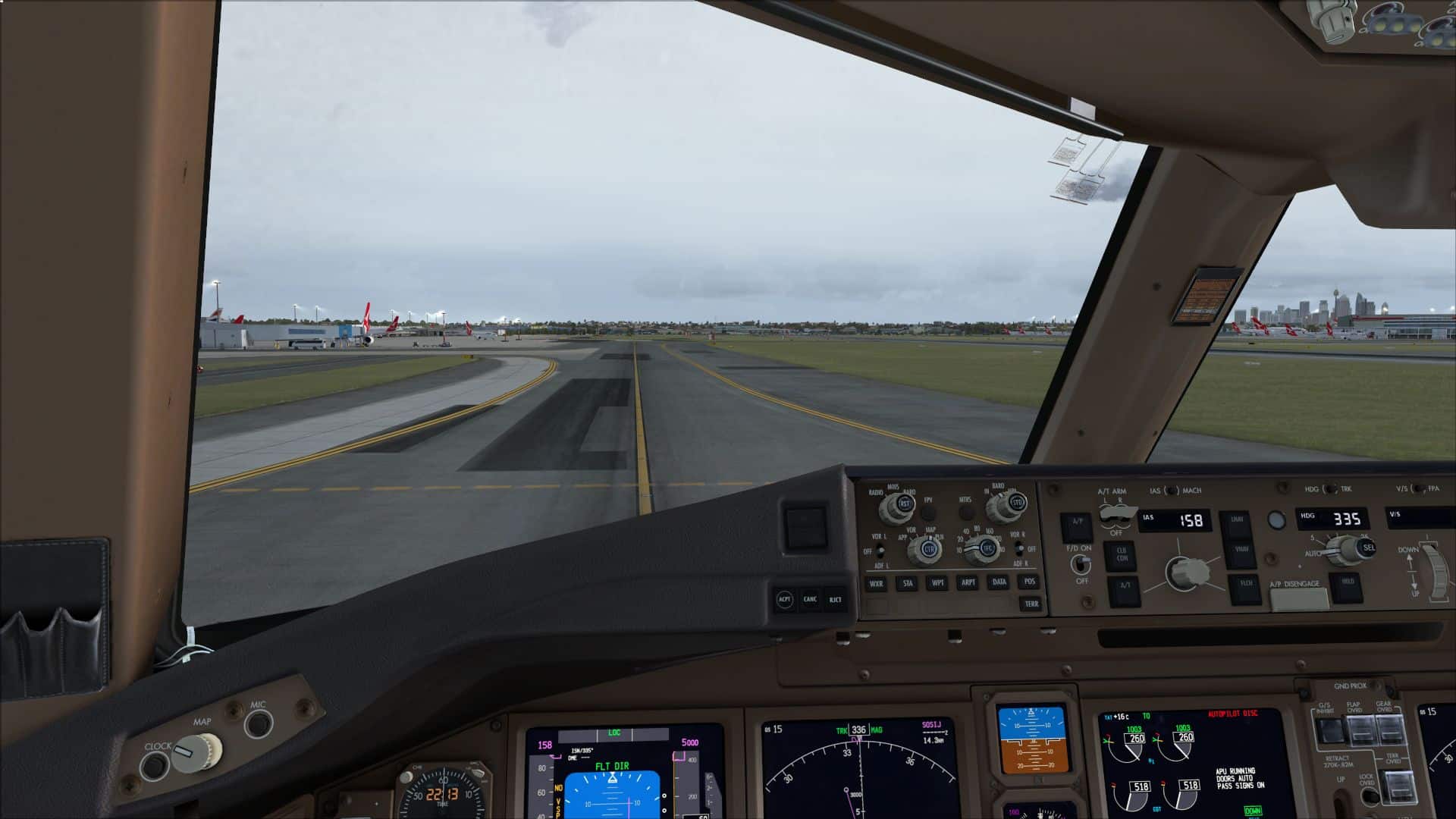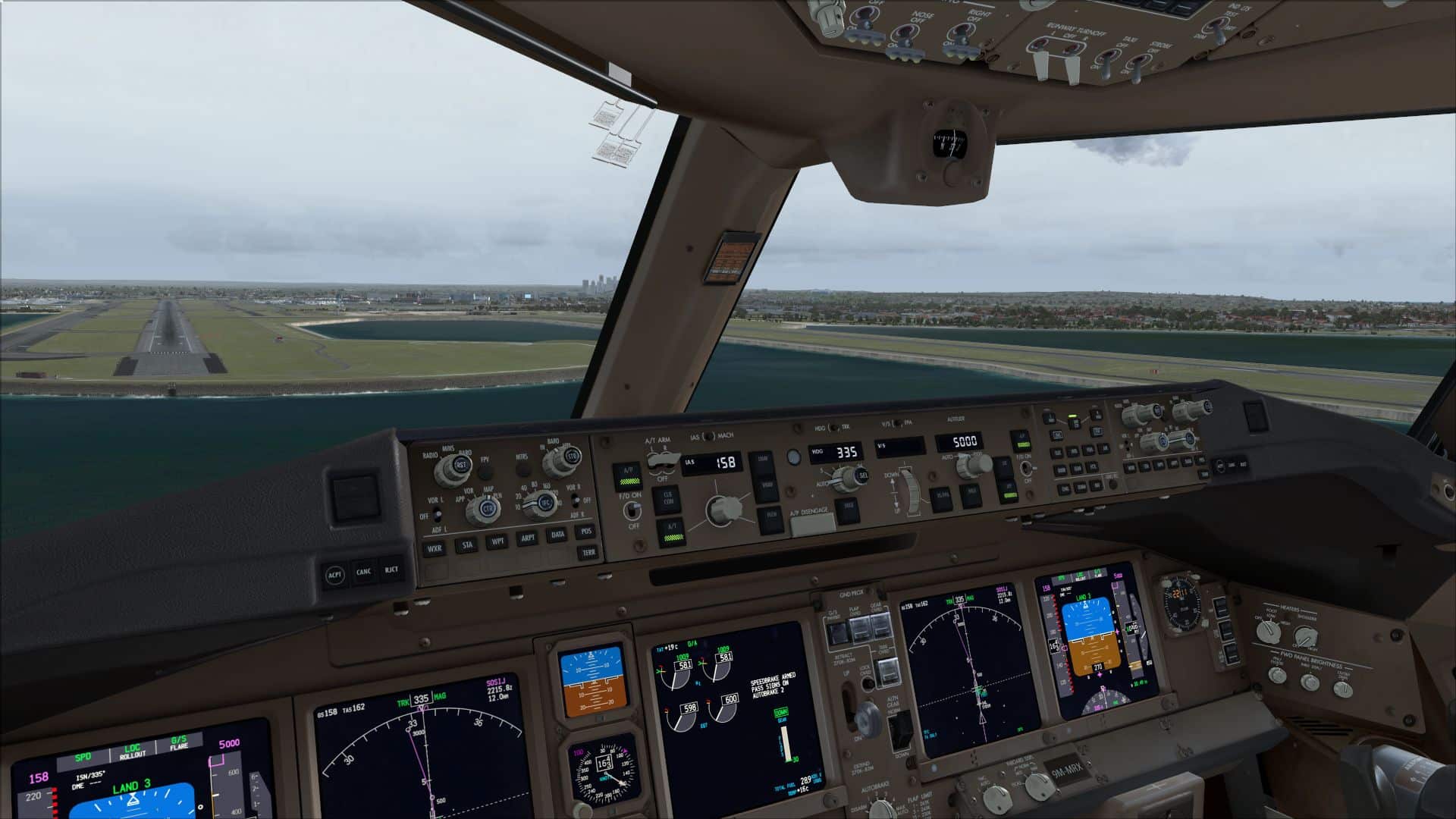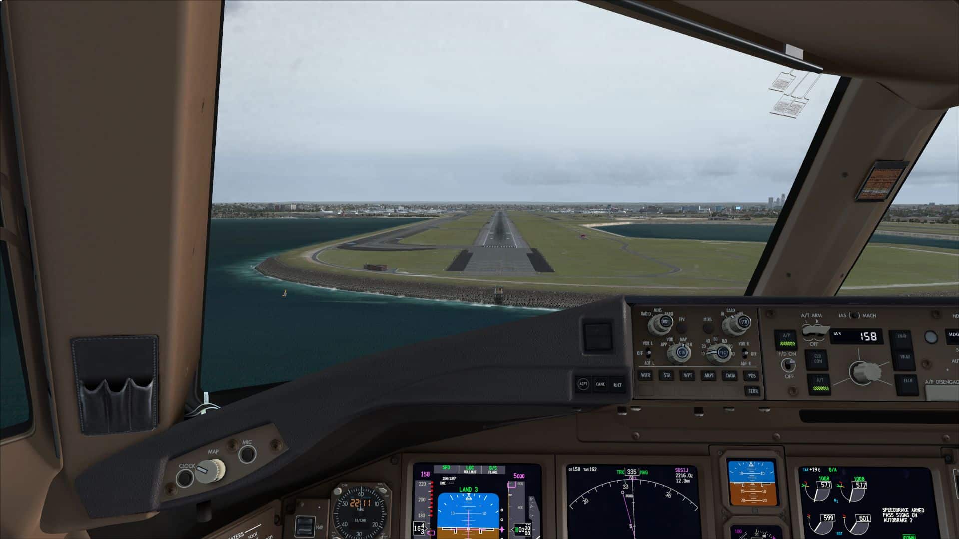 Zugegeben, Sydney ist schon ein ganzes Stück entfernt von den „üblichen“ Flugsimulator-Destinationen, Orbx-Produkte einmal ausgenommen. Einen typischen Feierabendflug nach Kingsford-Smith zu finden ist deswegen fast unmöglich. Ich habe mir zu Beginn einmal den Flug MH123 von Kuala Lumpur ausgesucht. Mit der PMDG 777 geht es am späten Abend in Malaysia los und nach knapp neun Stunden kann man schließlich den Anflug auf das morgendliche Sydney beginnen. Das Wetter spielt mit, man kann gut sehen, es ist nicht all zuviel los am Flughafen und der Wind weht leicht aus Norden.