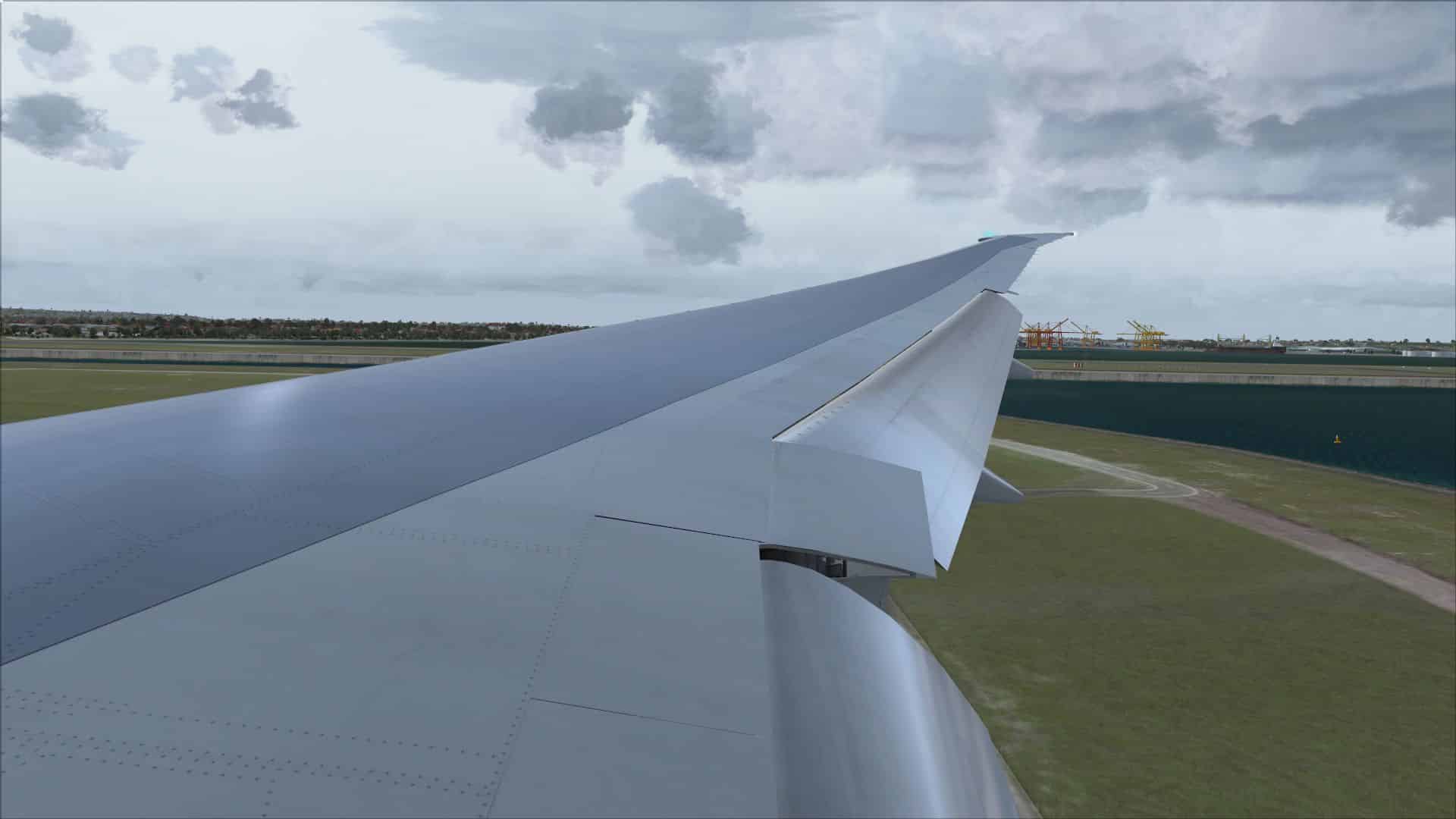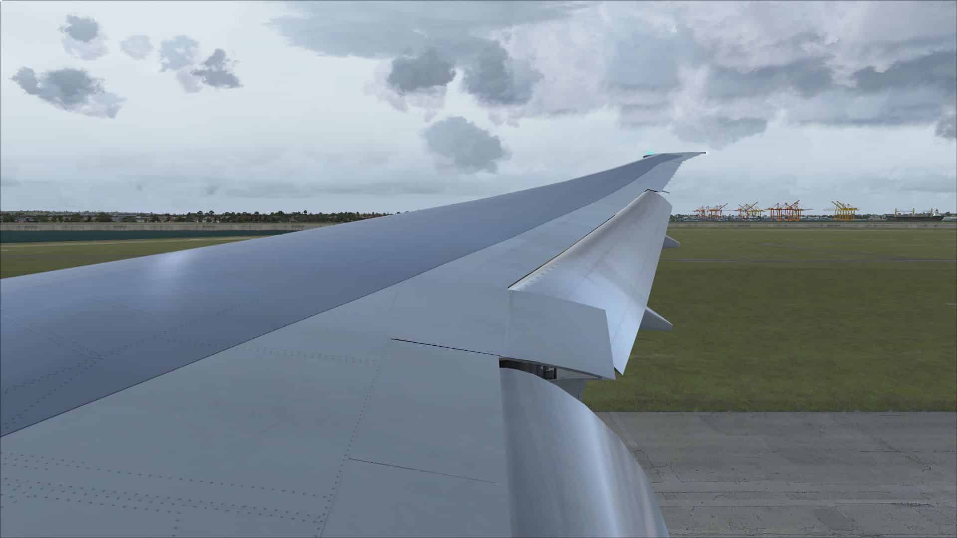 Dank des gemäßigten Klima in Sydney und regelmäßigem Niederschlag in Form von Regen ist das gesamte Flughafengelände mit knallgrün sprießendem Grass bewachsen. Mit der aktivierbaren „3D-Grass“ Funktion im Configurator wirken die Grünflächen auch richtig lebendig und lassen sich aus dem Cockpit gut anschauen. Bei wechselnder Jahreszeit nimmt der Grünton des Rasens ein wenig zu, was aber im Gesamtbild kaum zum Tragen kommt. Größere Farbschwankungen wären jedoch aufgrund des vorherrschenden Klimas auch nicht wirklich realistisch. Insgesammt sind die weitläufigen Wiesen auf dem Flughafengelände gut gelungen und liefern ein stimmiges Bild.