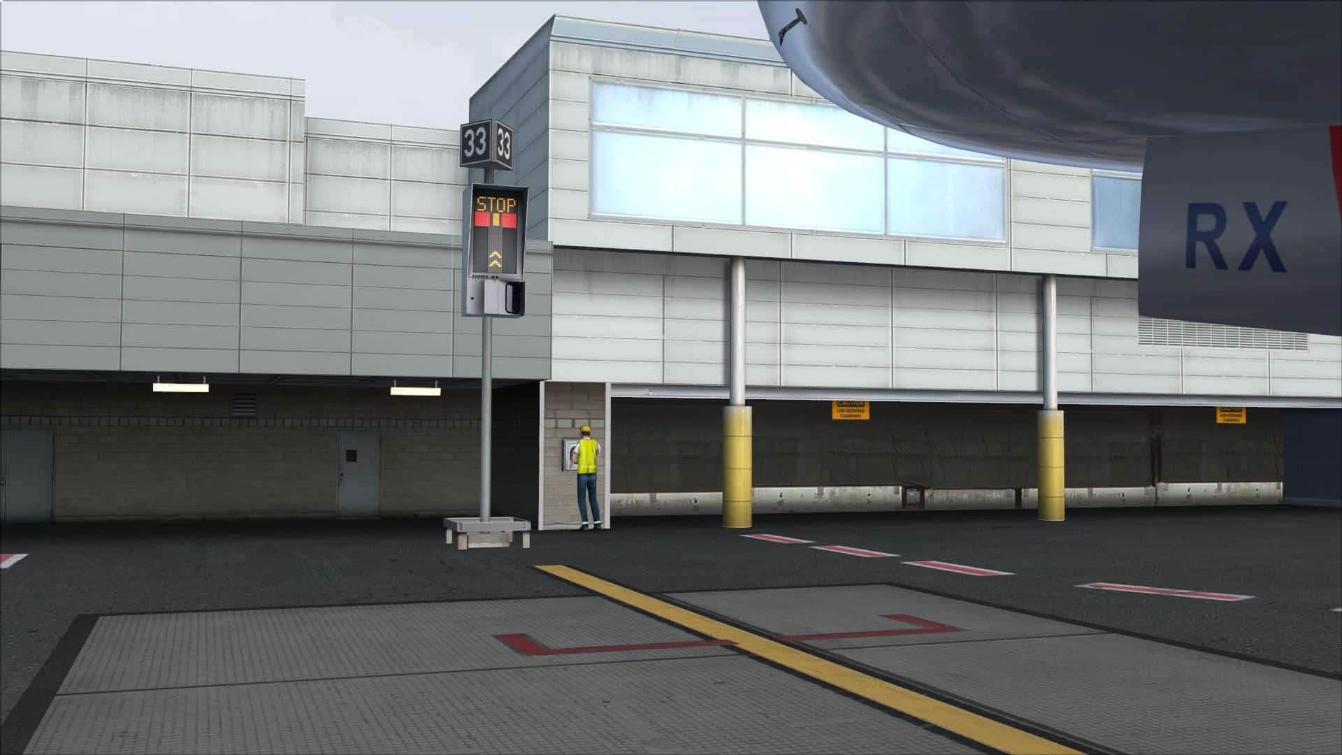 FlyTampa glänzt mit FlySydney wie schon in Kopenhagen und Toronto in Sachen Terminalmodellierung. Viele kleine Einzelheiten, seien es Klimaanlagen, Notausgänge, Treppen, Unterführungen, Laternen oder Fluggastbrücken sind haarklein herausgearbeitet. Bei genauerem Hinsehen findet man auch laufende Fahrstühle oder sich drehende Ventilatoren. Diese Detailarbeit ist schon wirklich beeindruckend. Besonders schön wiegt die plastische Verarbeitung der Terminalmodelle. So wurden etwa abzweigende Piers auf vielen kleinen Betonpfeilern konstruiert und auch Tore oder Durchfahrten an den Gebäuden wurden dreidimensional modelliert und sind nicht einfach als „schwarzes Loch“ dargestellt. Hinzu kommen hochauflösende Texturen, die mit einer Vielfalt an kräftigen Farben überzeugen. Schriftzüge sind sauber und scharf dargestellt und auch kleine Hinweisschilder sind sorgfältig in die Szenerie eingefügt worden. Durchsichtige Terminalfenster wie beim Vorgänger Toronto sucht man in Sydney jedoch vergebens, an dieser Stelle gibt es nur Fototapeten.