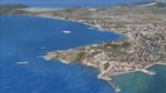 Wie versprochen haben die Entwickler von sim-wings die komplette Insel mit einem Luftbild unterlegt, oder besser überlegt. Mit 50 cm/pix ist dieses auch deutlich höher aufgelöst als in der Vorversion und bietet dem Nutzer ein wenig Abwechslung im Sinkflug. Die Tatsache, dass es sich bei Ibiza um eine Insel, komplett umgeben von Wasser handelt, stellt sich in diesem Fall als großer Vorteil heraus; die Fototapete hat keine abrupten Ecken oder Kanten an den Übergängen, sondern schließt ganz einfach mit dem Wasser ab. In Ibiza-Stadt wurden zudem einige wichtige Gebäude wie etwa die Kathedrale und der Hafen samt ein- und auslaufenden Fähren umgesetzt. Die großen Salzfelder am Flughafen machen einen guten Eindruck, ebenso wie die landwirtschaftlichen Nutzflächen in der Mitte der Insel. An bestimmten Stellen scheint das Luftbild nicht 100%ig mit dem Mesh übereinzustimmen, das fällt aber aus dem Cockpit nicht wirklich auf. Alles in allem präsentiert sich die Insel Ibiza aus dem virtuellen Cockpit gut und einzigartig.