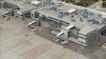 Die Macher von Sim-Wings haben in Ibiza X Evolution das Terminal des Flughafens auf den neusten Ausbaustand gebracht. So wurden beispielsweise die vier Fluggastbrücken, die in der Vorgängerversion noch nicht vorhanden waren, integriert und einige Erweiterungsbauten im Osten des Gebäudes hinzugefügt. Sim-Wings hat überzeugende Modelierungsarbeit geleistet, die beispielsweise an Sonnenblenden, Gitterkonstruktionen oder an den Jetways deutlich wird. Auch Gepäckabfertigungsanlagen und Sortierhallen wurden umgesetzt. Positiv zu tragen kommt auch die aufwendige Dachgestaltung des Abfertigungsgebäudes. Statt einer einfach-texturierten Fläche haben die Entwickler an dieser Stelle diverse Einzelheiten wie Solarpanele, Klimaanlagen und Lüftungsschächte platziert. Auch der Tower in unmittelbarer Nachbarschaft hat eine Aufwertung im Vergleich zur Vorgängeversion bekommen. So ist etwa die seitliche Wendeltreppe vorbildgerecht konstruiert worden und an das Gebäudemodell angepasst worden.