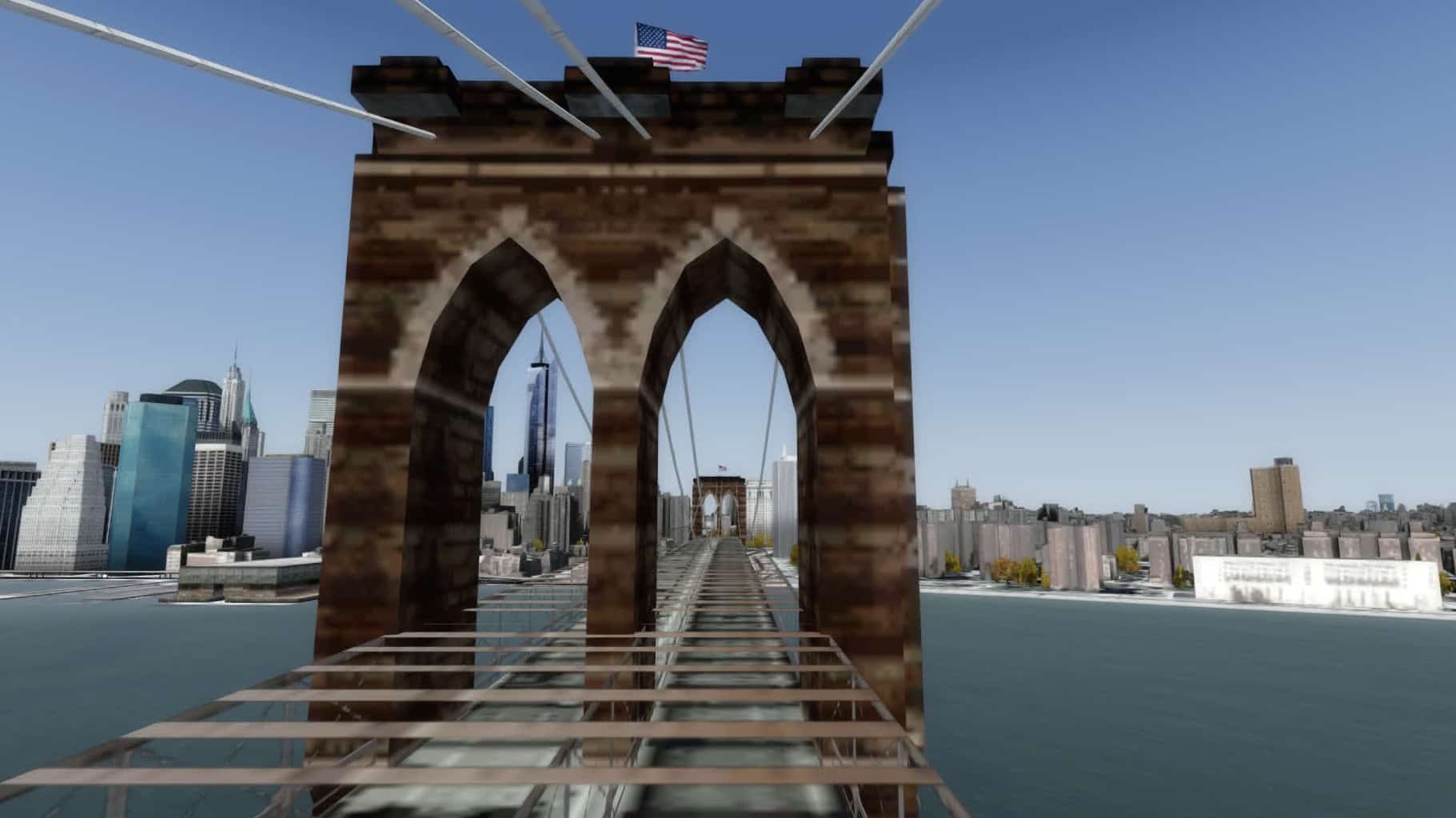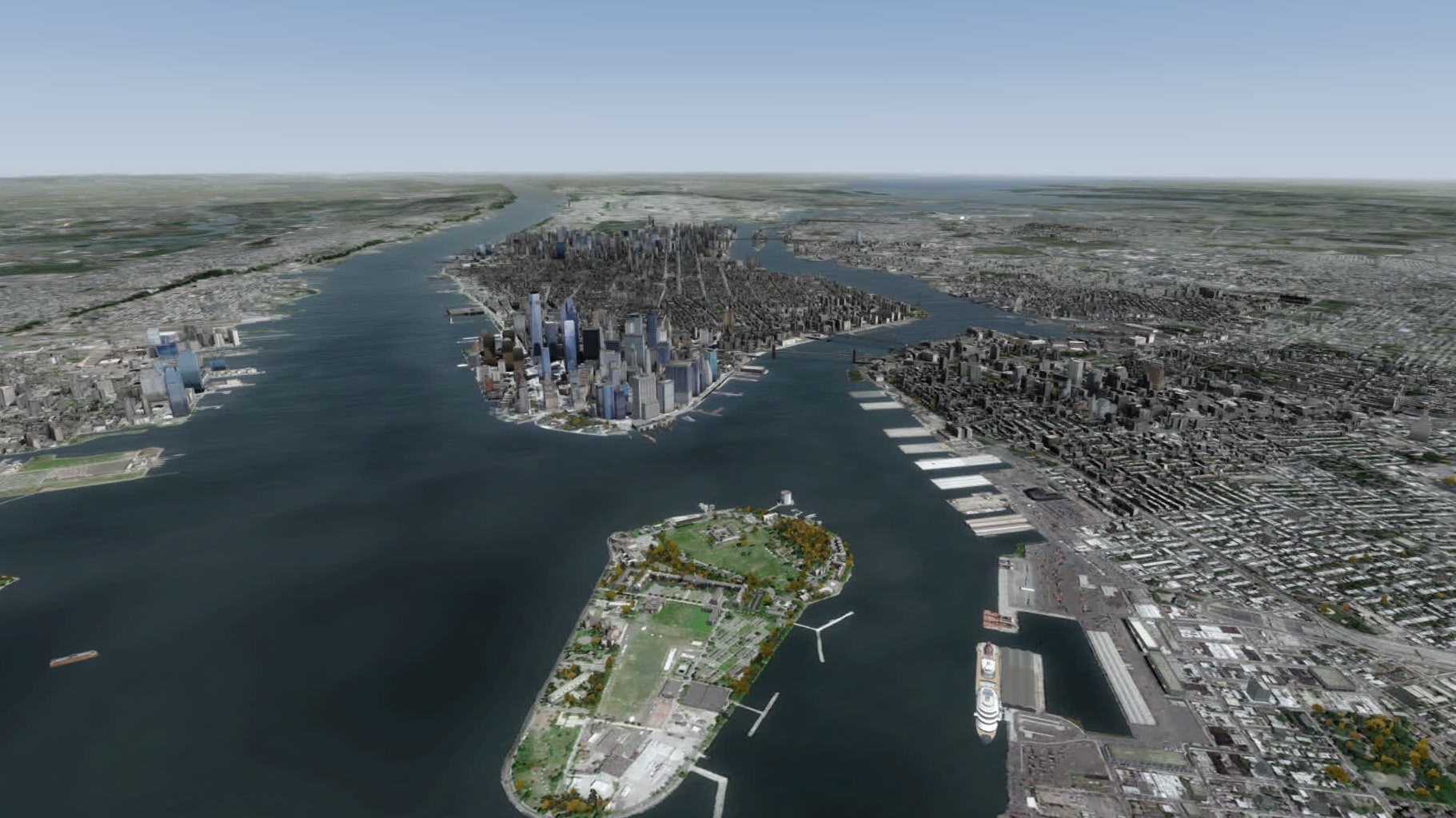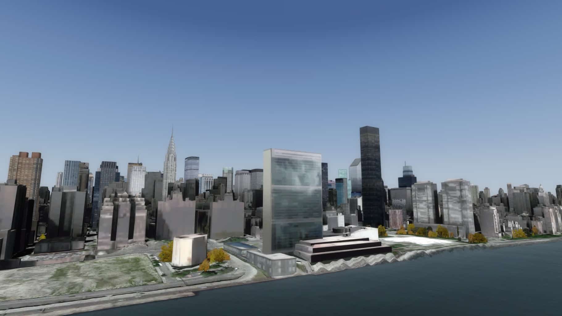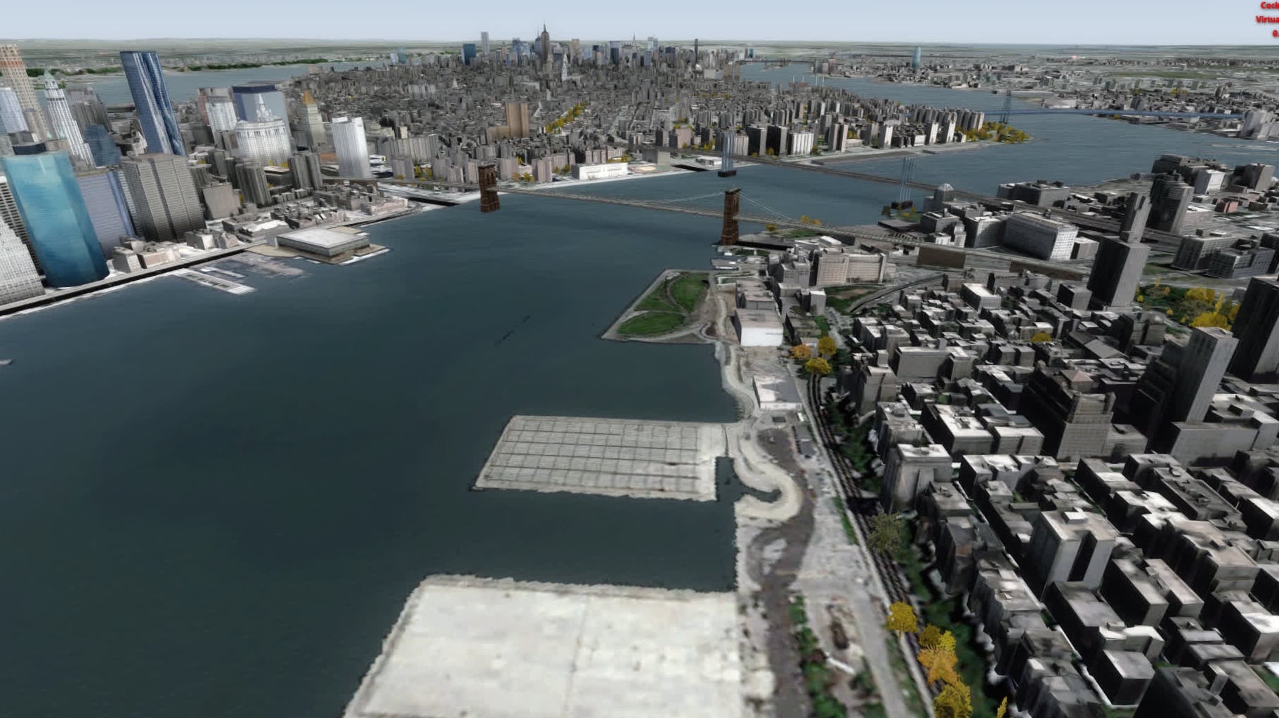 Gefühlt klappt das nun viel flüssiger als bisher, und das trotz starker Bewölkung. Gefühlt sind auch deutlich mehr Gebäude in Brooklyn modelliert. Manhattan südlich etwa der 80ten Straße ist ohnehin sehr detailliert dargestellt, mit der bekannten Mischung aus einzeln modellierten Gebäuden und weniger stark detaillierten Gebäudegruppen.