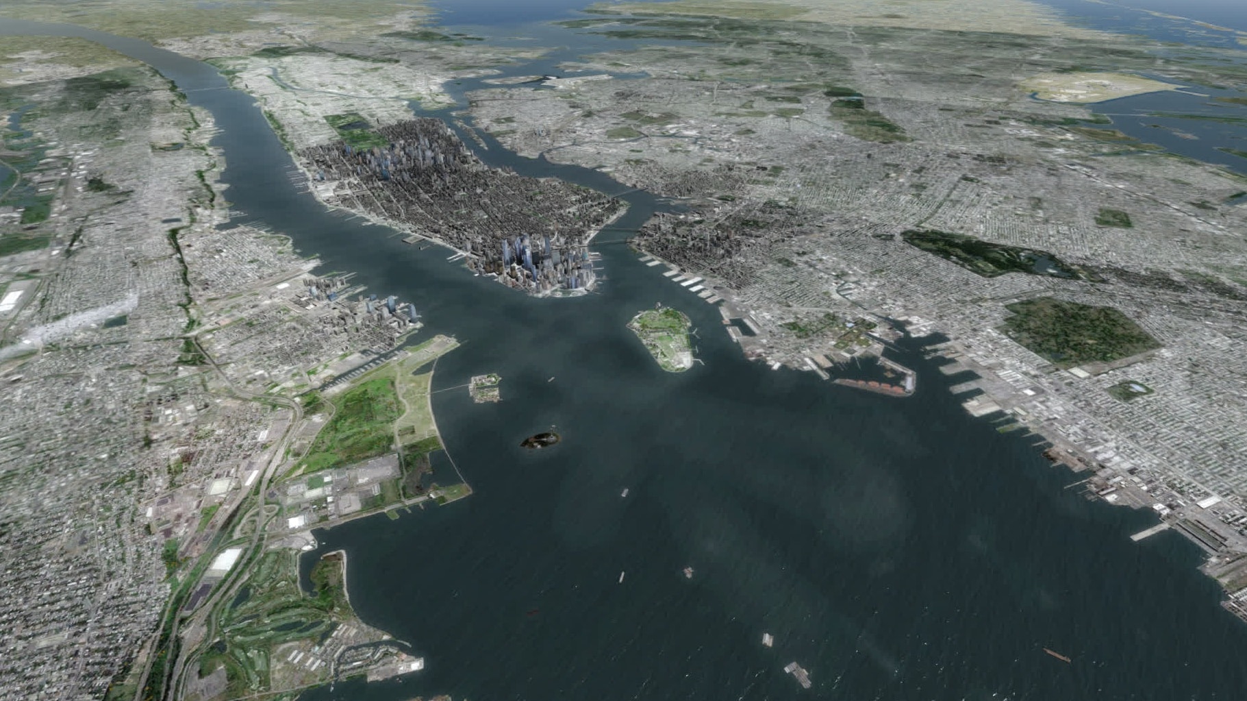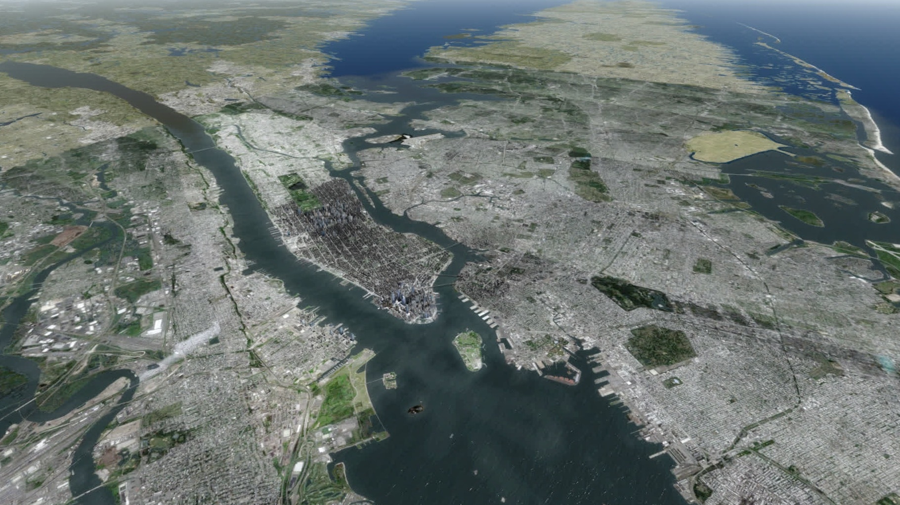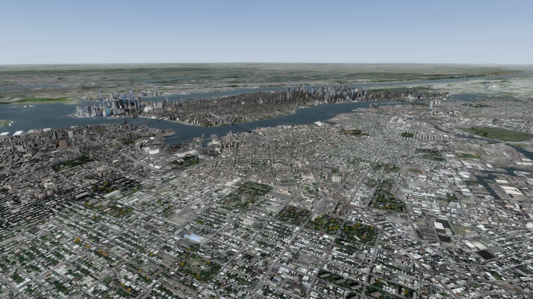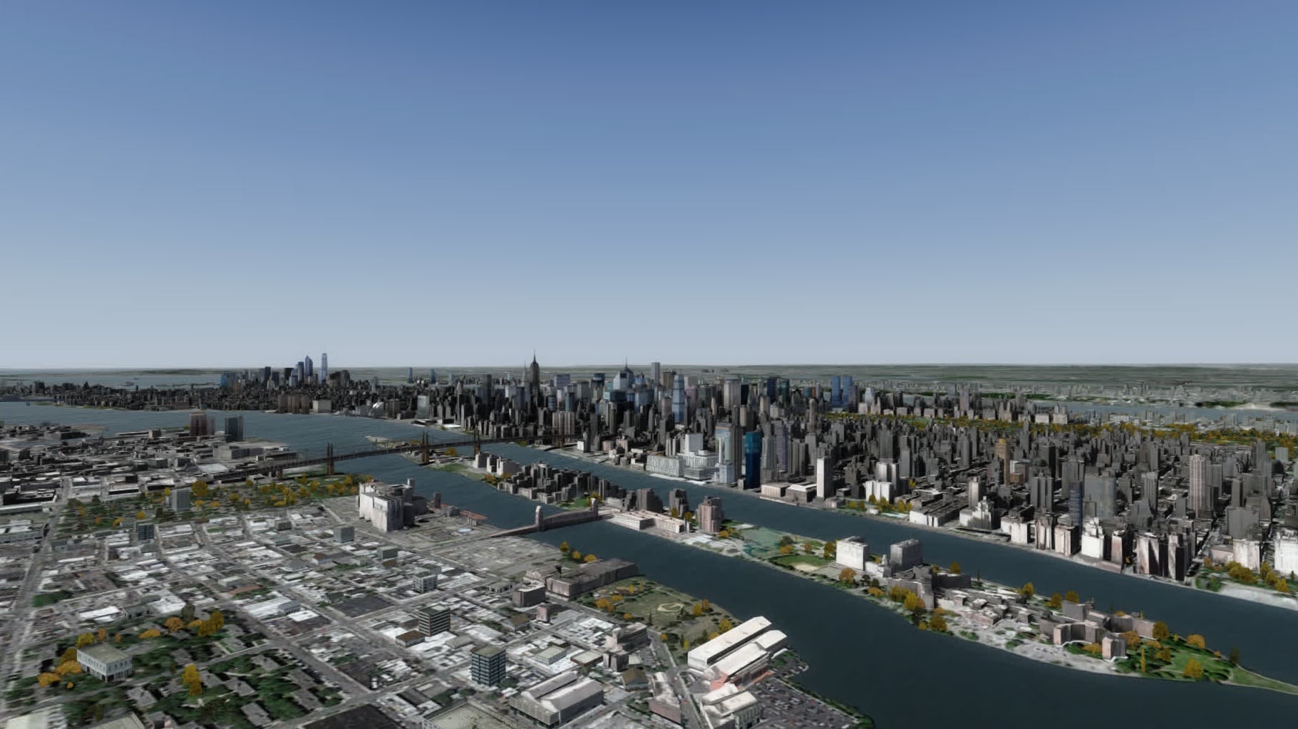 Gefühlt klappt das nun viel flüssiger als bisher, und das trotz starker Bewölkung. Gefühlt sind auch deutlich mehr Gebäude in Brooklyn modelliert. Manhattan südlich etwa der 80ten Straße ist ohnehin sehr detailliert dargestellt, mit der bekannten Mischung aus einzeln modellierten Gebäuden und weniger stark detaillierten Gebäudegruppen.