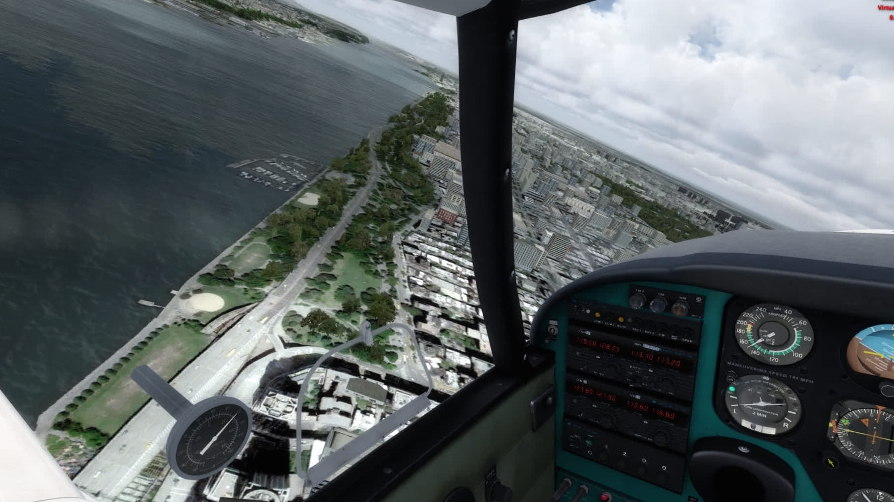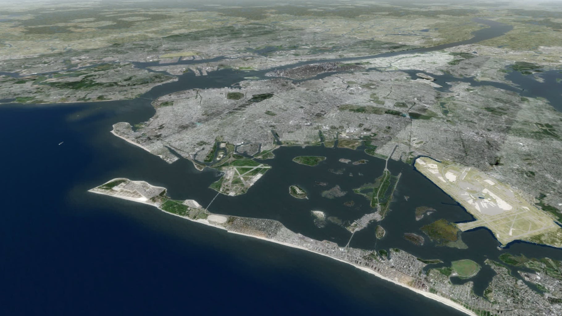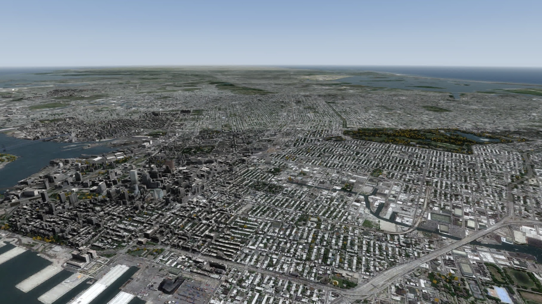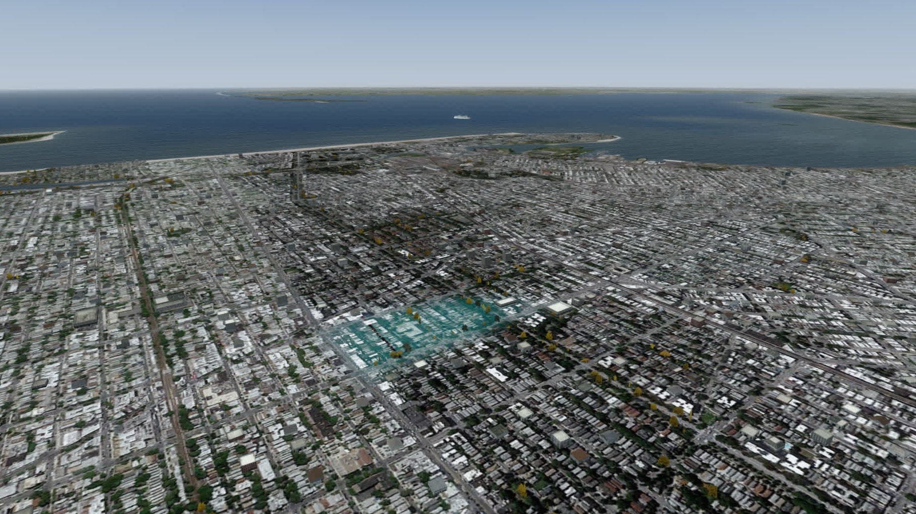 Gefühlt klappt das nun viel flüssiger als bisher, und das trotz starker Bewölkung. Gefühlt sind auch deutlich mehr Gebäude in Brooklyn modelliert. Manhattan südlich etwa der 80ten Straße ist ohnehin sehr detailliert dargestellt, mit der bekannten Mischung aus einzeln modellierten Gebäuden und weniger stark detaillierten Gebäudegruppen.