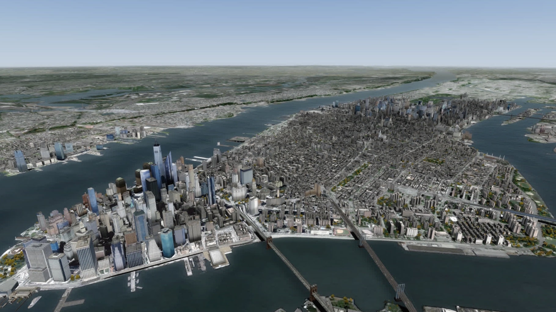 Das Kerngebiet mit ausreichender Detaillierung deckt Manhattan bis zur Mitte des Central Park, Jersey City, Brooklyn und Williamsburg ab.