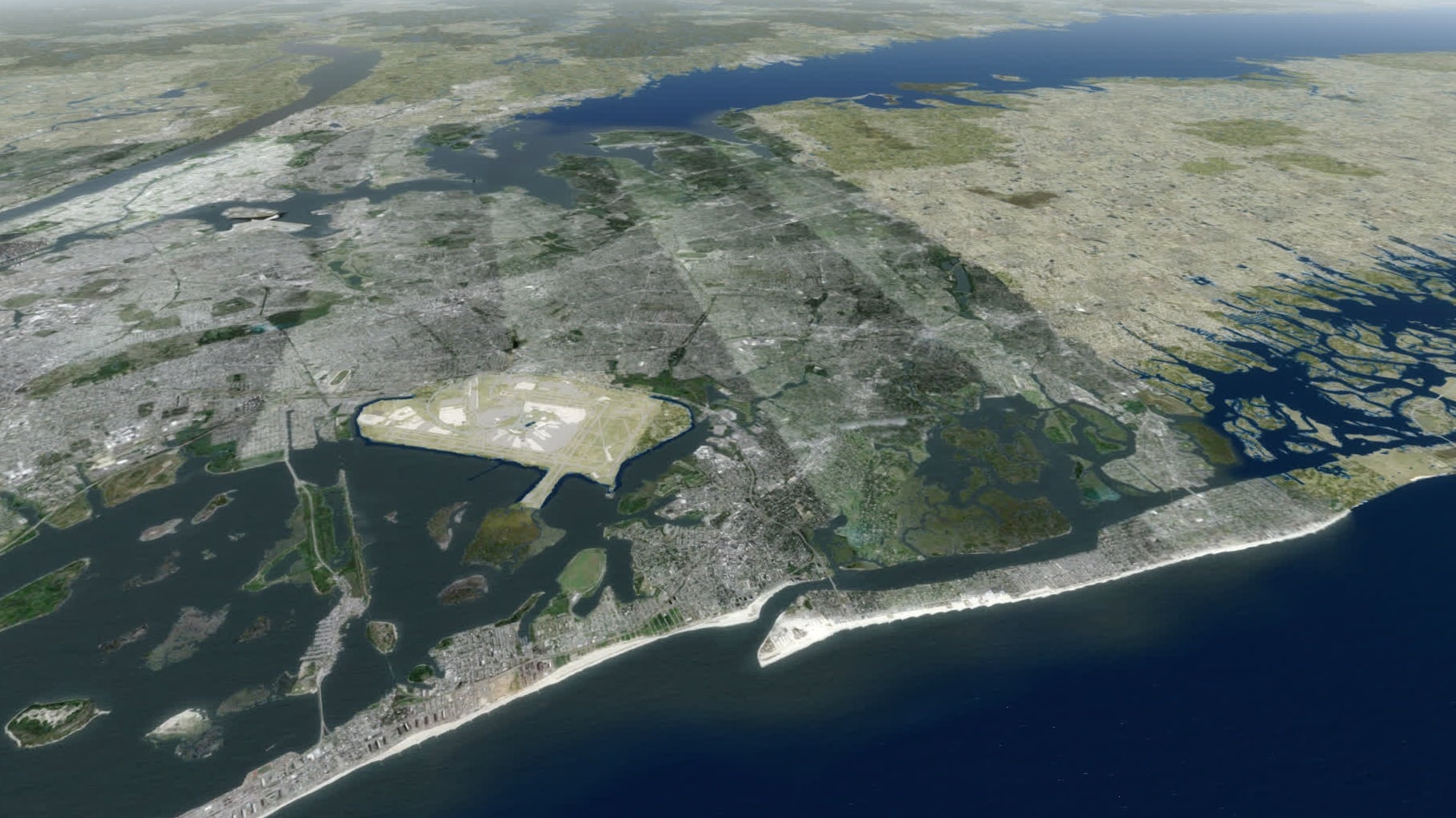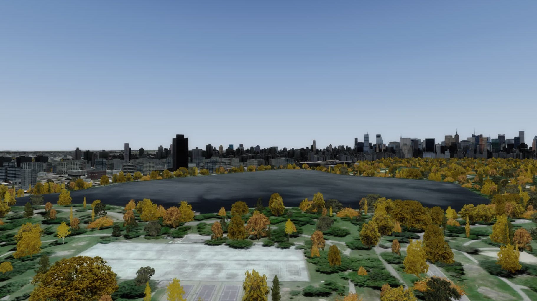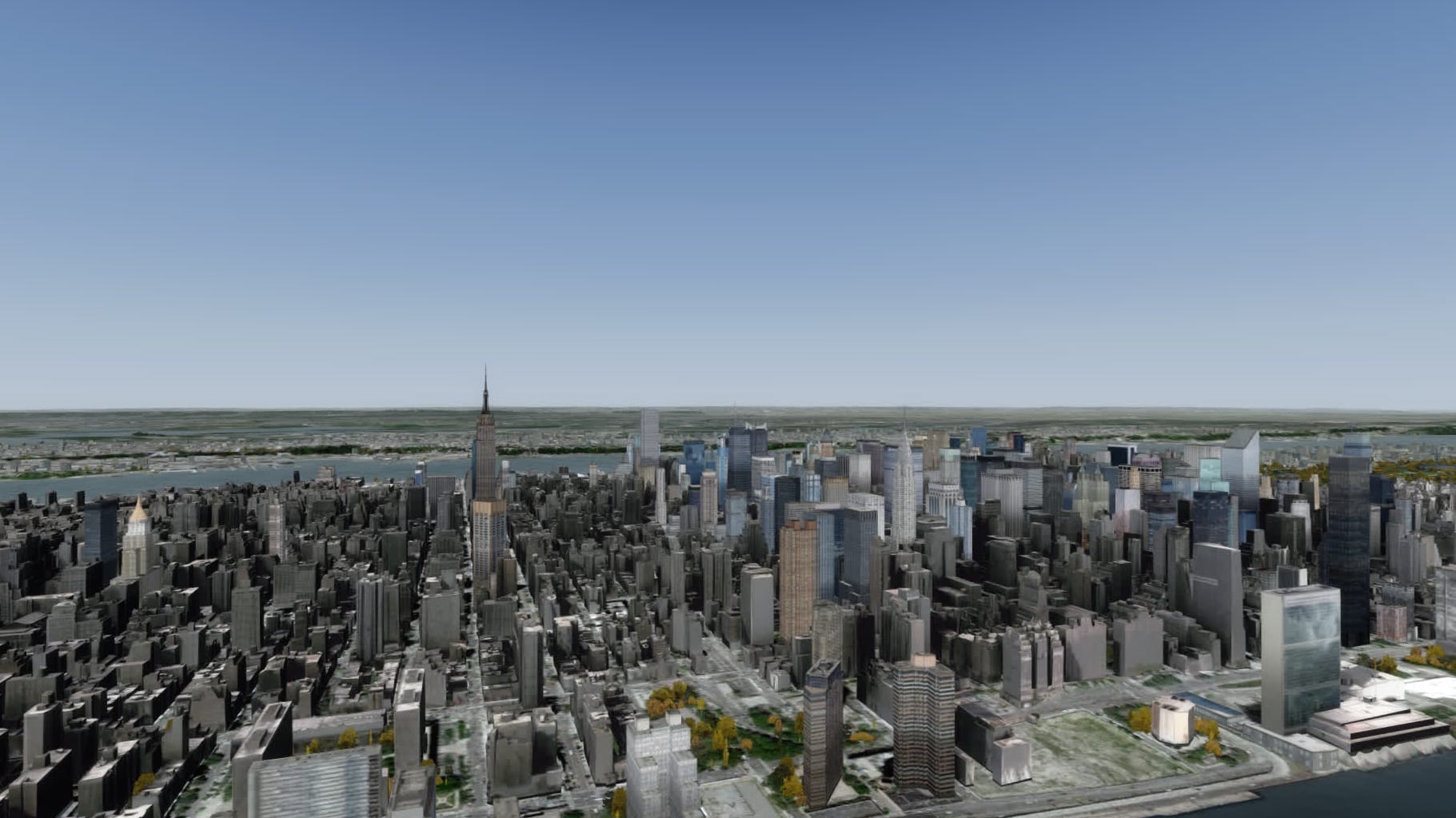Eines der Ziele ist also erreicht: endlich ist es möglich, mit akzeptabler Performance im Raum New York über Drzewiecki’s Szenerie – und damit über ein Modell von ganz New York – zu fliegen. Das ging mit Aerosoft’s Manhattan auch schon ganz gut, aber modelliert war dann eben nur Manhattan.