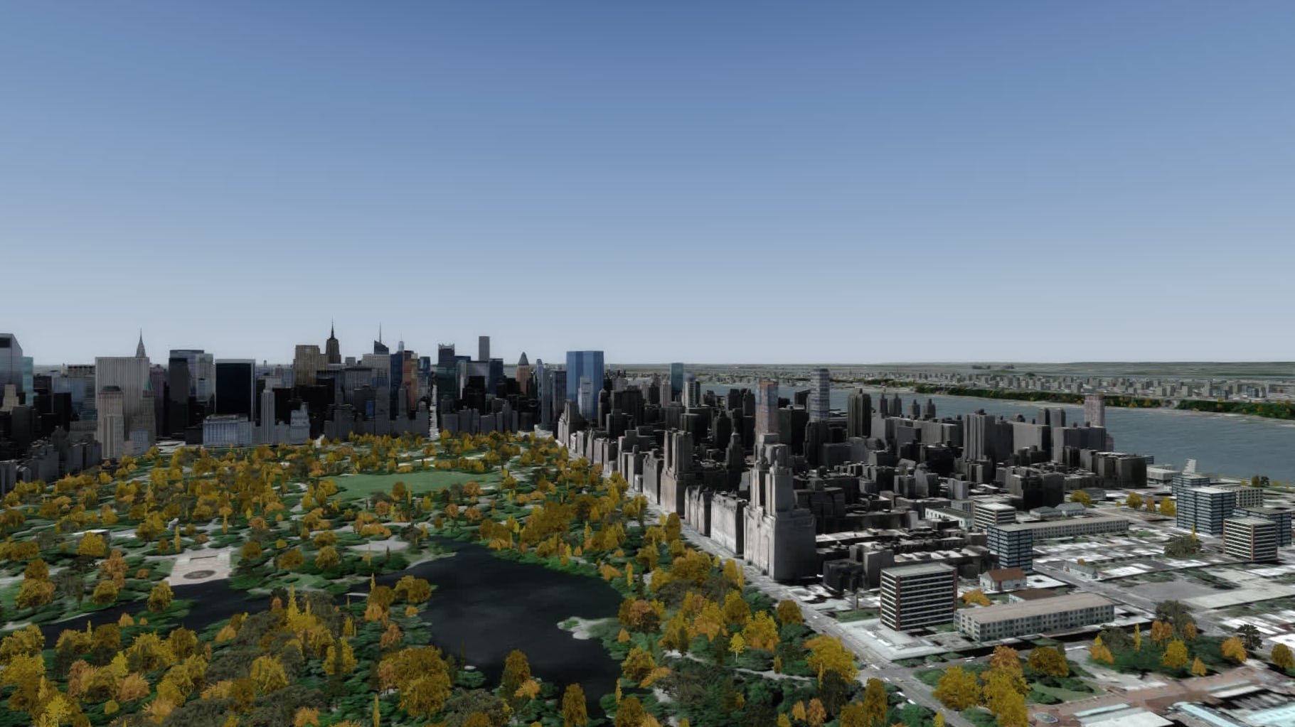 Insgesamt ist die Detaillierung ausreichend für einen Flugsimulator und offensichtlich ein vernünftiger Kompromiss. Für Spaziergänge durch New York wird es nicht reichen. Wohlgemerkt: meine Scenery-Complexity-Einstellung ist auf Dense, es gäbe noch zwei weitere Stufen.
