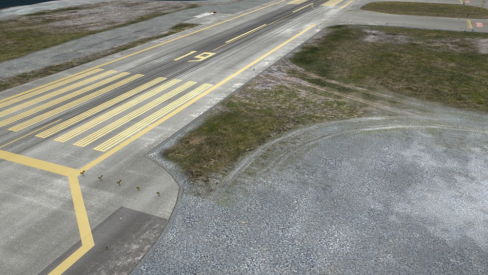 - Präzises Geländemodell mit geneigter Start- und Landebahn (daher kein korrekter AI Traffic möglich)