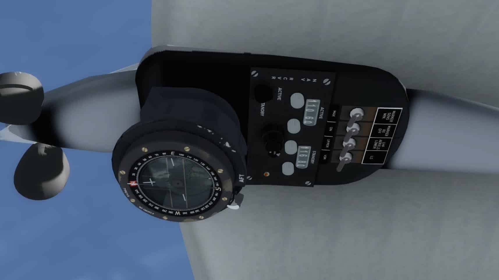 Die Dove ist ein Gegenentwurf zu all den automatisierten systemtiefen Computerfliegern, die wir im Simulator „fliegen“. Sie ist ein einfacherer Zeitgenosse der Boeing 377: aufgeladene Kolbenmotoren, Avionik schon mit VOR, aber noch ohne DME und Propeller mit konstanter Geschwindigkeit. Ein Autopilot, der Höhe und Heading halten und Radiale abfliegen kann – das war’s. Allerdings ist das hilfreich, wenn man es ernst meint und die Navigation nicht (was auch möglich ist) mit dem FS-GPS erledigt.