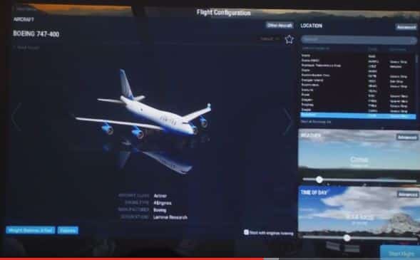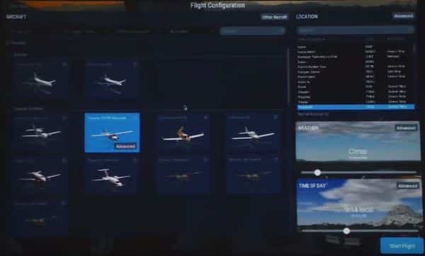 Dieses besitz auf einer Seite die verfügbaren Flugzeuge, Airports und Wetterbedingungen. Dazu stehen verschiedene Filter zur Verfügung um ein gewünschtes Flugzeug oder einen Airport schnell zu finden.