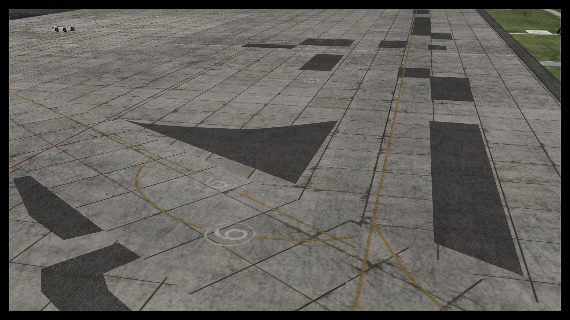 Die Betonplattentexturen der Rollwege inklusive Markierungen sehen schön verbraucht und kaputt aus, leider auch etwas unscharf und blass. Dennoch kommt der Charme, den Airports im ehemaligen Ostblock haben, gut rüber.