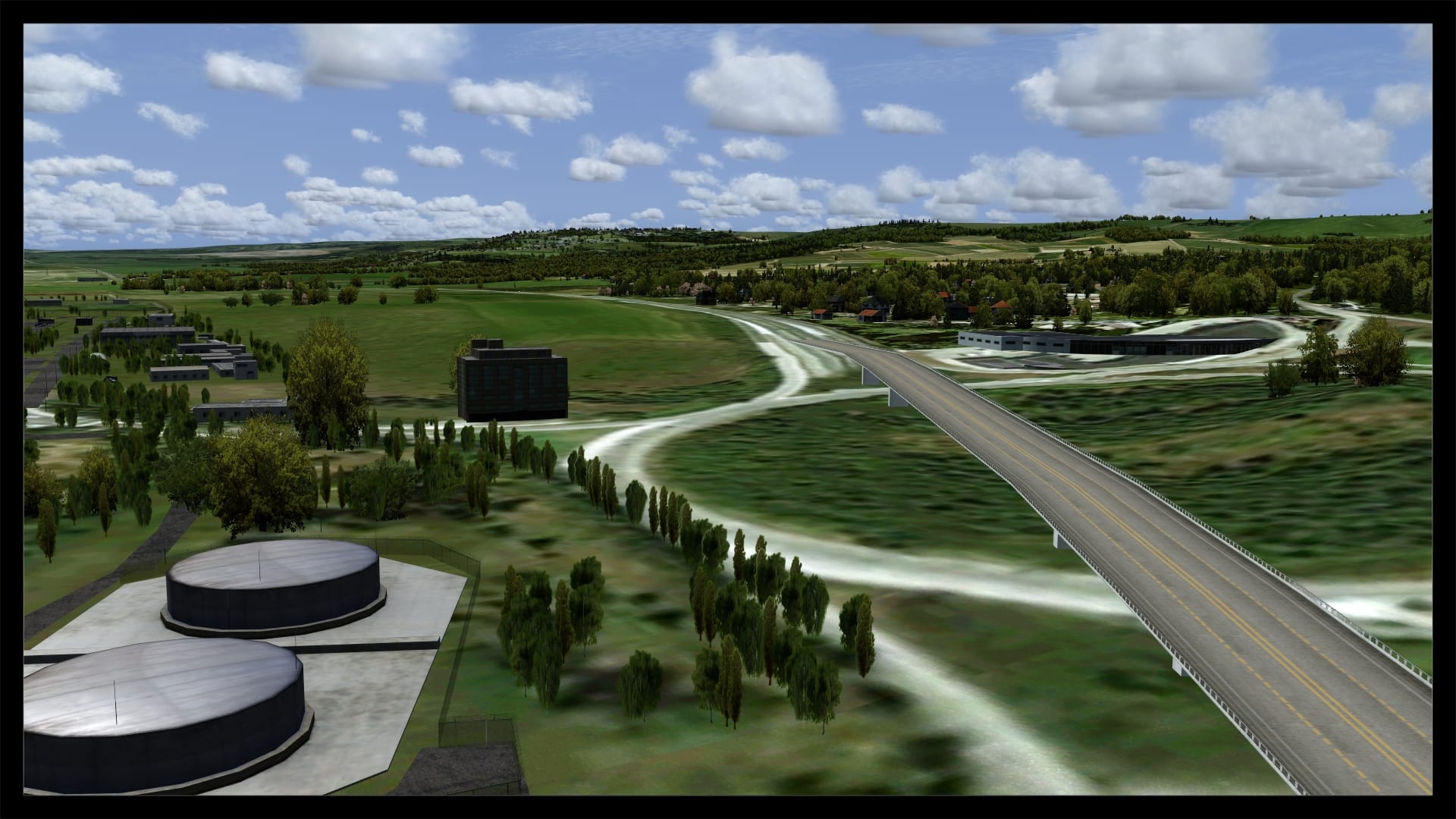 JUSTSIM hat weite Teile der direkten Umgebung mit eigens erstelltem Autogen ausgestattet und mit einem Luftbild unterlegt. Das untenstehende Bild illustriert die Abdeckung der JUSTSIM Umsetzung, welche erkennen lässt, dass im Norden die Autobahn A2 die beiden Texturbereiche (JUSTSIM und ORBX) trennt.