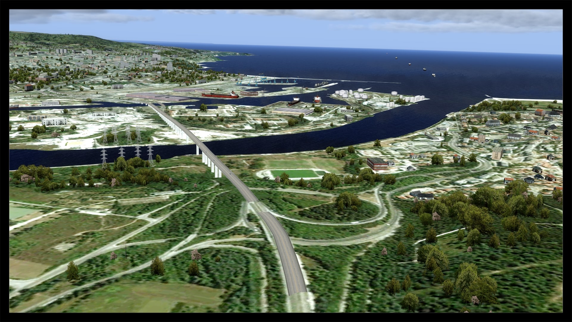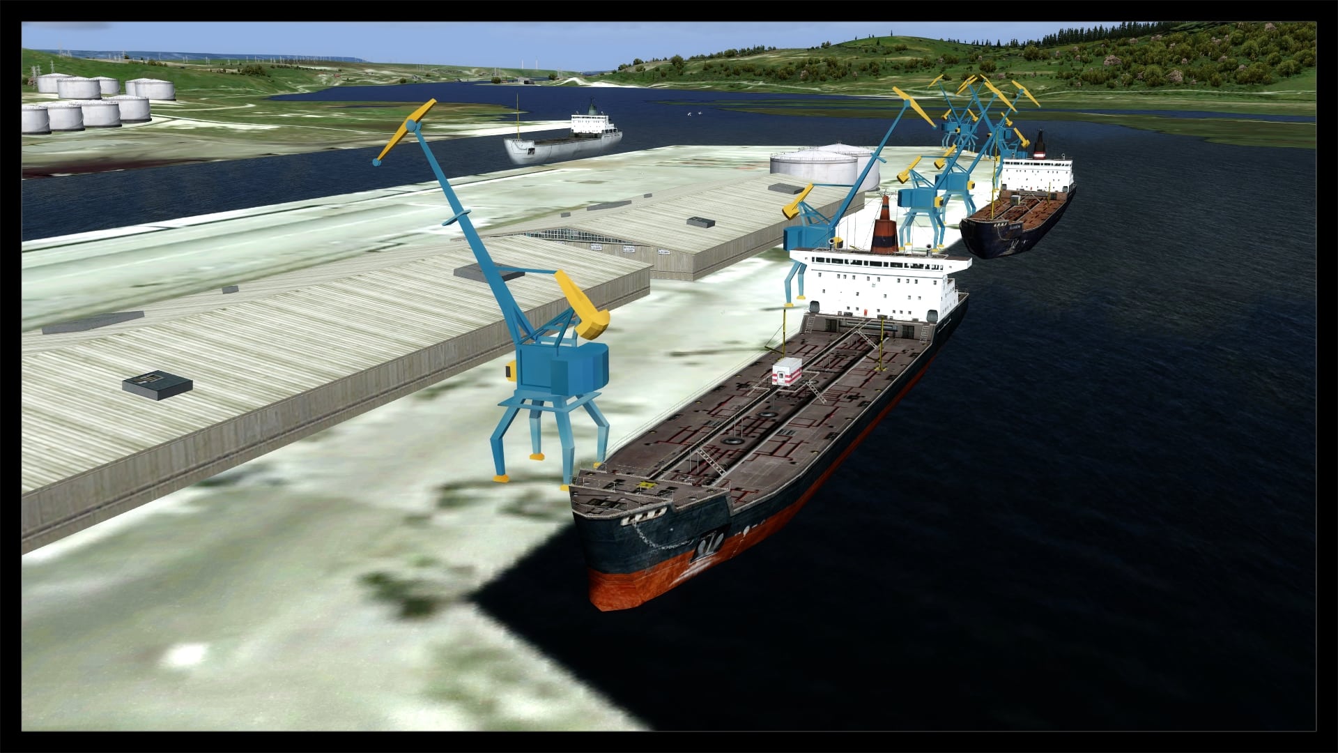 Die eigens erstellten Autogen Objekte, wie Schiffe, Kraftwerk, Häuser und Plattenbauten sind ausreichend detailliert und entsprechen, zumindest im Stadtgebiet, teilweise den realen Bauten. Ein kleiner Blickfang sind Möwen, die die Schiffe umkreisen, die im Hafen und am Kraftwerk vor Anker liegen.