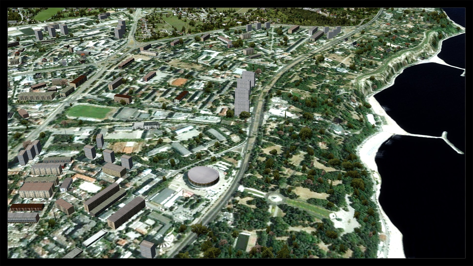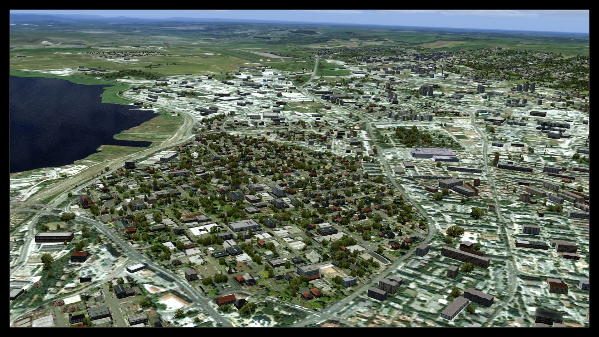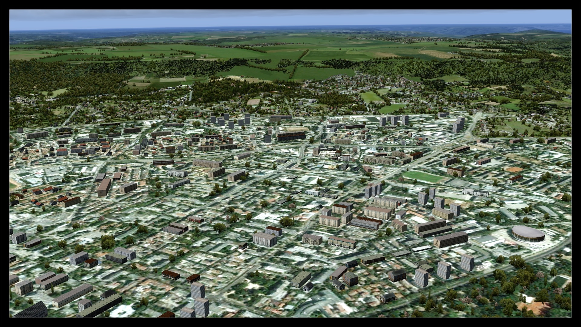 Etwas unerklärlich, aber keineswegs schlecht umgesetzt, ist, warum JUSTSIM an einigen Stellen im Stadtgebiet die Luftbildabdeckung ausgeschnitten hat. An dieser Stelle kommen die ORBX Global Texturen und Autogen zum Vorschein. Vermutlich war die Qualität des Luftbildes nicht ausreichend. Nachteilig ist, dass die Dichte des ORBX Autogens höher ist, als die Dichte von JUSTSIMs Autogen. Dadurch stechen die ORBX Gebiete etwas hervor.