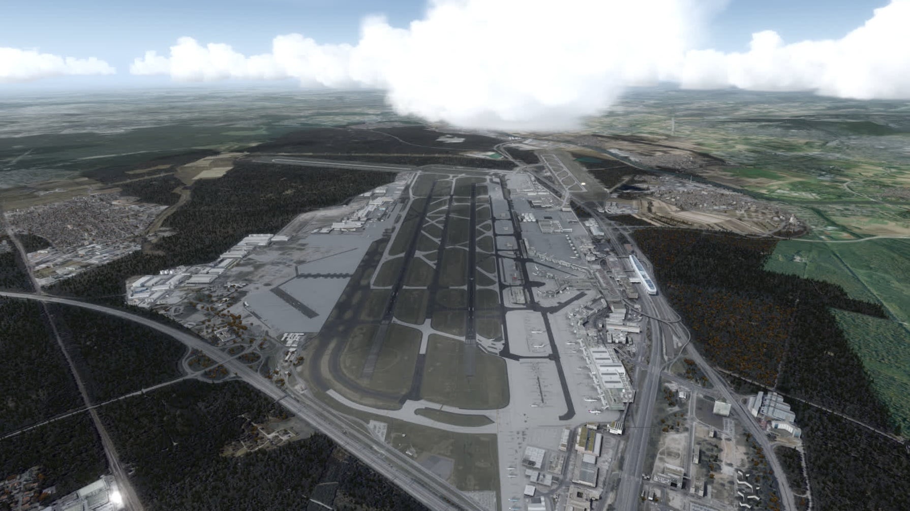 Mega Airport Frankfurt ist eine tolle Umsetzung des aktuellen Ausbaustandes, mit akzeptabler Performance trotz einer unheimlichen Dichte an Gebäuden gerade im Anflug auf die Nordbahn. Mehr
