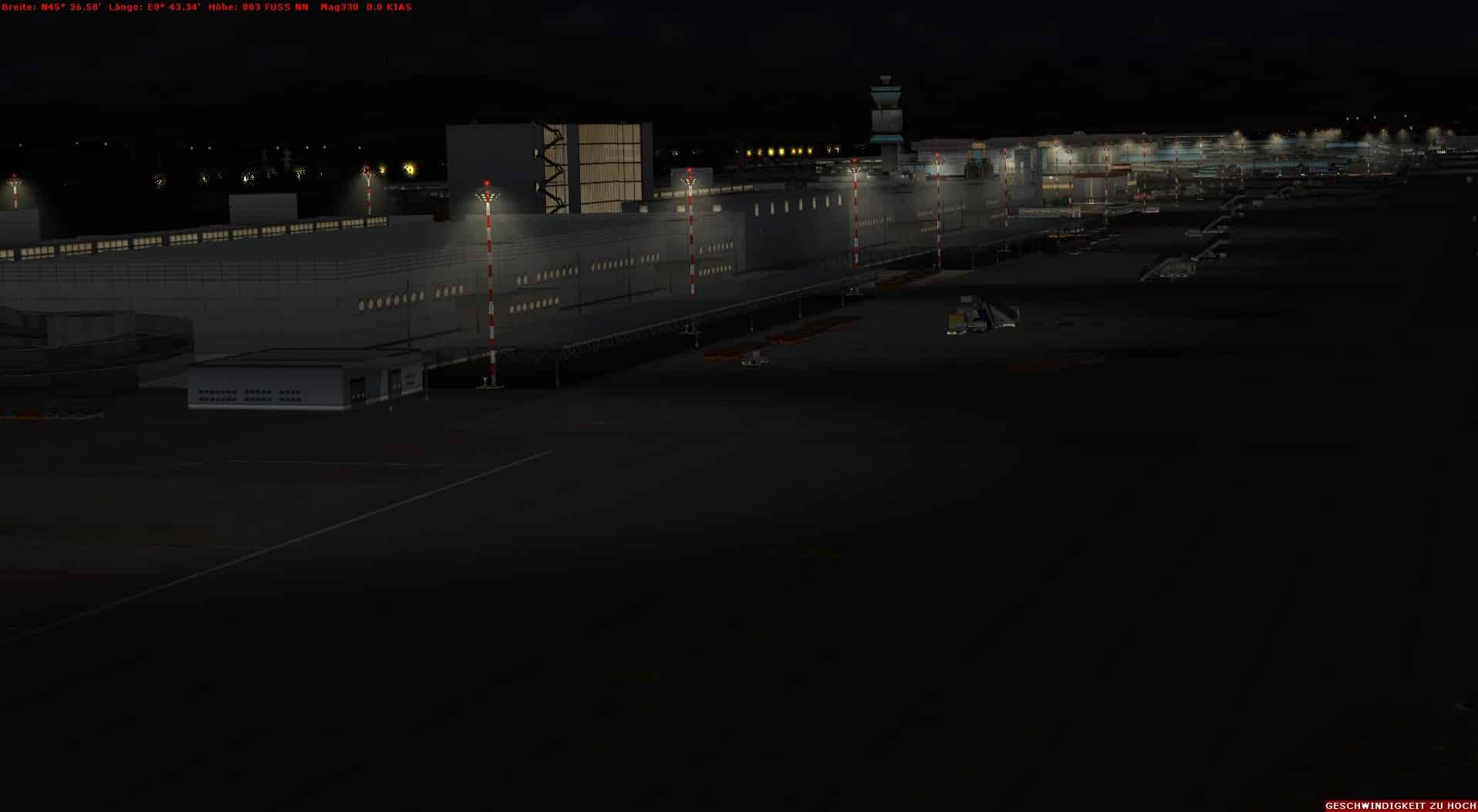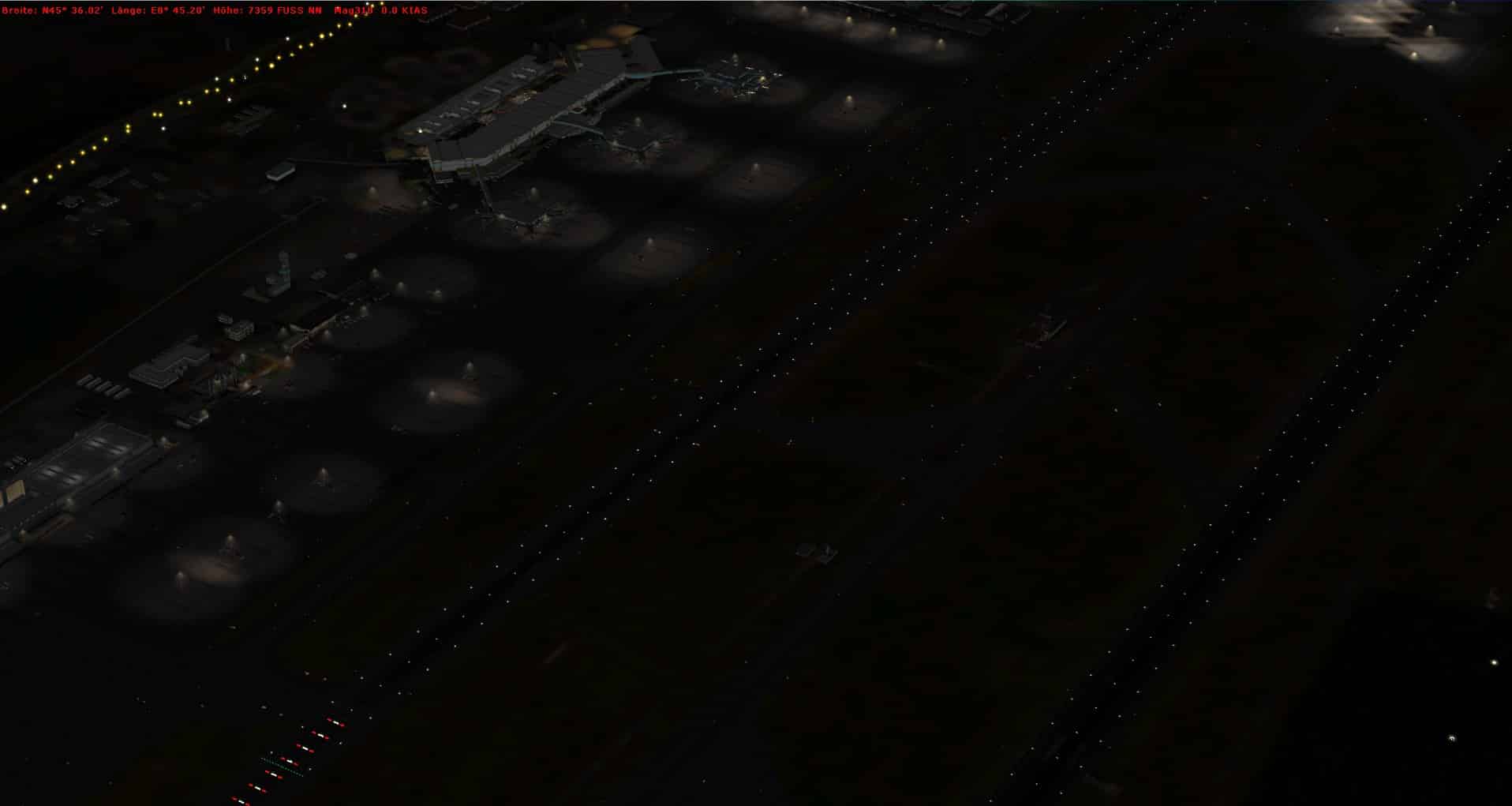 Milano X hat beim Test sowohl Stärken als auch kleinere Schwächen gezeigt. Einen wirklichen Show-Stopper konnte ich nicht ausmachen. Die Gebäude sind allesamt detailliert texturiert und sogar an zahlreiche Details auf der Landseite hat der Entwickler gedacht. Das gibt dem Flughafen gerade beim Anflug einen geschäftigen Eindruck. Besonders gefallen hat mir die Stimmung zu Nachtzeiten. Die Beleuchtung insgesamt aber auch die Anflugbefeuerung empfinde ich als gut getroffen. Im Grunde ist Mailand eine Destination für fast jeden: Langstrecken-Jockeys, Europa-Flieger und auch Frachterpiloten finden hier ein Ziel für den nächsten Flug. Dank der Einbindung von Standard-Jetways bzw. SODE-animierten Jetways kommt das richtige Gate-Gefühl auf auch ohne AES-Credits. Den geforderten Preis halte ich für das Gesamtpaket für angemessen.