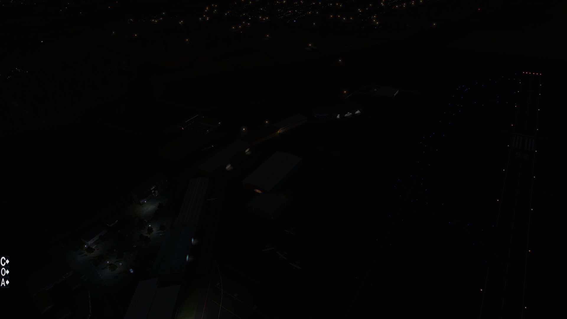 Die Nachtbeleuchtung des Flughafens ist nicht nennenswert, allerdings ist er zu diesen Zeiten natürlich geschlossen.