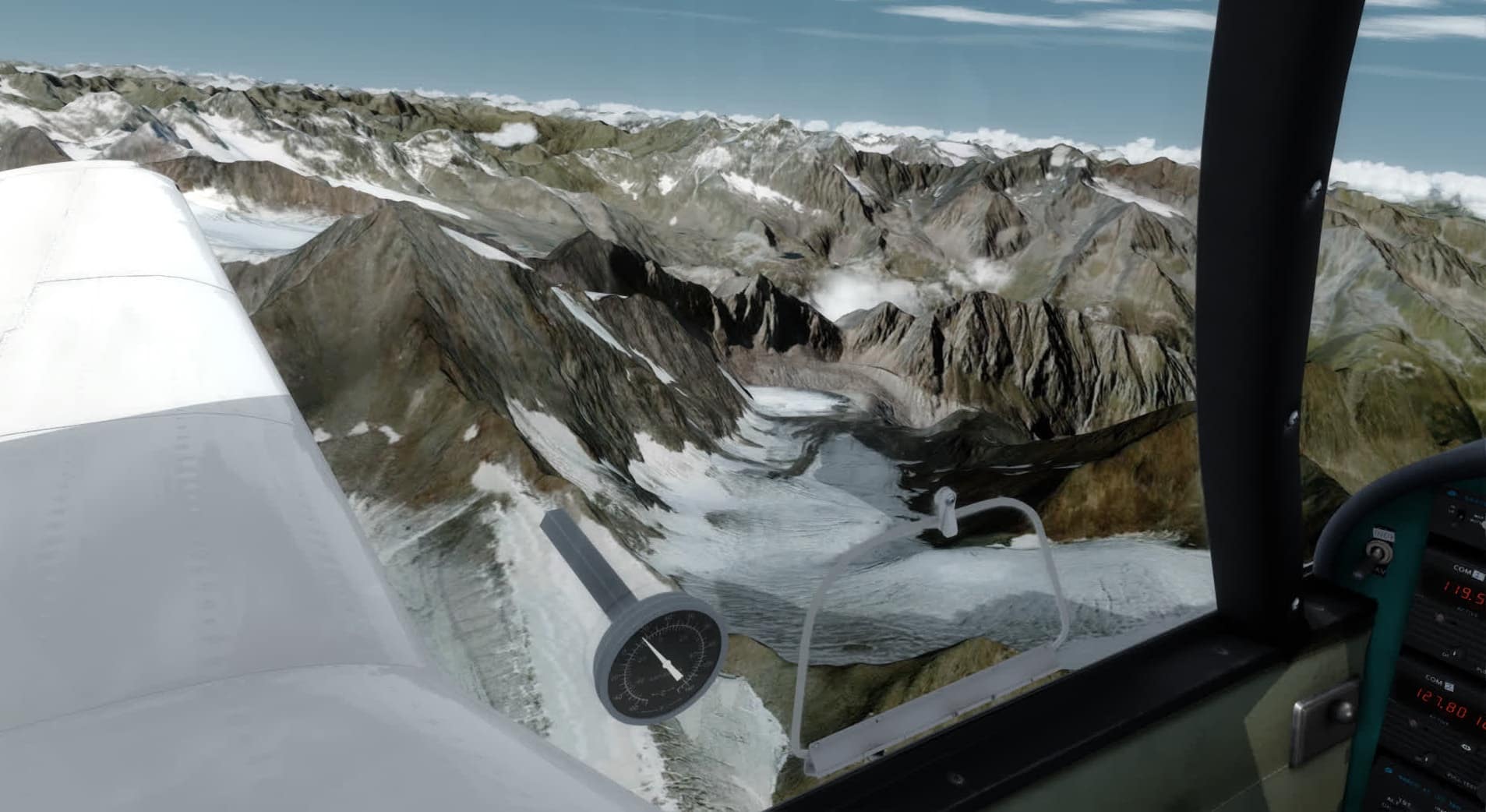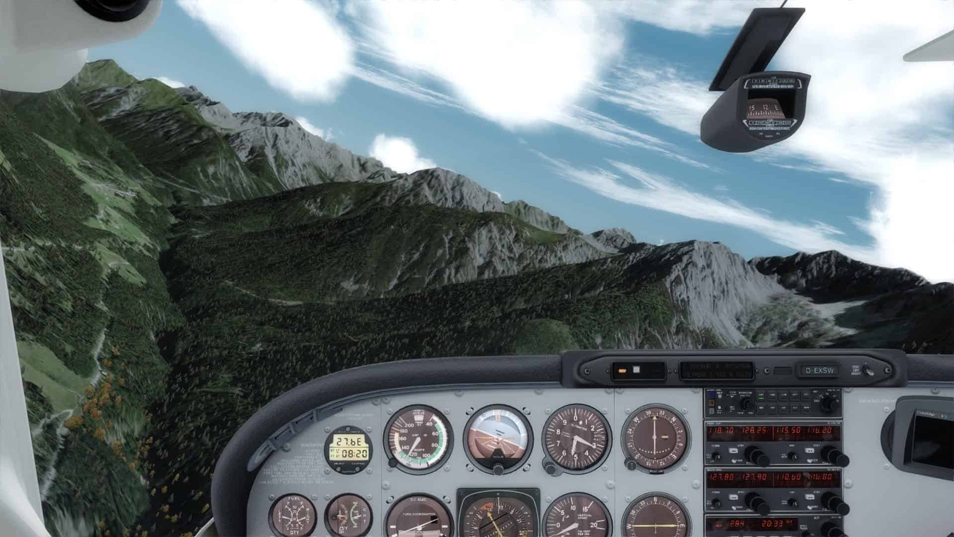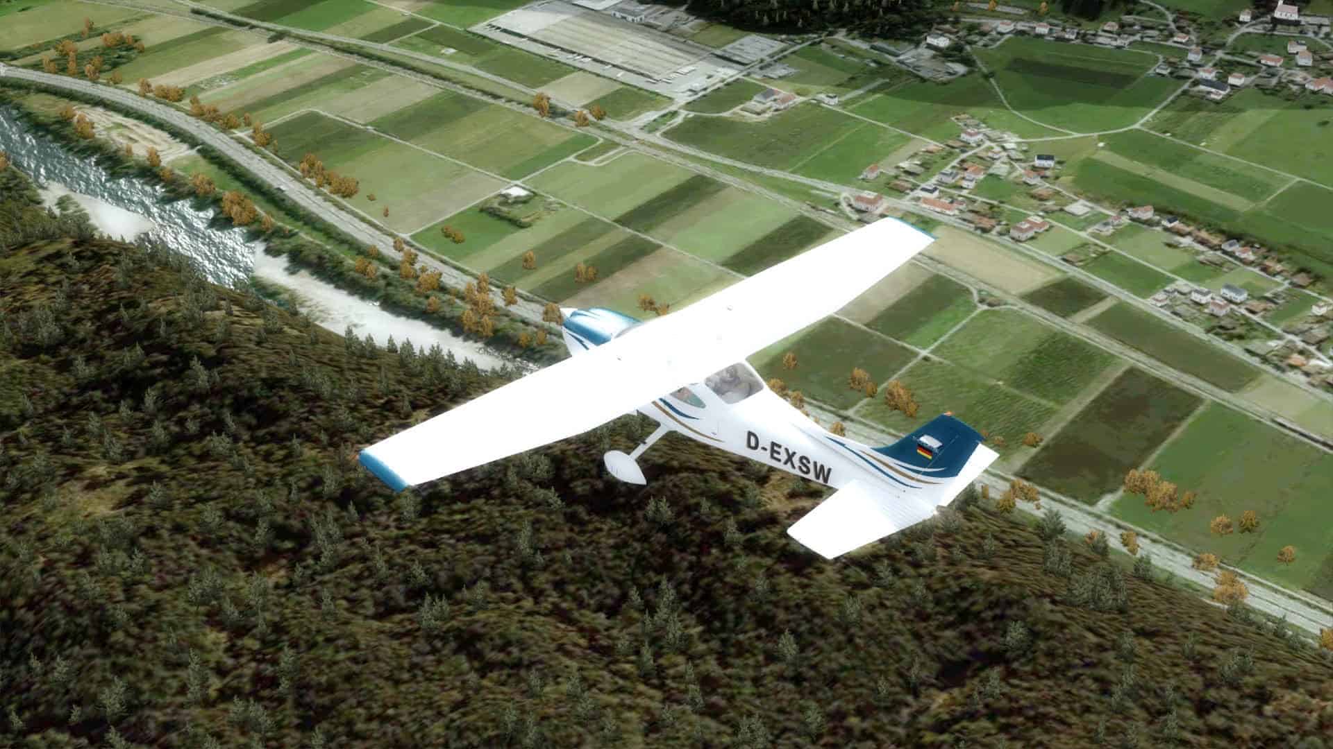 Aber was bei Austria Professional West am meisten Spaß macht, dass ist das Fliegen im Hochgebirge. Also schnappen wir uns wieder ein Propellerflugzeug (diesmal die A2A Cherokee), um aus Innsbruck durch das Inntal zum Ötztal und zur italienischen Grenze zu fliegen.