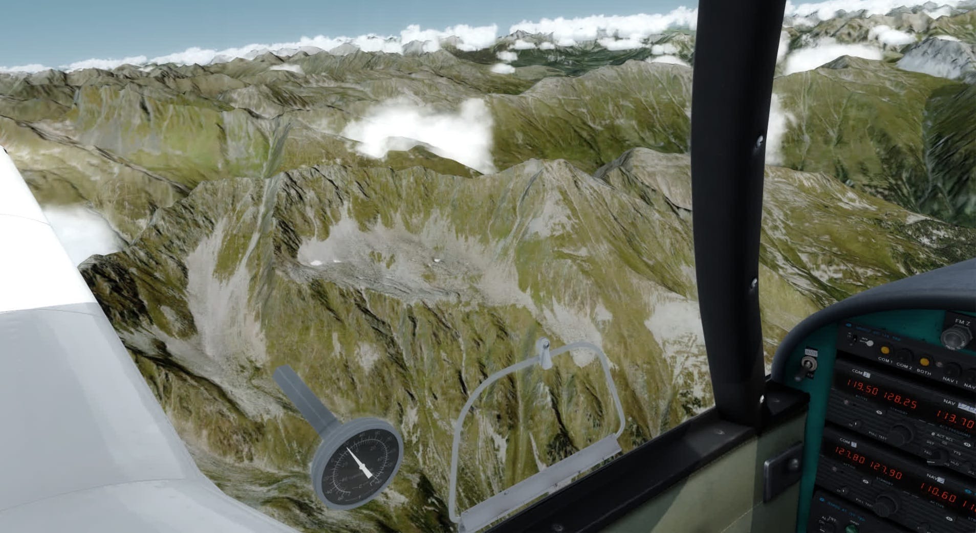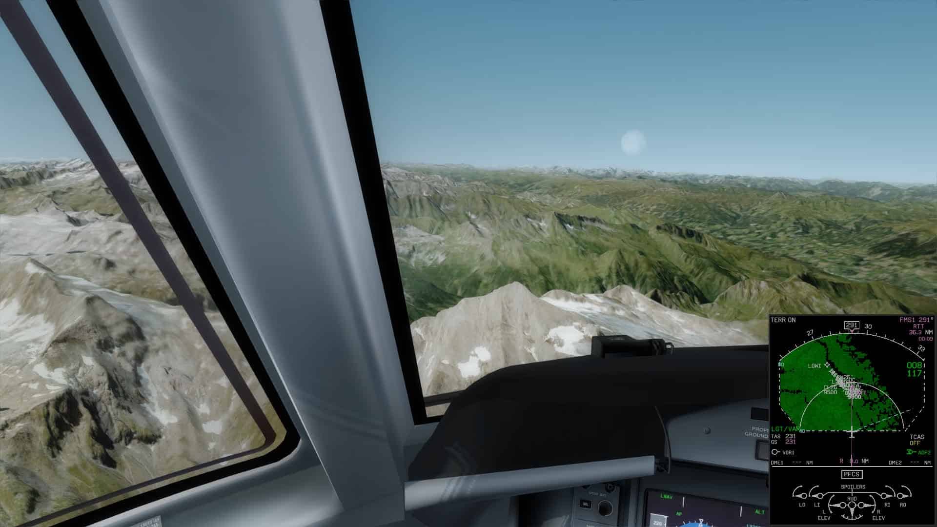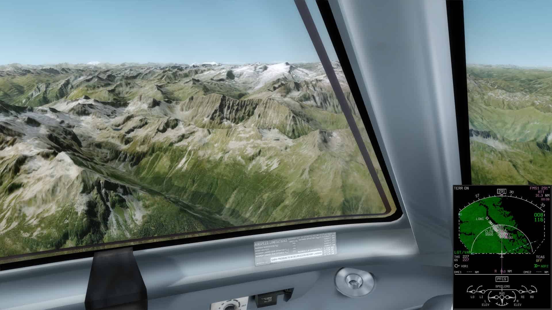 Wie ihr an den Fotos erkennen könnt sind jeweils nur die nächsten Berge wirklich scharf (also mit höchstem Detailgrad) dargestellt; das ist sicher nicht der ATPHD West anzulasten, sondern der Kombination aus Addon-Flugzeug und P3D v3, aber ein wenig nervend ist es schon.