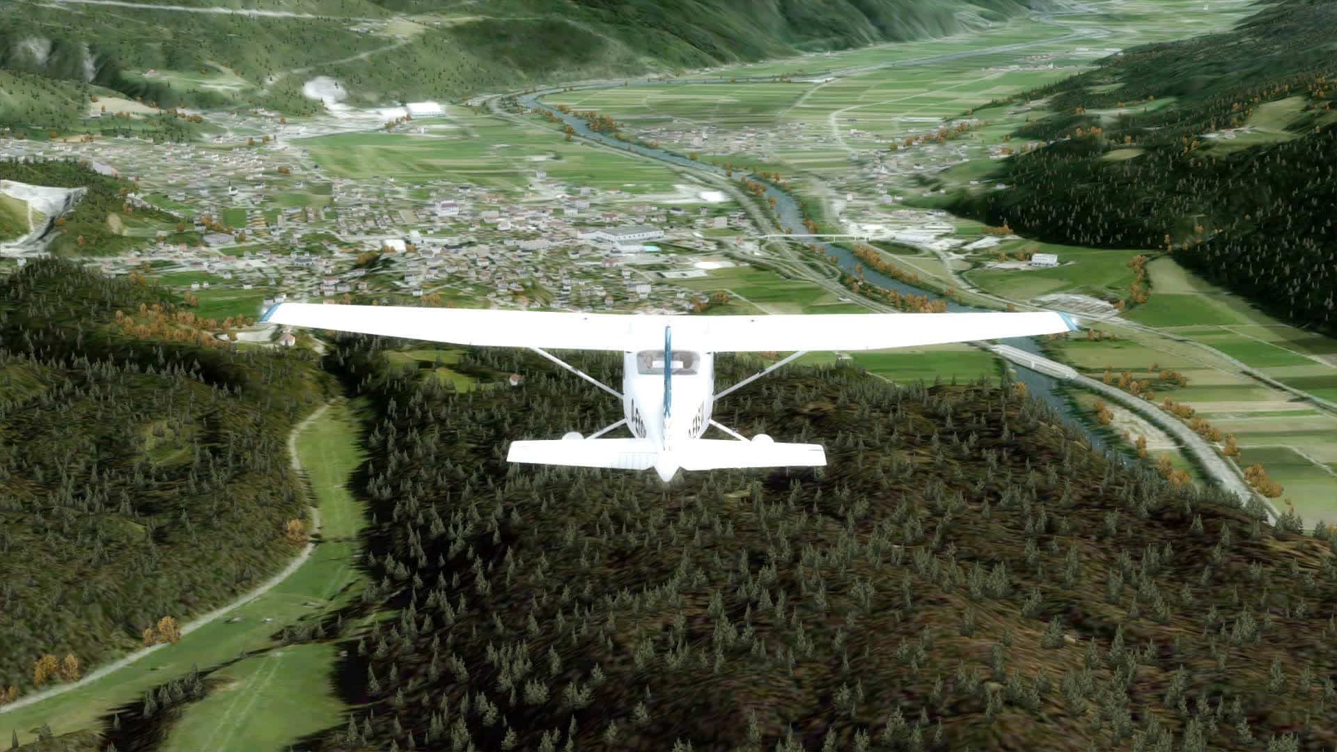 Bei dieser Tour fällt zunächst (seht das erste Bild) der enorme Kontrast zu VFR Germany Süd auf: dort blasses Grün, in Österreich satte Wiesen. Und es gibt nachvollziehbare, weil dicht mit Häusern bestückte, Städte. Besonders gut gefallen haben mir die immer wieder auch auf Almen auftauchenden einzelnen Gebäude, akkurat platziert auf der Fototapete, so gibt es selbst hier oben immer was zu entdecken.