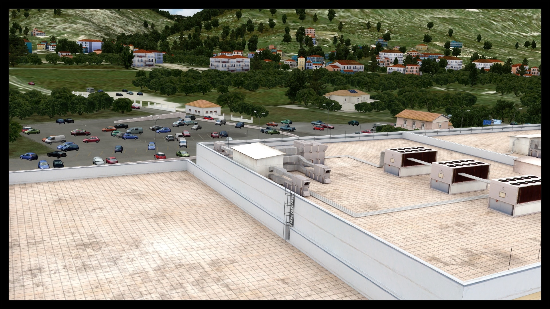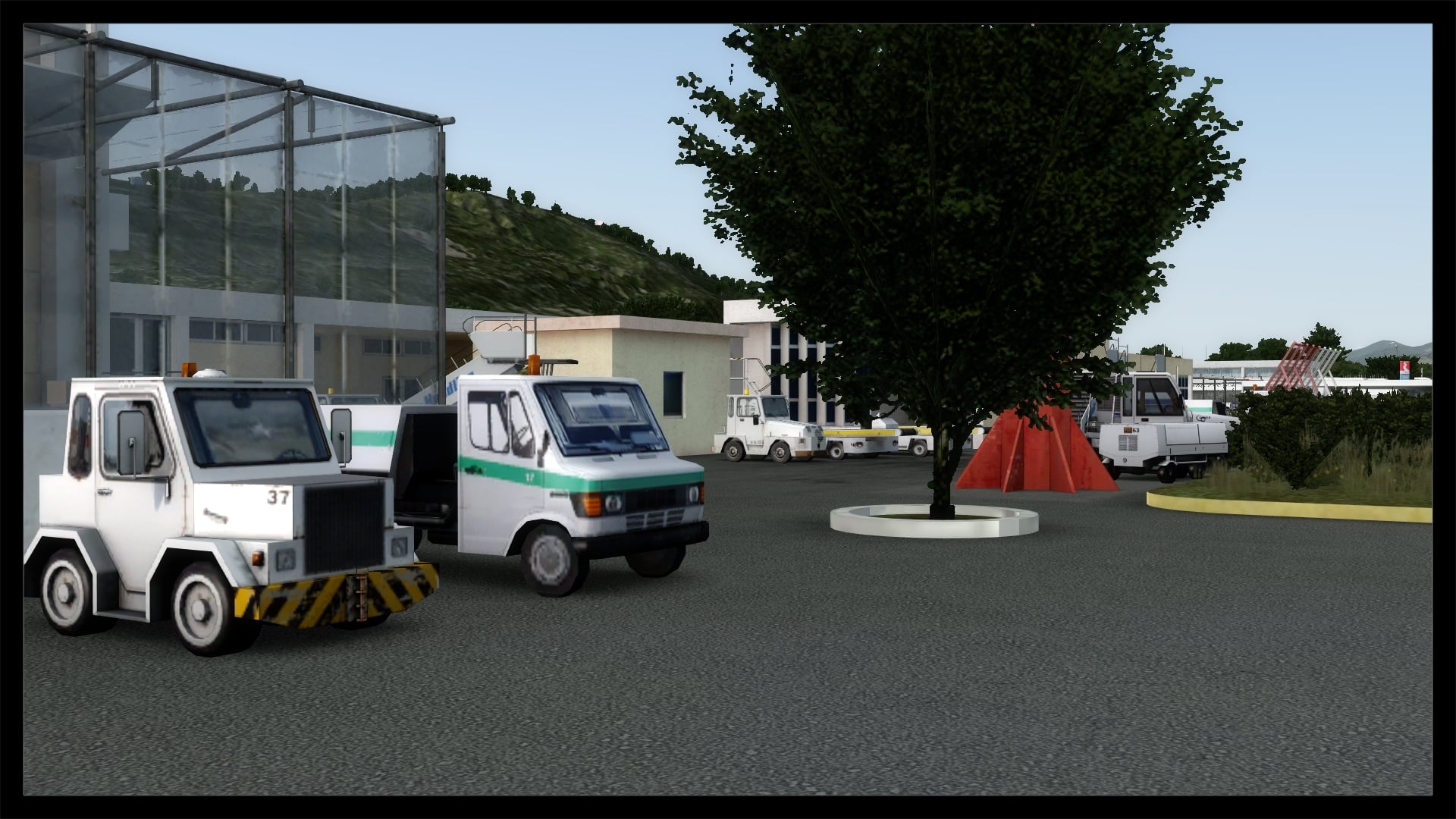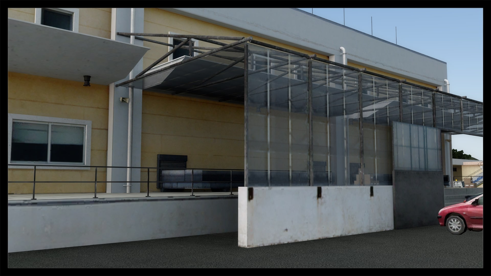 Die Gebäude sind allesamt schön gestaltet und brauchen sich nicht zu verstecken. Die Texturen sind scharf und durch geschickte Farbanpassungen sehr plastisch. Die Modellierung ist sehr sauber und die Detailtiefe bemerkenswert. Zu nennen sind hier der 3D-Schriftzug des Flughafennamens, die Abflussrohre, Lautsprecher, Gitter und Metallkonstruktionen. Auch Klimaanlagen inklusive Zu- und Ableitungsrohren, Sitzbänke und Mülltonen wurden umgesetzt.