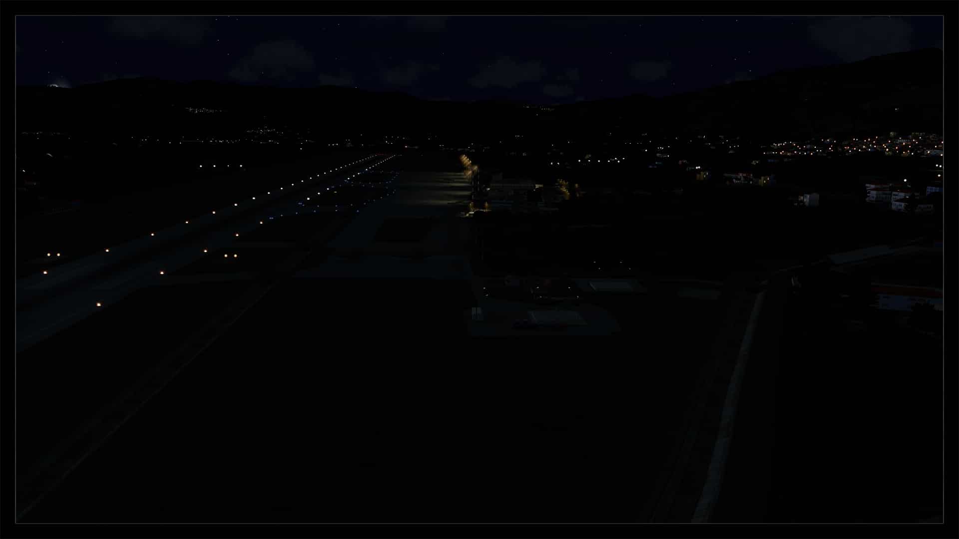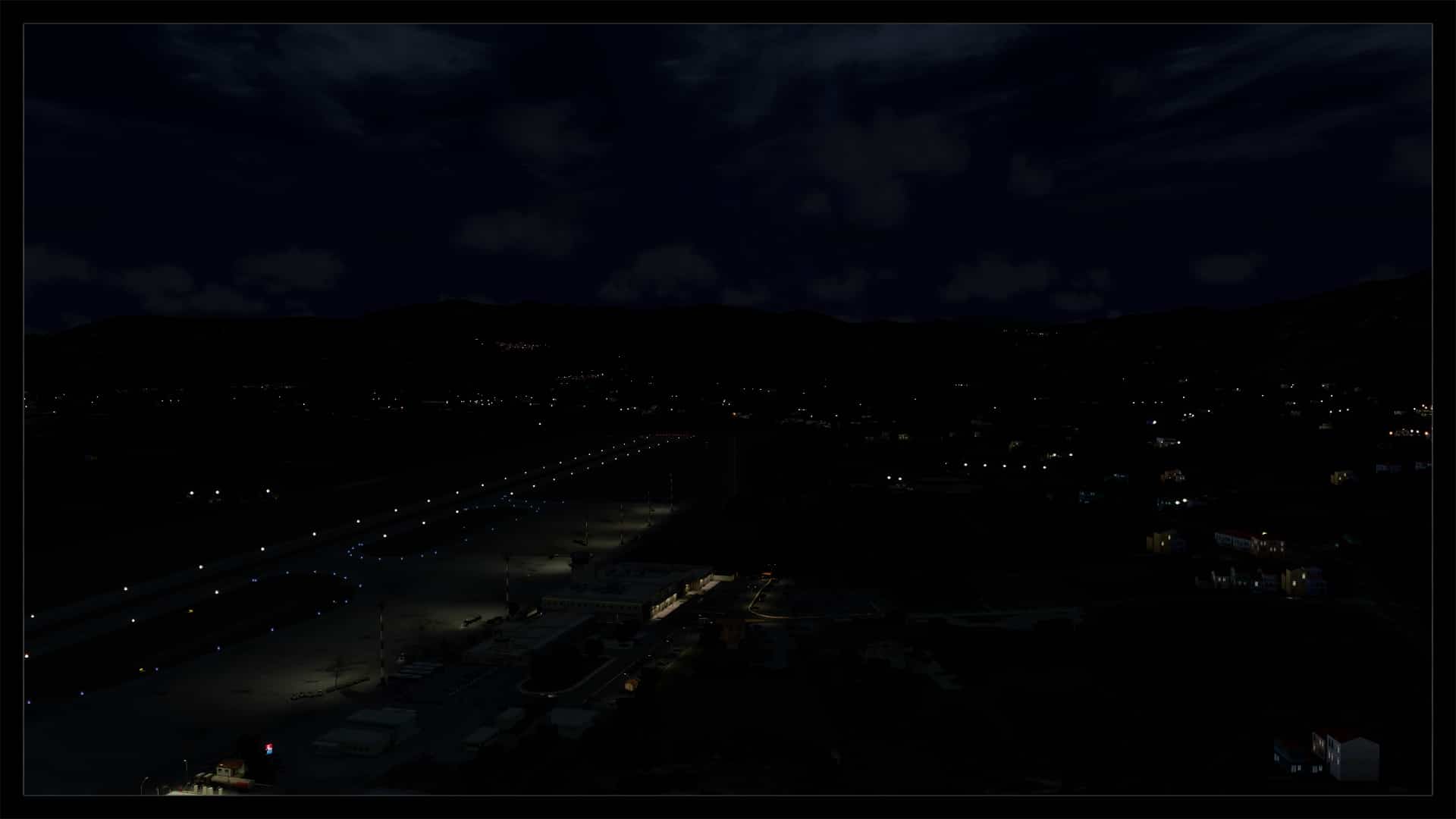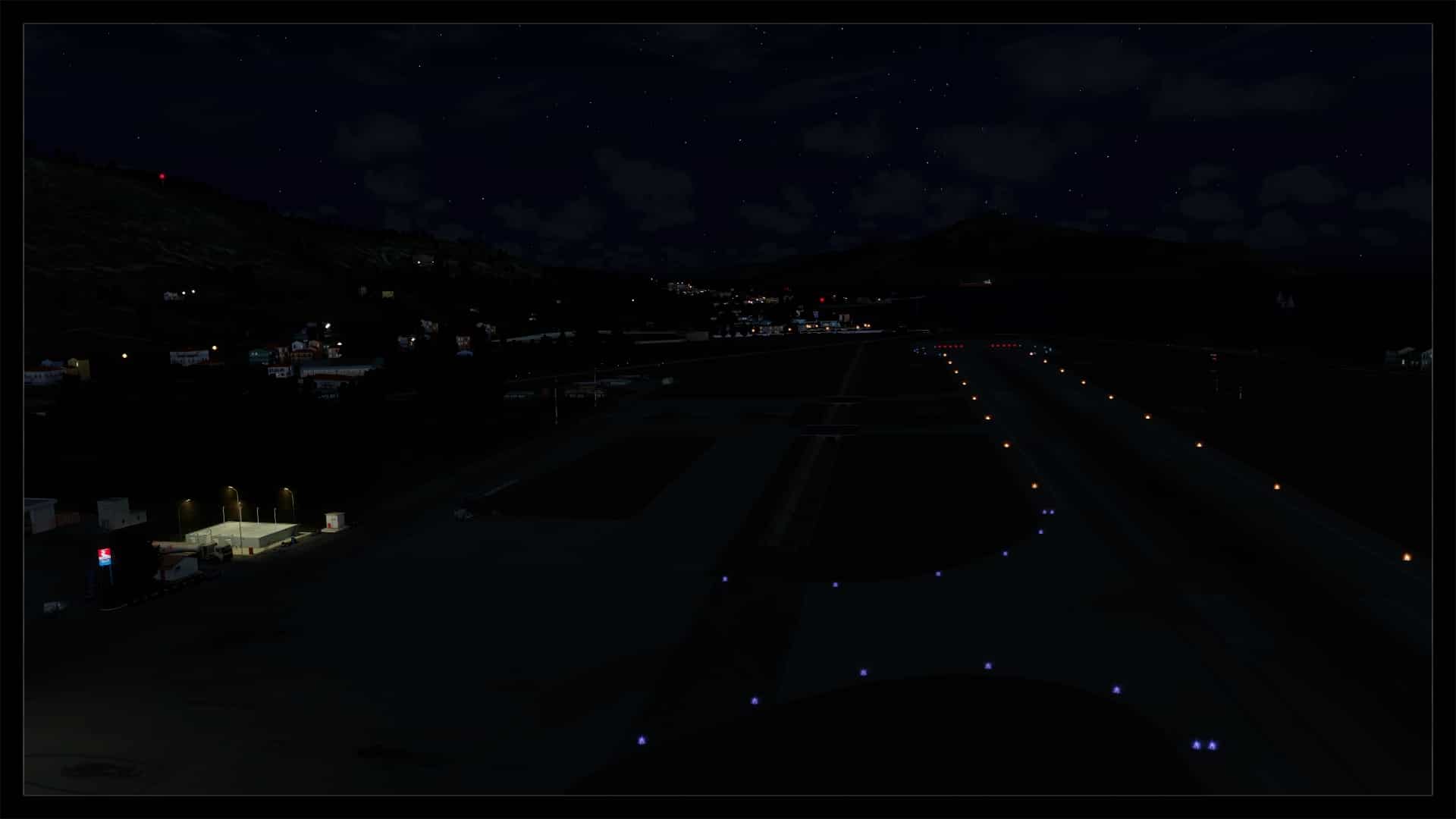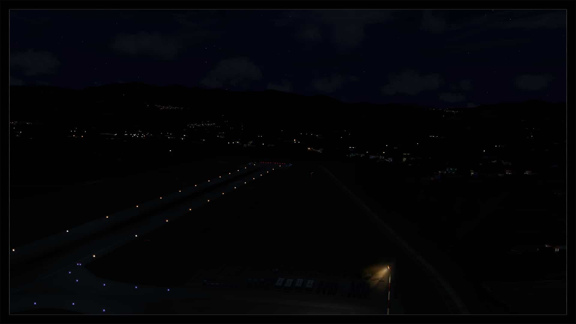 29 Palms haben, neben dem Flughafen, auch den Bereich der Anflüge mitumgesetzt. Zu dem 90 Quadratkilometer großen Luftbild hat 29Palms außerdem das Mesh und die Landklassen der kompletten Insel überarbeitet. Eine komplette Inselumsetzung ist jedoch nicht im Lieferumfang enthalten. Das verwendete Luftbild ist sehr gut und auch die platzierten Objekte sind stimmig und individuell erstellt. Besonders die wichtigen Landmarken im Anflug auf die Bahn 09 sind zu erkennen, dazu zählen das Pier bei „Ireo“, das kleine Dorf „Mili“ und die weißen Lagerhallen im Final. Die Kompatibilität zu Orbx Global und Vector ist gegeben, auch wenn man die Grenze zwischen 29 Palm und Orbx Gebiet aufgrund der Dichte und Farbe der Vegetation erkennt. Allerdings nicht so stark das es massiv stören würde.