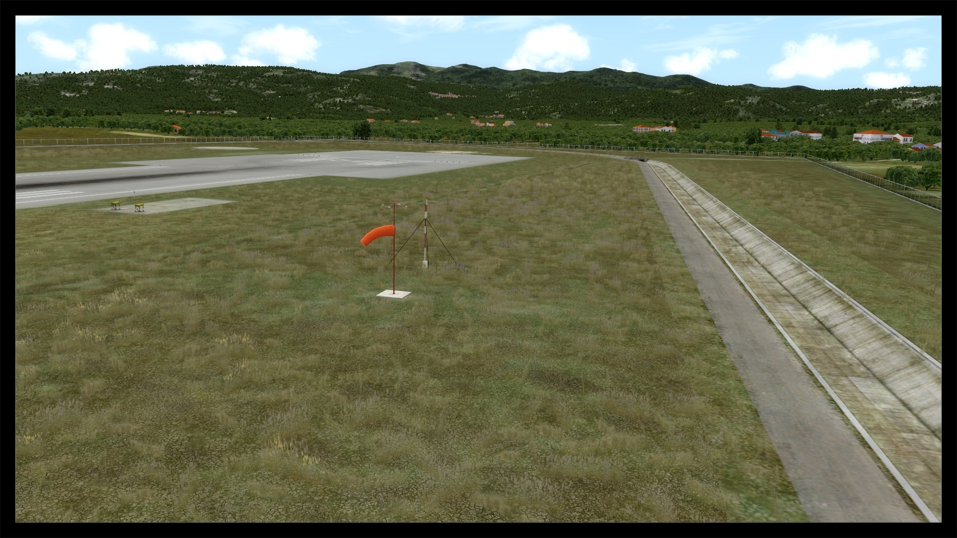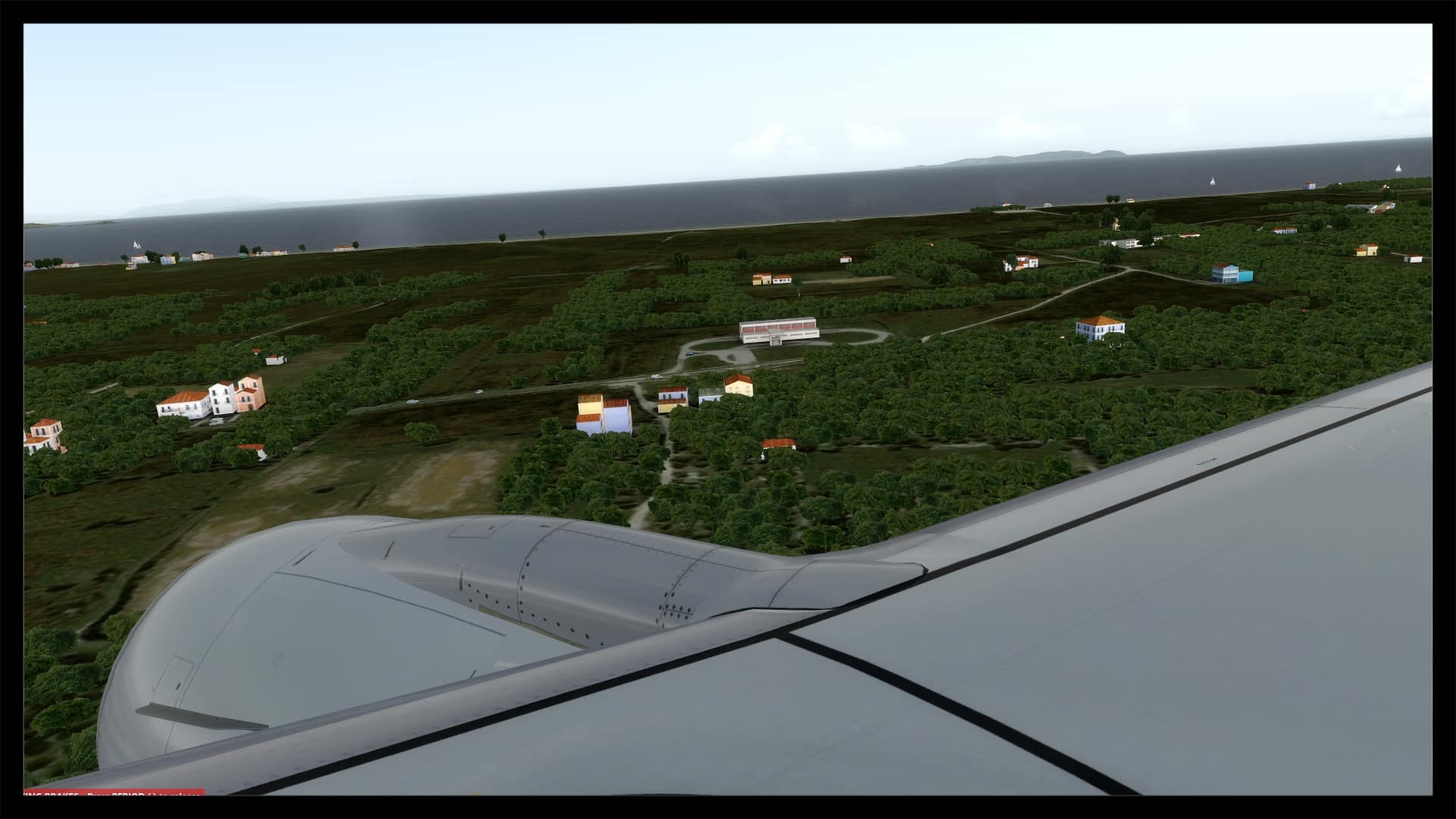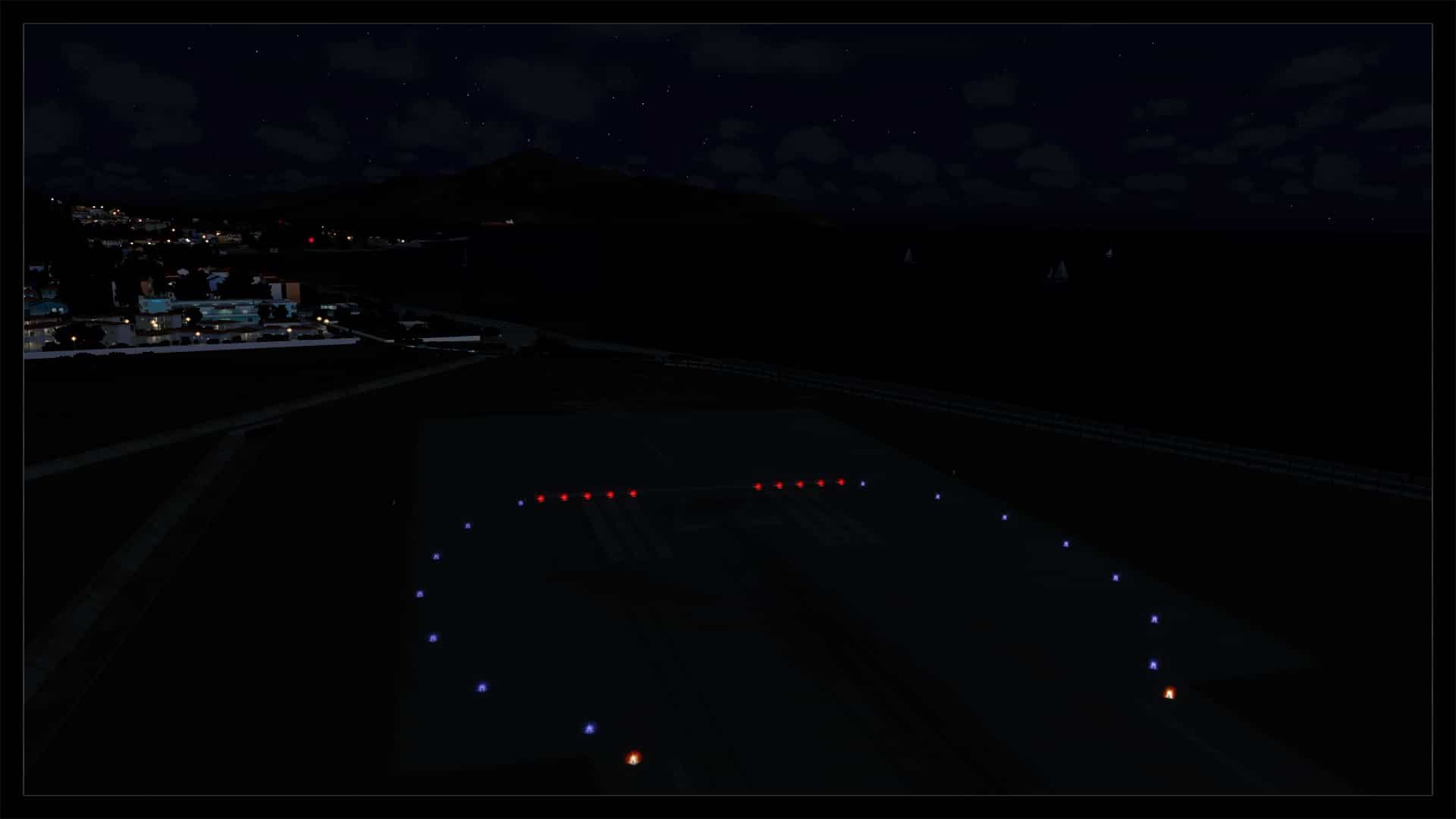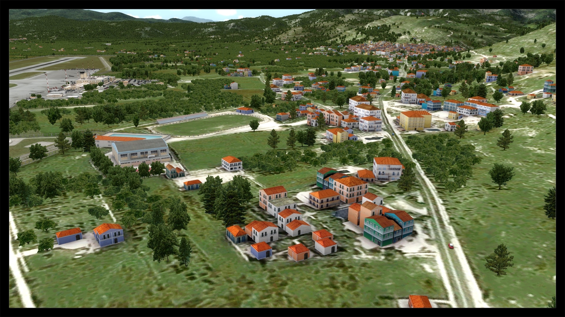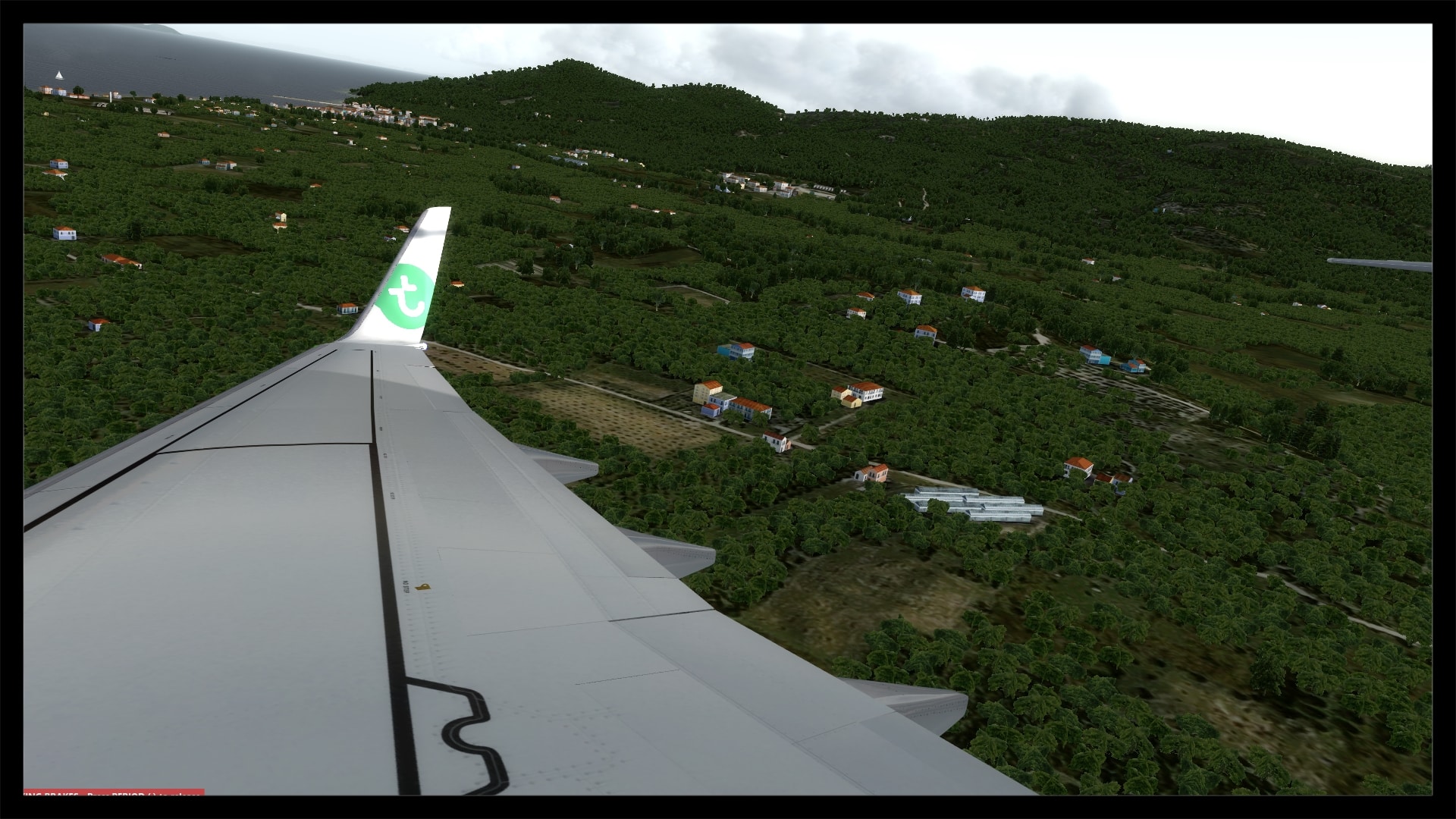 29 Palms haben, neben dem Flughafen, auch den Bereich der Anflüge mitumgesetzt. Zu dem 90 Quadratkilometer großen Luftbild hat 29Palms außerdem das Mesh und die Landklassen der kompletten Insel überarbeitet. Eine komplette Inselumsetzung ist jedoch nicht im Lieferumfang enthalten. Das verwendete Luftbild ist sehr gut und auch die platzierten Objekte sind stimmig und individuell erstellt. Besonders die wichtigen Landmarken im Anflug auf die Bahn 09 sind zu erkennen, dazu zählen das Pier bei „Ireo“, das kleine Dorf „Mili“ und die weißen Lagerhallen im Final. Die Kompatibilität zu Orbx Global und Vector ist gegeben, auch wenn man die Grenze zwischen 29 Palm und Orbx Gebiet aufgrund der Dichte und Farbe der Vegetation erkennt. Allerdings nicht so stark das es massiv stören würde.