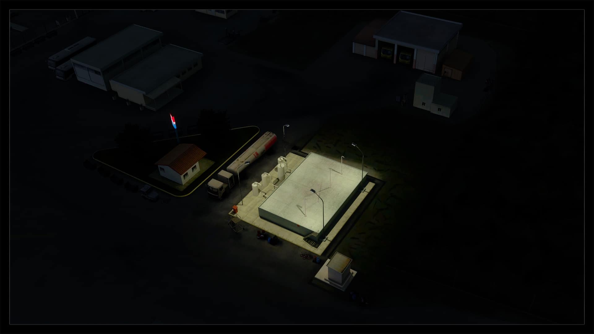 Die Umsetzung der Fahrzeuge und Objekte ist schön gelungen. Sauber modelliert und texturiert mit Verschmutzungen und Abnutzungen. Ebenfalls passend und stimmig sind die Positionierung, Anzahl und die Art der Schlepper, Versorgungsfahrzeuge, Treppen und externen Stromversorger.