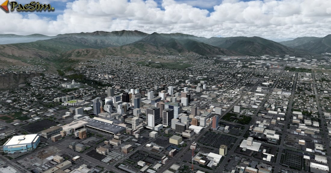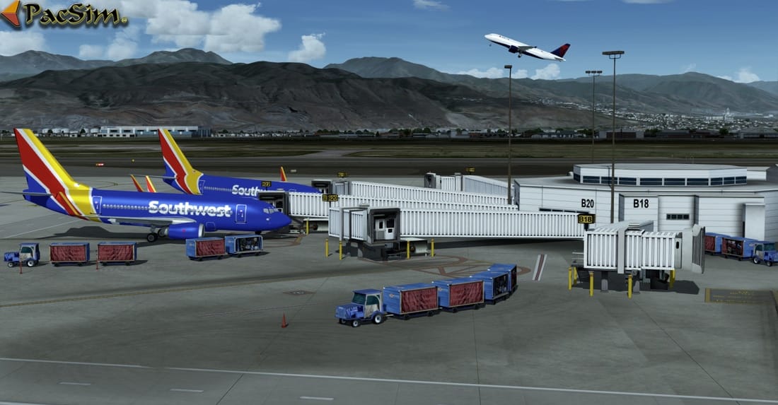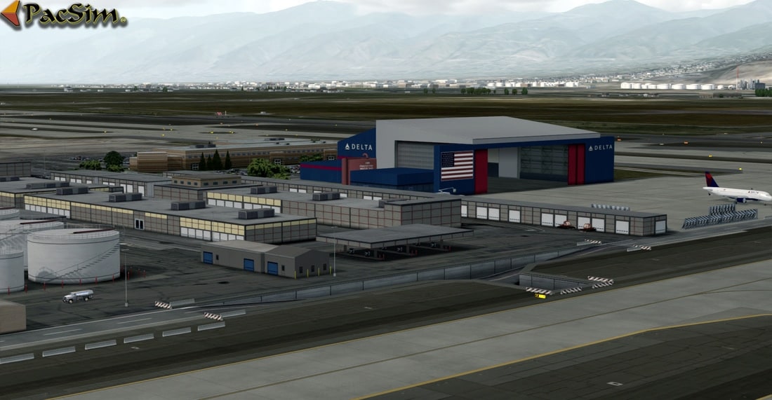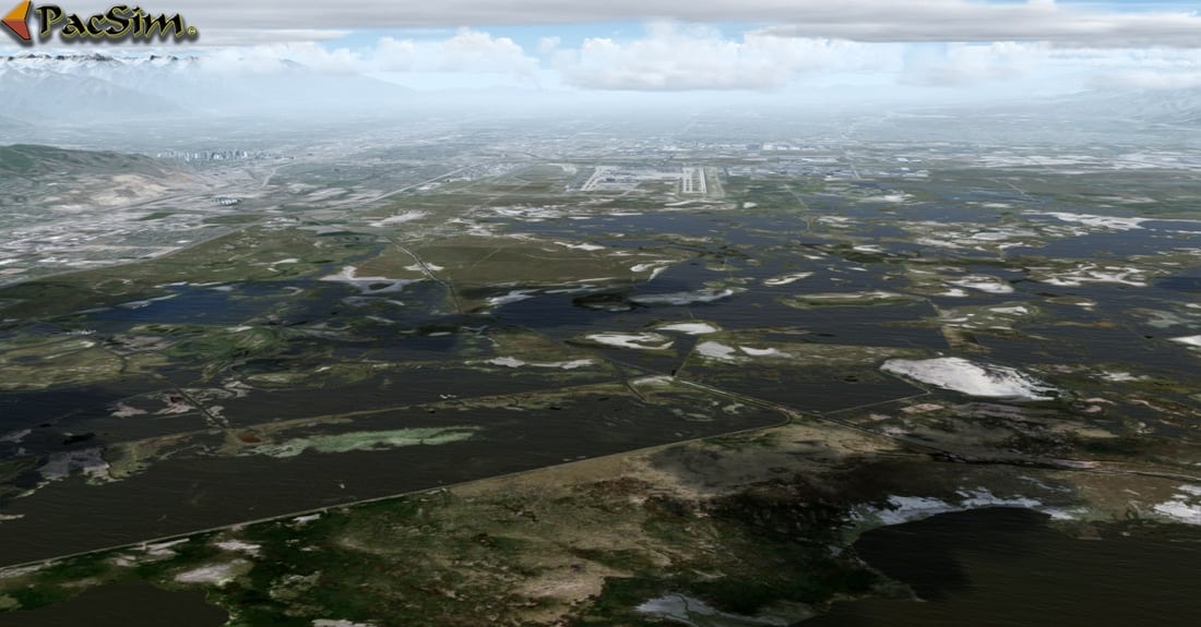 Accurate terminals 1 and 2, concourses, hangars and airport layout; Salt City and suburbs; HD custom runway and apron/tarmac textures; Custom vegetation, buildings; 3D grass throughout airport; Free high resolution (7cm-30cm pixel) photo real textures covering the Wasatch and Oquirrh Mountains and Salt Lake valley; Color-corrected ground and water textures to reflect real-world land and water colors; Accurate hand-placed autogen that conforms with city, town, district, and farm grids; Major landmarks and high-rise buildings; Custom night light effects and street lighting throughout the airport and surrounding areas; Rotating beacons and receiver towers; Static local ground service equipment, cars and planes; AI ground vehicle conforms with real-world road grid; Fully optimized for steady/smooth simulation experience. All autogen can be set to the 100% with very little impact on FPS; Custom Configuration Panel to manage VAS and FPS resources; ….and more.