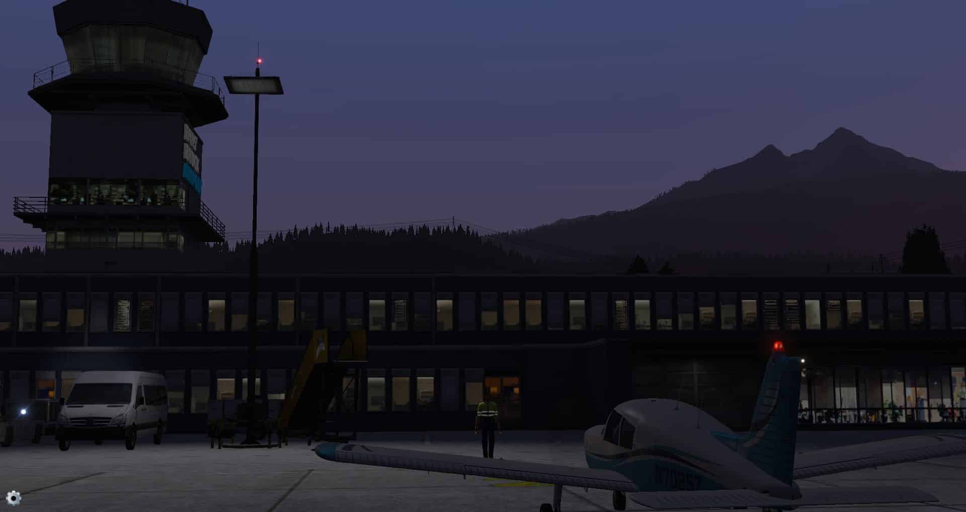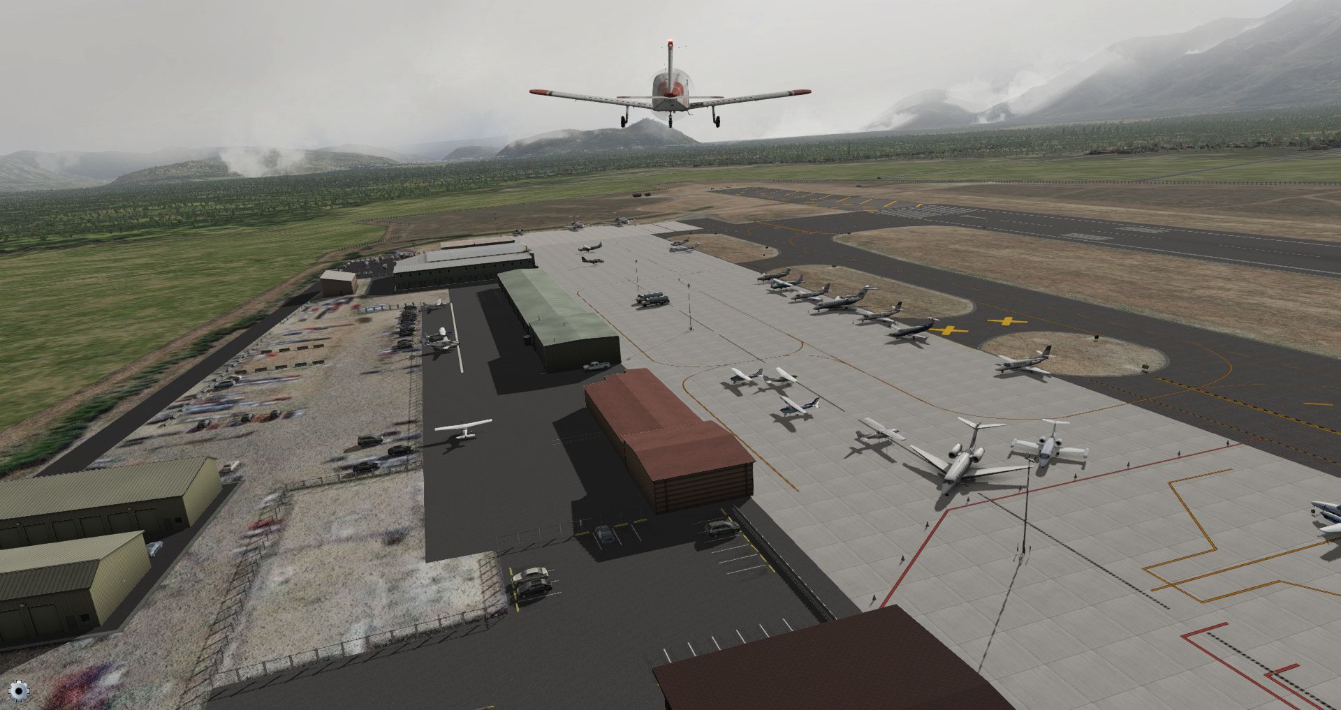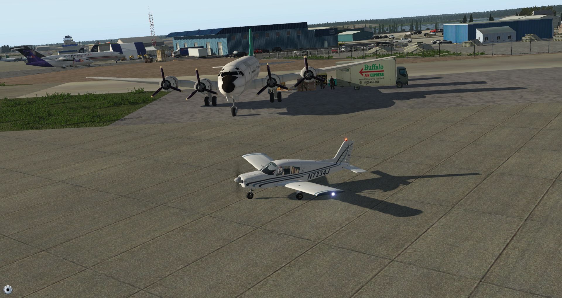 Es gab einen bescheidenen Bodenverkehr. Die modellierten Gebäude umfassten nicht nur den Flughafen selbst, sondern auch Teile der Stadt selbst.