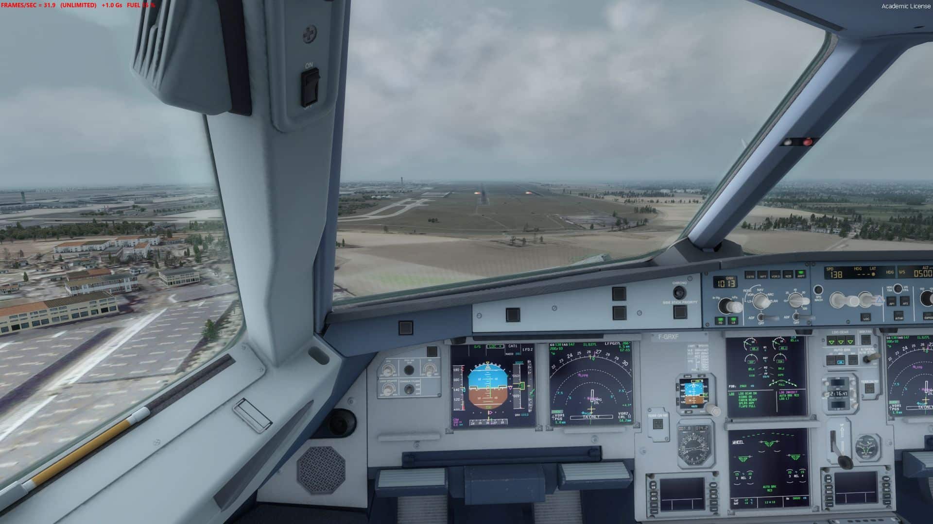 Im Anflug erkennt man, dass der Übergang zu FTX-Global nicht gut gelungen ist. Die Farben der Texturen stellen leider einen deutlichen Bruch dar. Zwischen dem weiteren Umland und dem eigentlichen Flughafengelände ist erneut ein ruppiger Übergang anhand der Bodentexturen zu erkennen. Muss das sein? Im weiteren Verlauf des Anfluges und während der Landung bleibt die Performance erfreulicherweise sehr stabil. Am Boden angekommen gefallen scharfe Bodentexturen, die mit exakten und deutlichen Markierungen zur Orientierung auf dem Rollfeld beitragen. Auf den ausgedörrten Rasenflächen ist zudem ein wenig 3D-Gras verteilt.