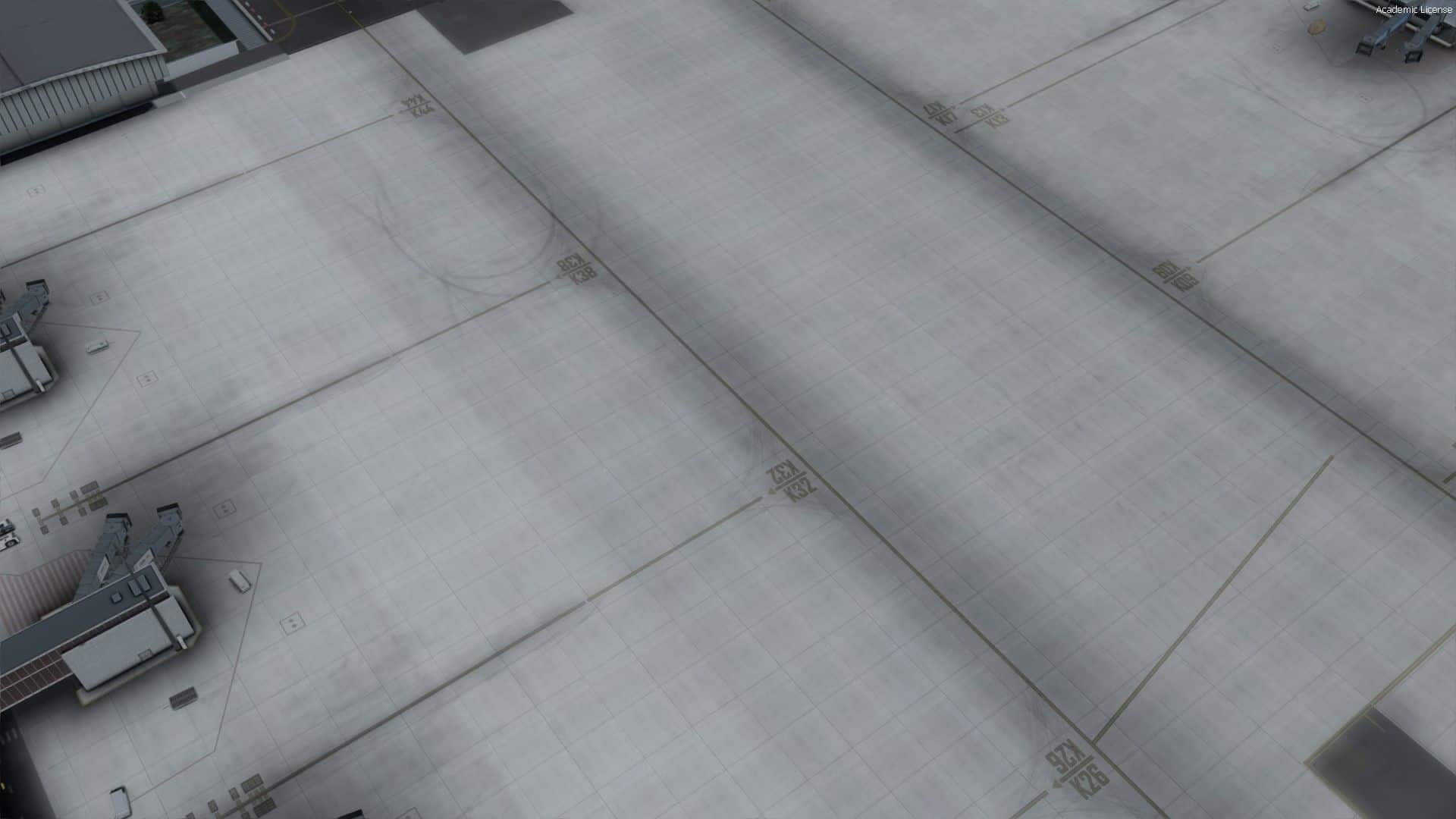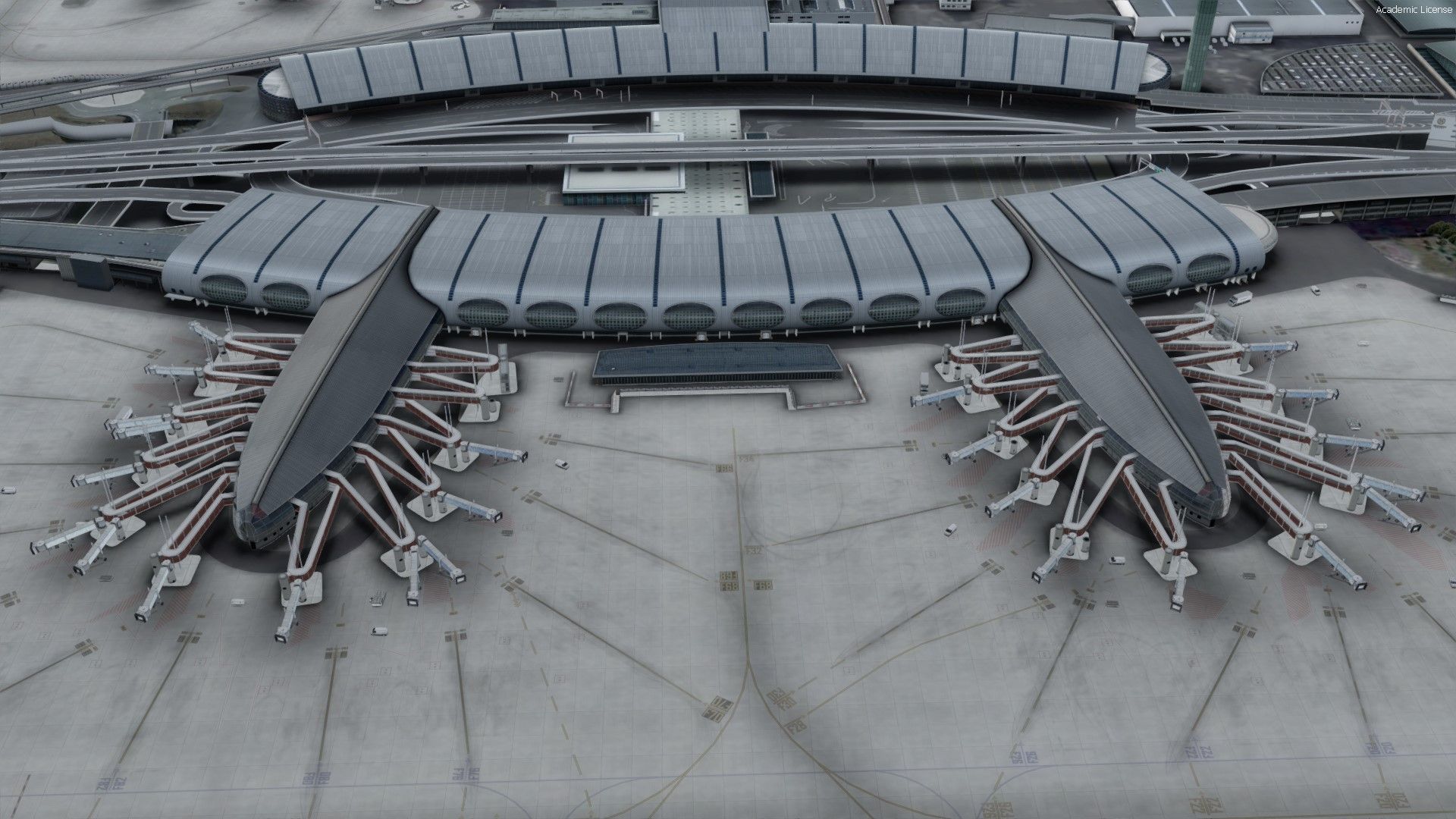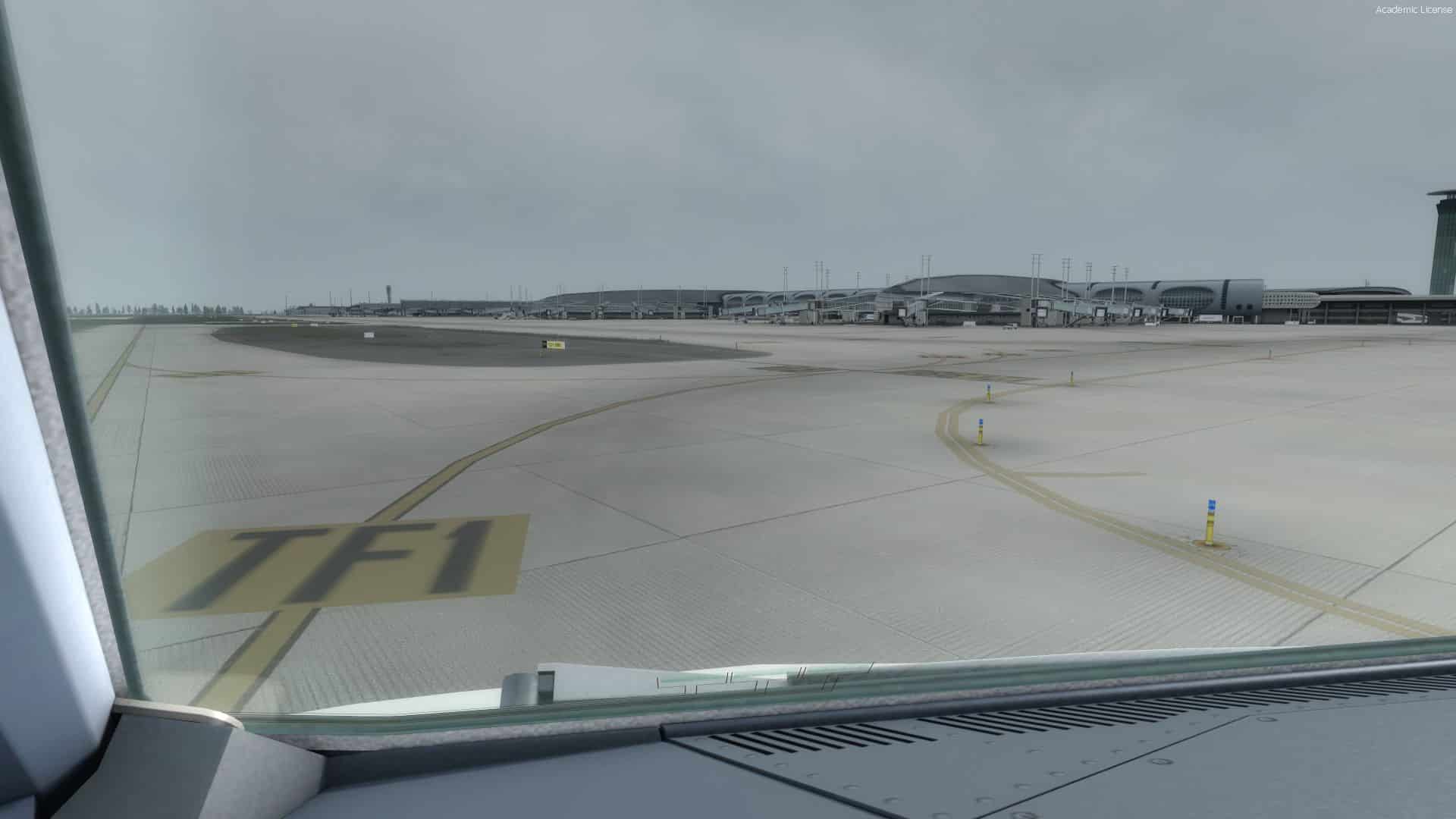 Am Terminal 2F wirkt es an bestimmten Stellen so, als ob die Entwickler vergessen hätten Markierungen für Parkpositionen zu setzen. Dort befinden sich Jetways, die scheinbar keine Position erreichen können. Luftbilder zeigen jedoch auch in der Realität, dass einige Fluggastbrücken in dem genannten Bereich weitab von einer Parkposition liegen. Wie sie genutzt werden, konnte ich nicht recherchieren, von Taxi2Gate wurden sie aber wirklichkeitsgerecht umgesetzt.