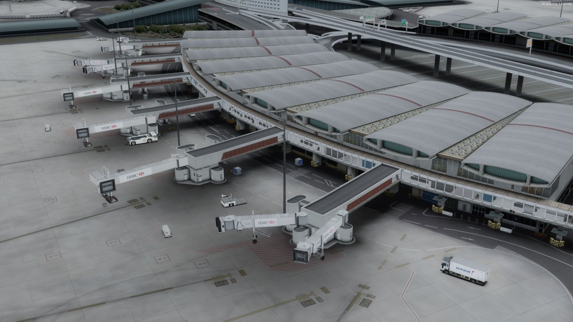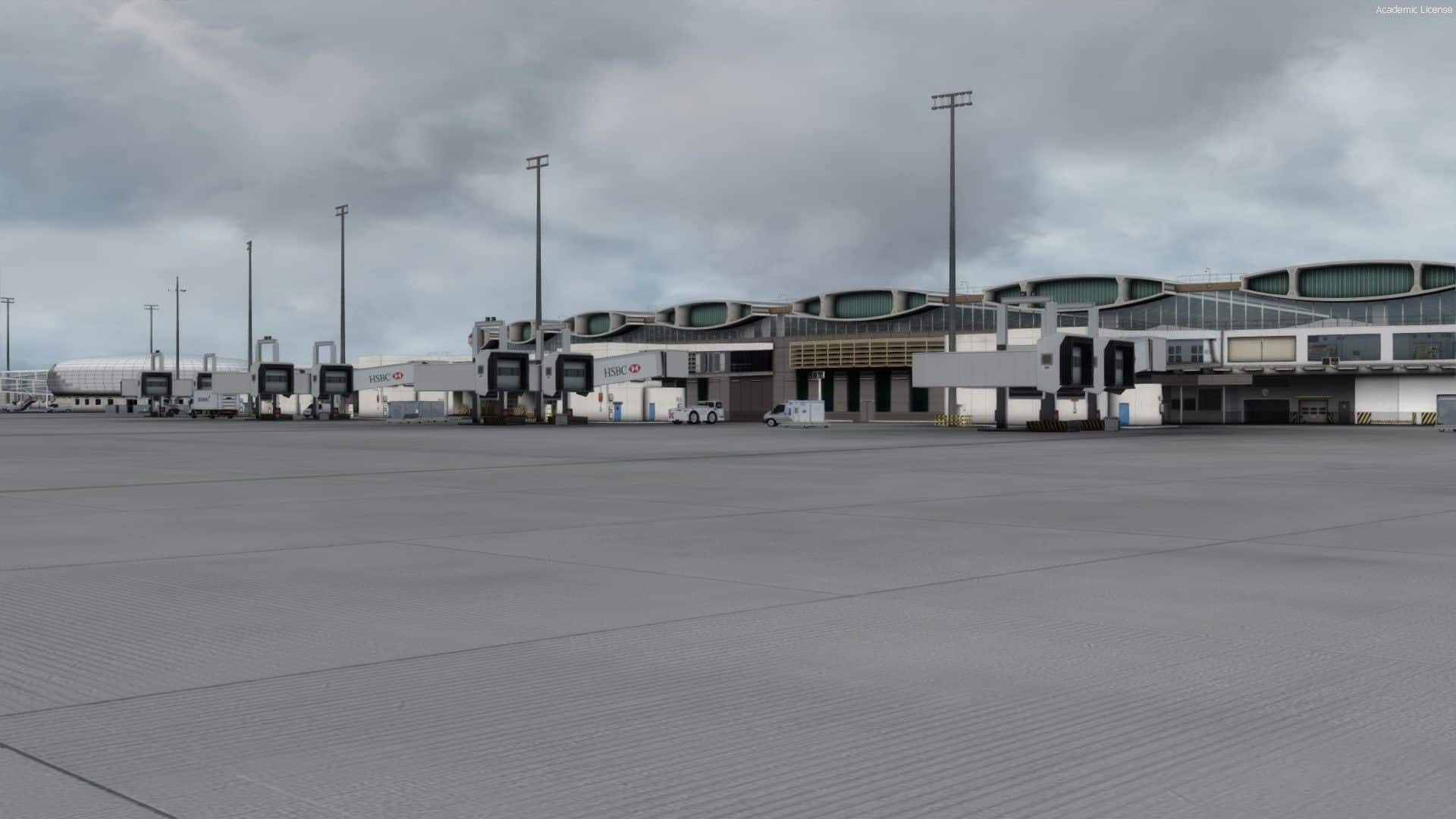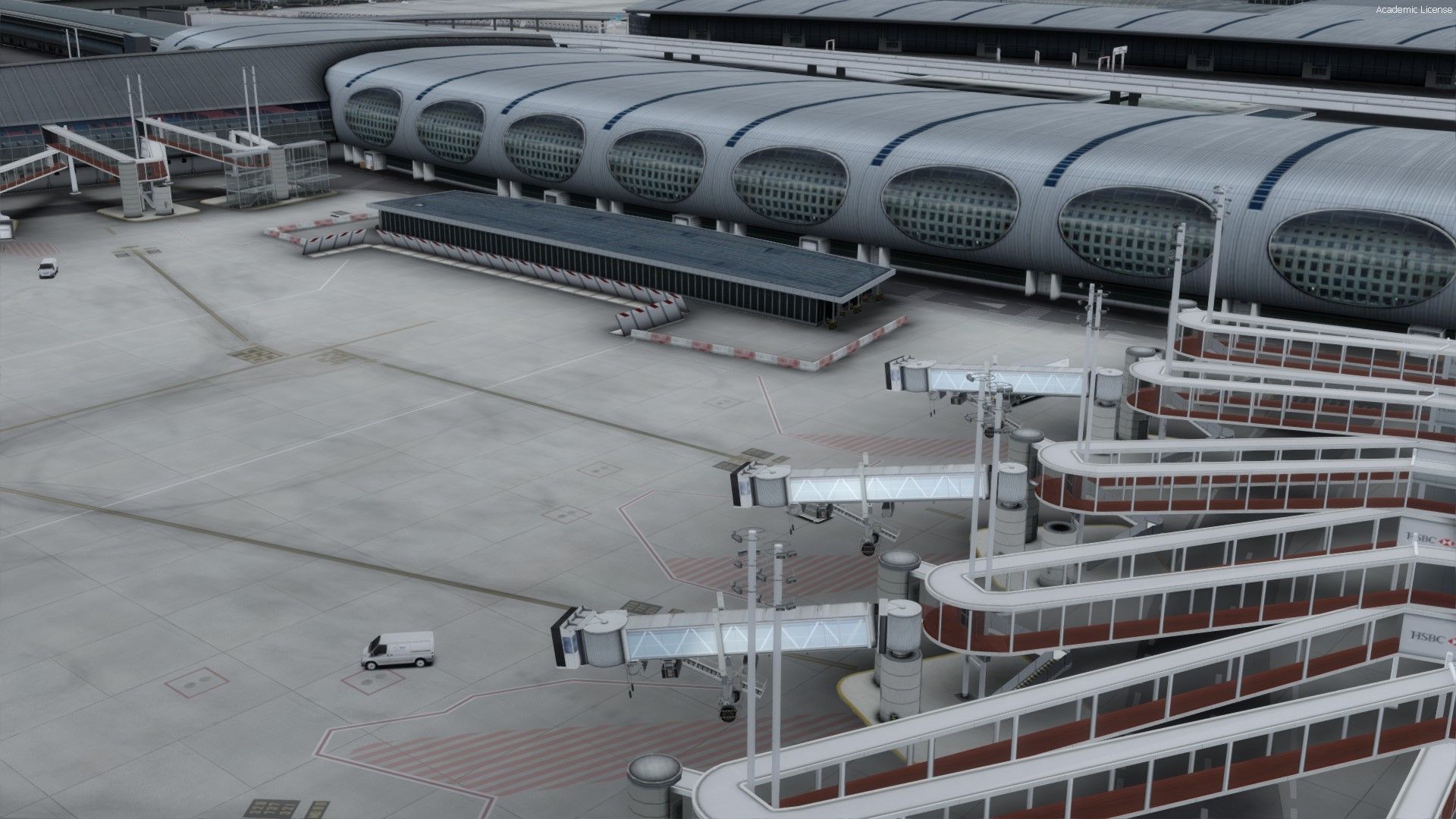 Am Terminal 2F wirkt es an bestimmten Stellen so, als ob die Entwickler vergessen hätten Markierungen für Parkpositionen zu setzen. Dort befinden sich Jetways, die scheinbar keine Position erreichen können. Luftbilder zeigen jedoch auch in der Realität, dass einige Fluggastbrücken in dem genannten Bereich weitab von einer Parkposition liegen. Wie sie genutzt werden, konnte ich nicht recherchieren, von Taxi2Gate wurden sie aber wirklichkeitsgerecht umgesetzt.