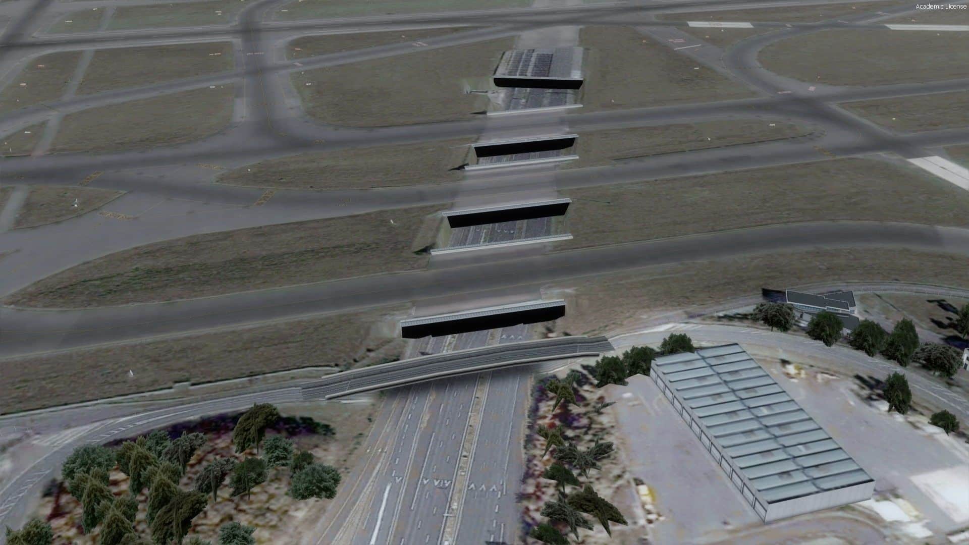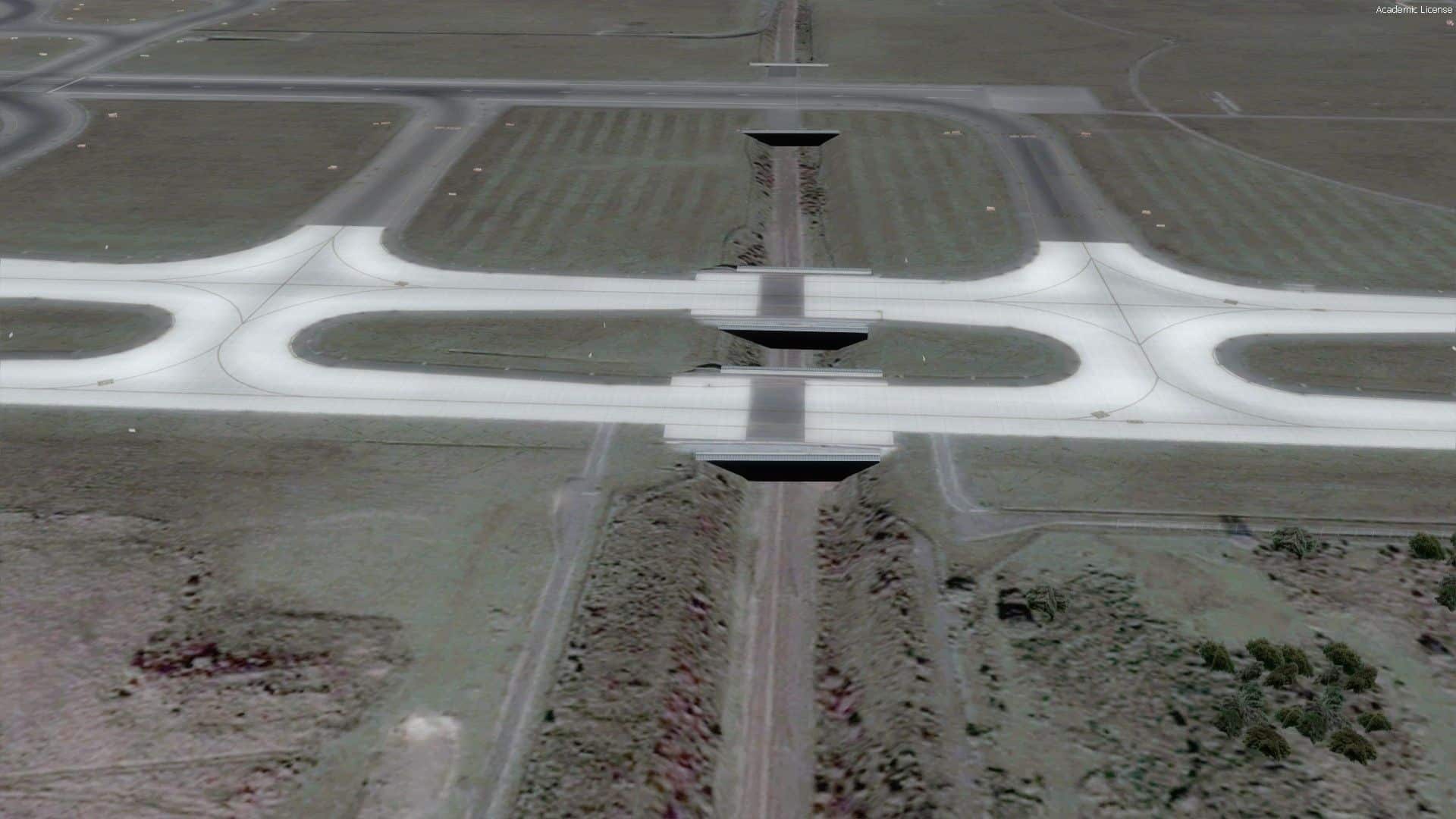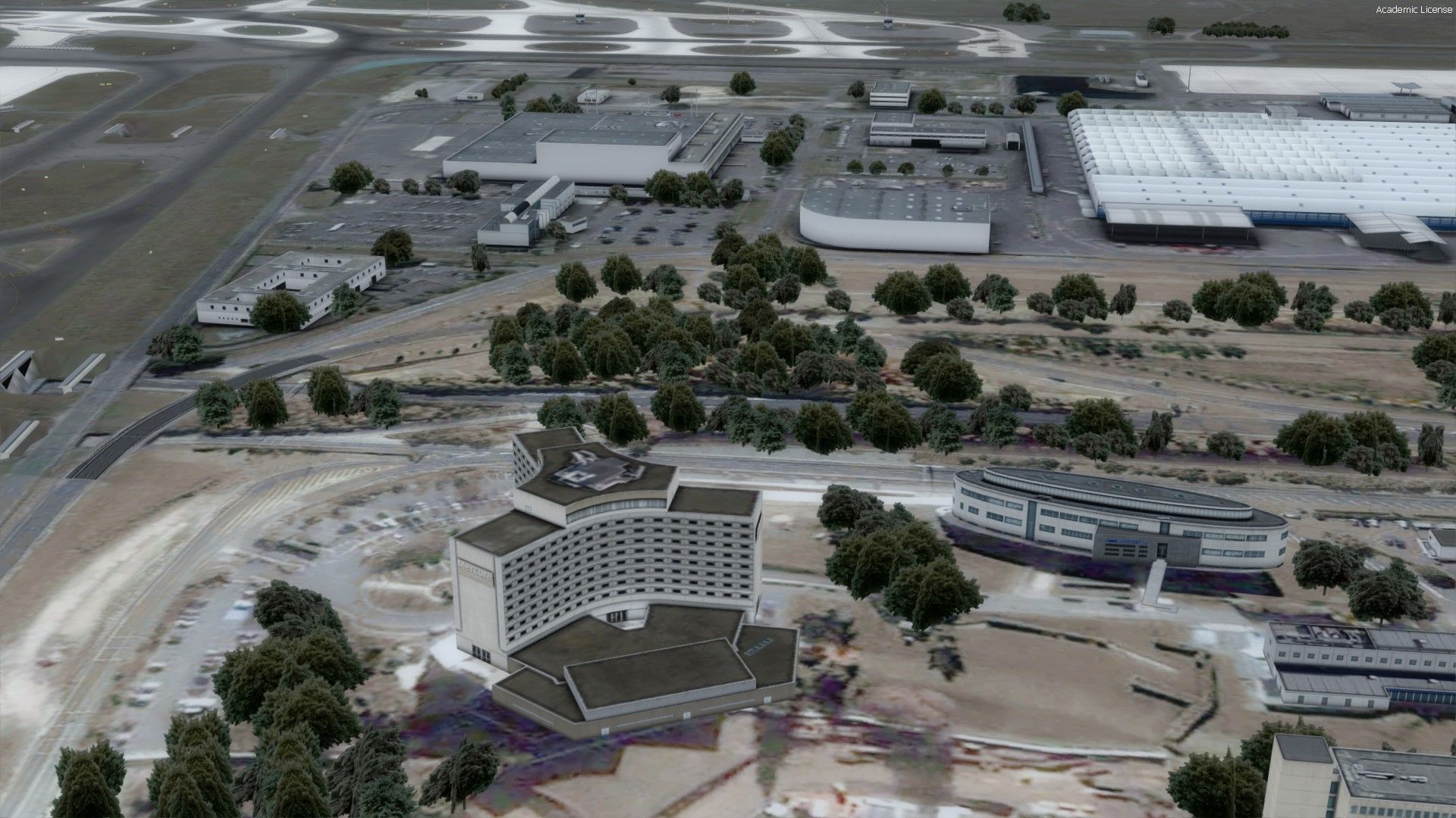 Leider gibt es im westlichen Teil des Terminals wie bereits bei Terminal 1, Konflikte im Höhenmodell. An dieser Stelle tut sich ein großer Spalt auf, der scheinbar nach unten, „ins Nichts“ führt.