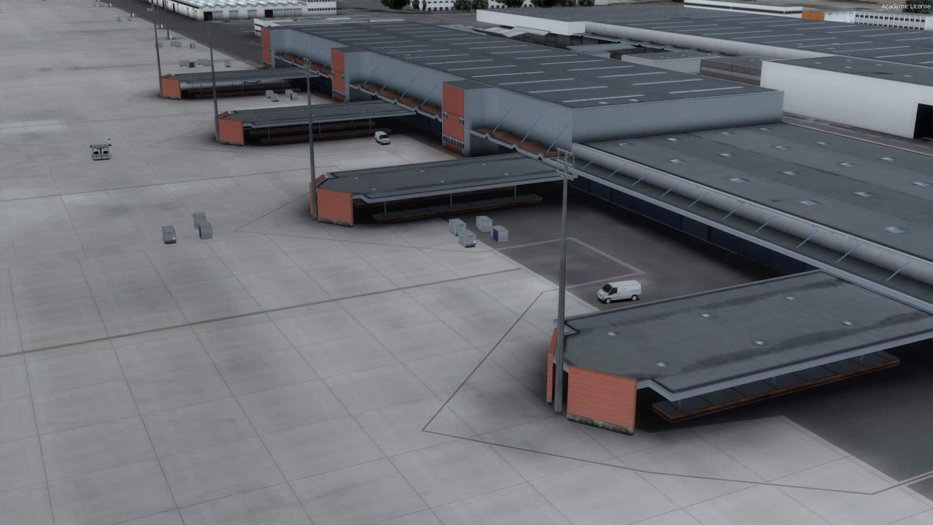 Weniger aufwendig aber dennoch solide wurden die Frachtbereiche des Flughafens umgesetzt. Zwar sind die Texturen an vielen Stellen etwas grober, hier und da findet man jedoch trotzdem nette Details und auch die Farbwahl gefällt und passt gut zum Umfeld.