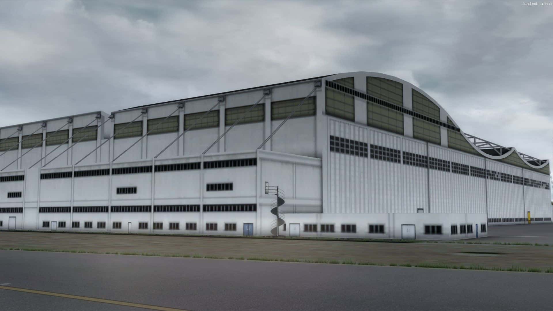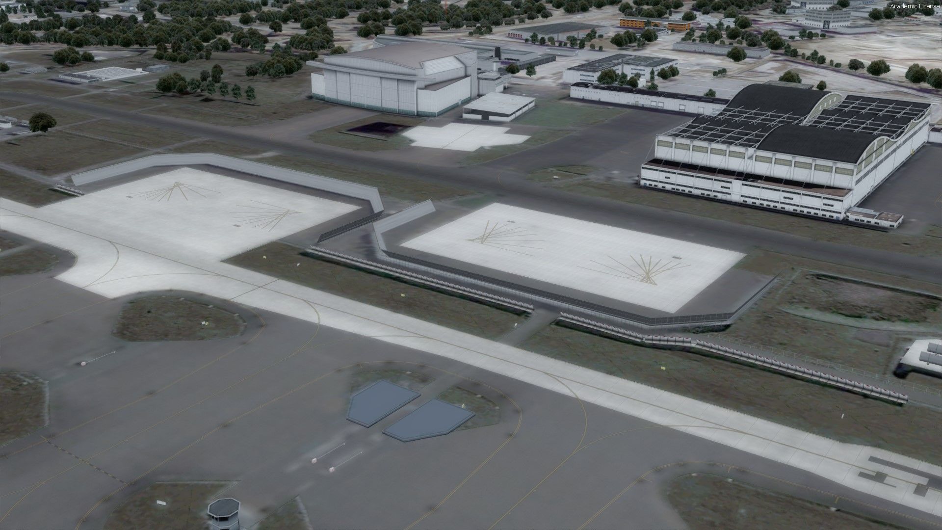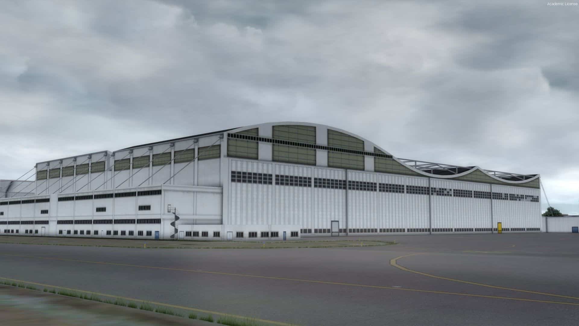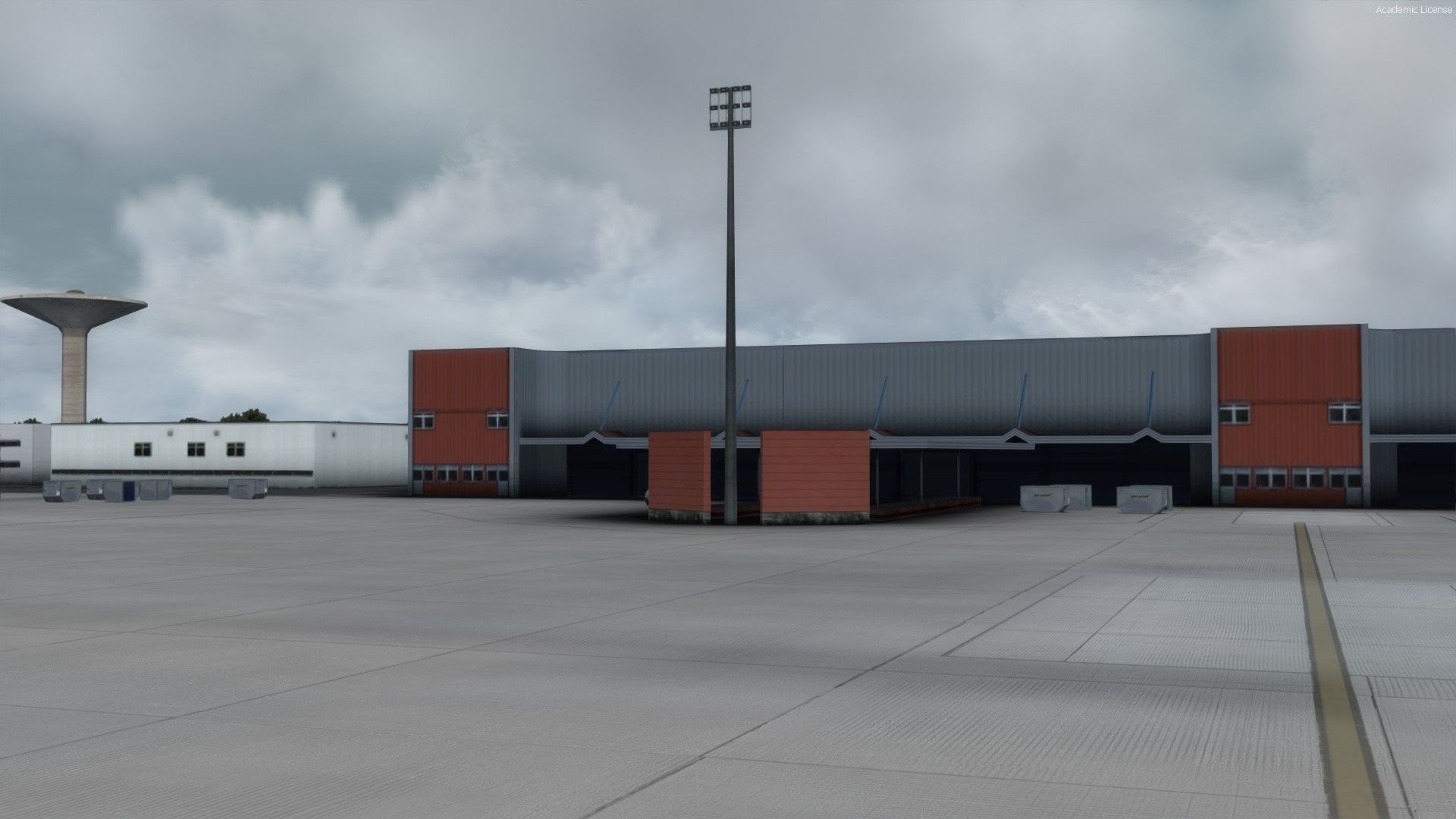 Gleiches gilt für die Wartungsbereiche. Die Gebäudemodelle lassen sich gut anschauen, Dach- und Torkonstruktionen von Hangars wurden sauber umgesetzt.