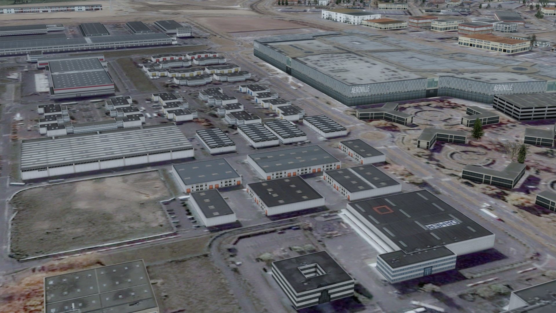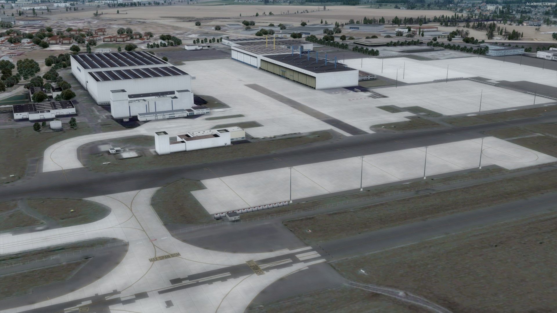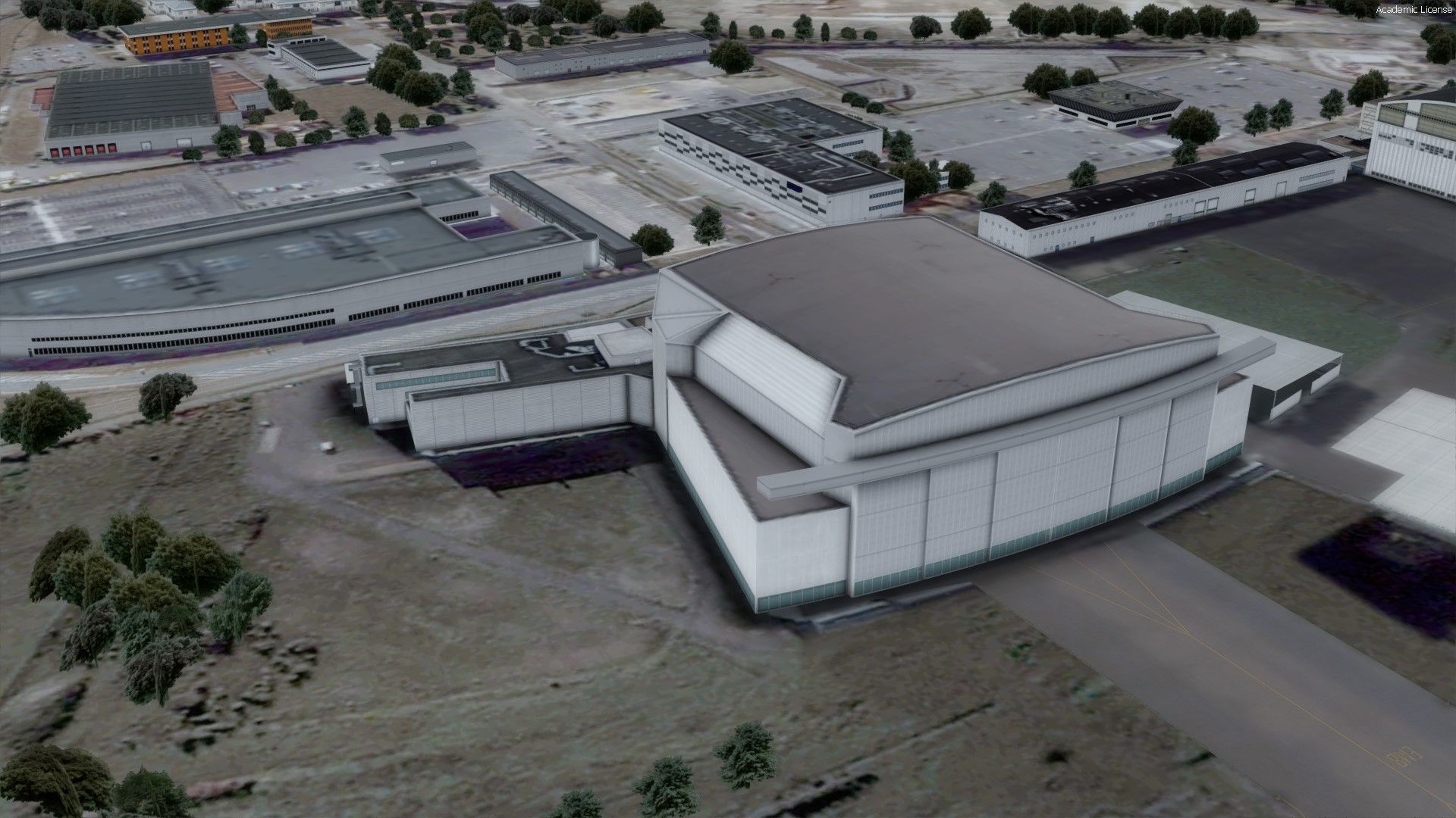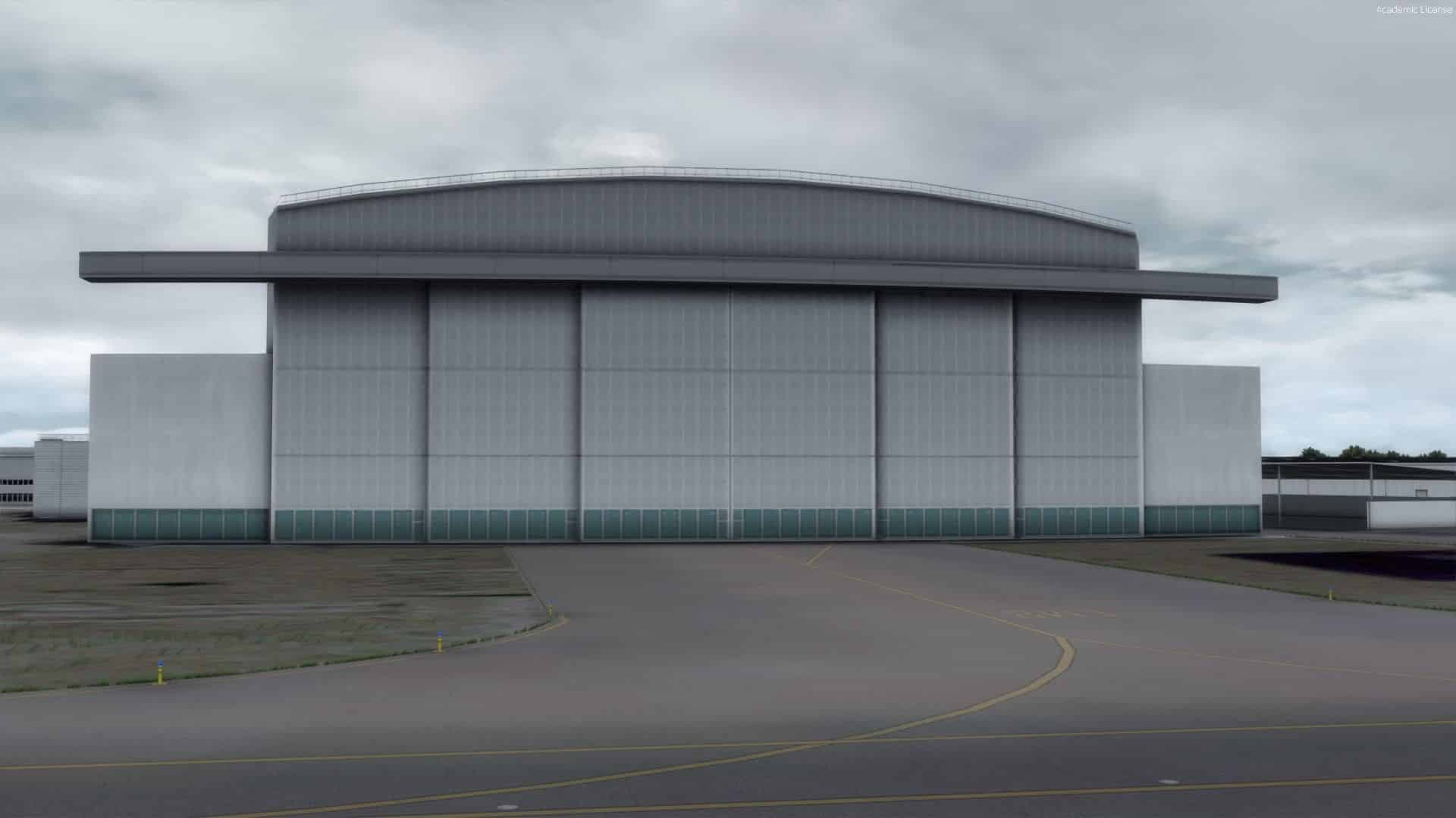 Gleiches gilt für die Wartungsbereiche. Die Gebäudemodelle lassen sich gut anschauen, Dach- und Torkonstruktionen von Hangars wurden sauber umgesetzt.