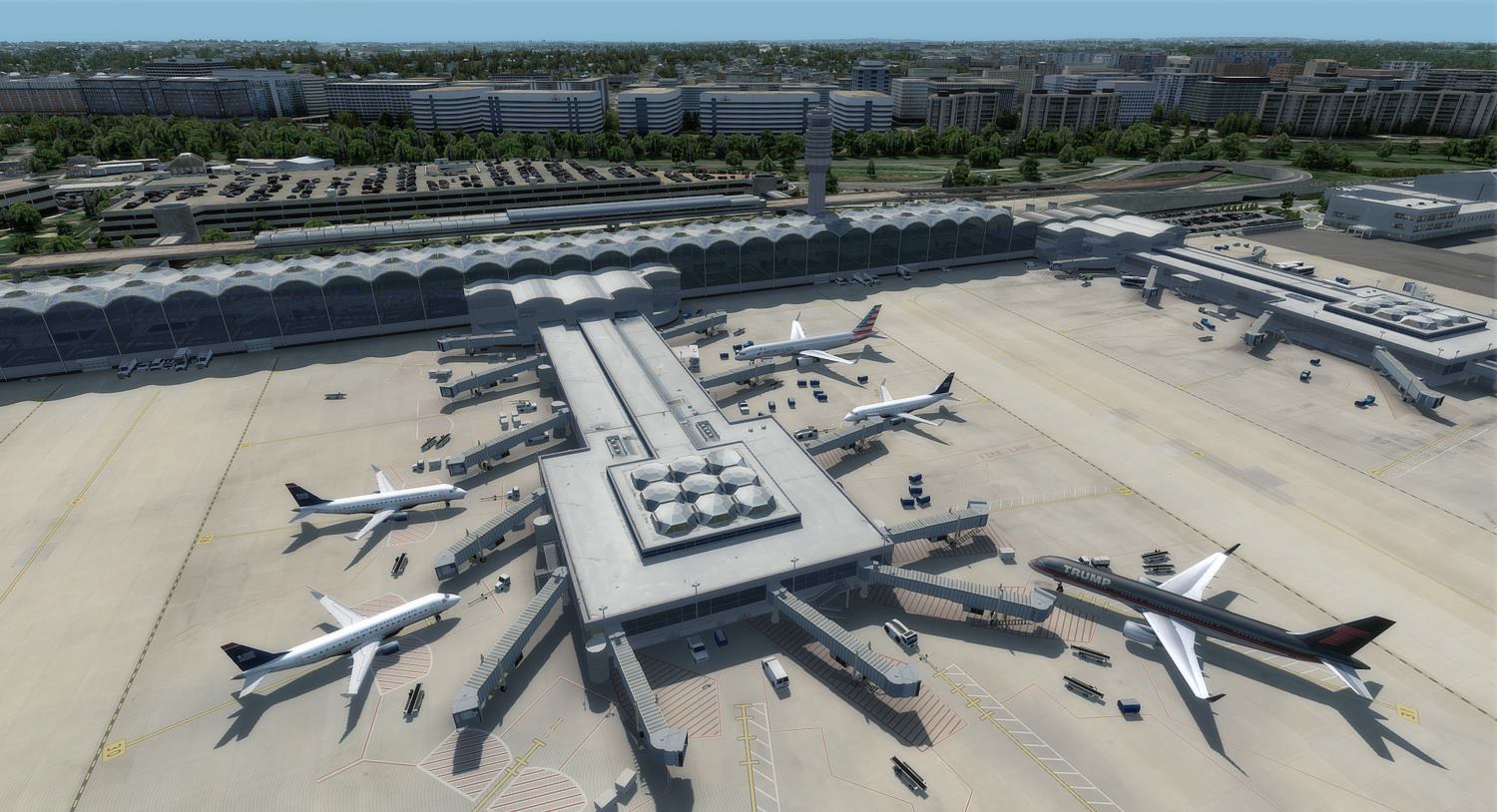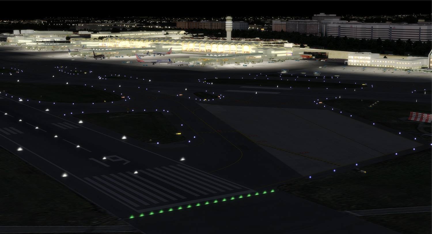 • Detailed scenery of KDCA Washington National Airport, with terminal interiors, detailed ground markings, wet asphalt at rain, SODE animated jetways, static aircraft etc.