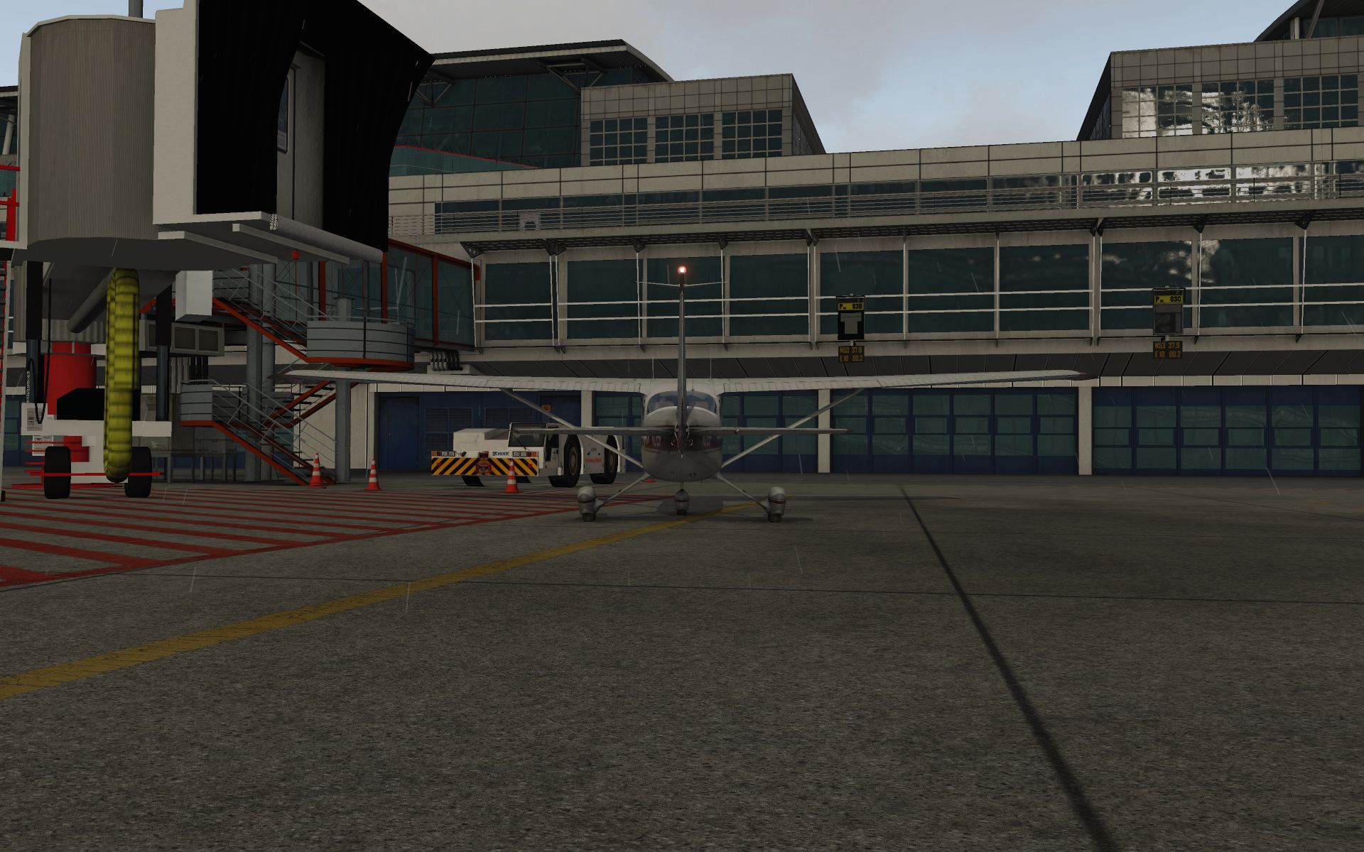 Während JustSim sich sofort auf die neuen optischen Features konzentrierte und ansonsten so wenig tat wie irgend möglich, konzentrierte sich Stairport Sceneries auf neue Methoden und Features selbst. Und das sieht man dem Flughafen an.