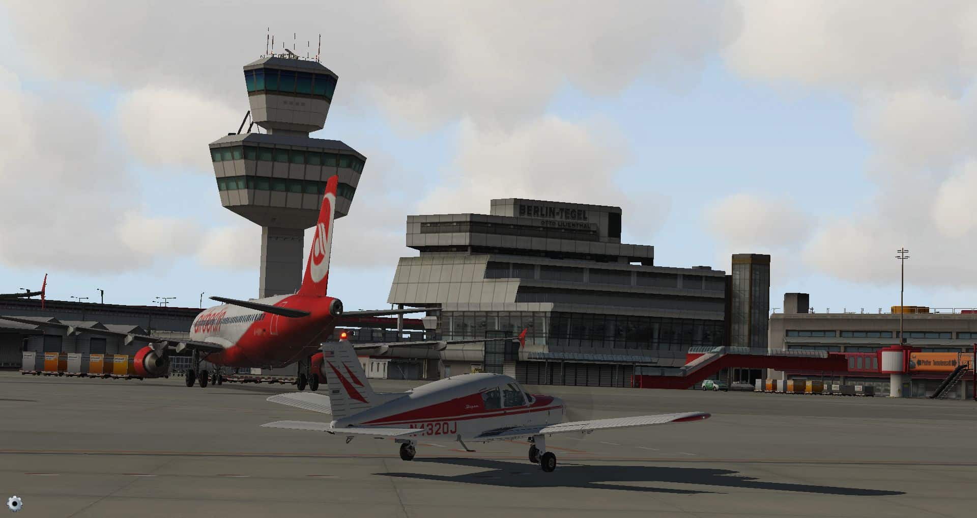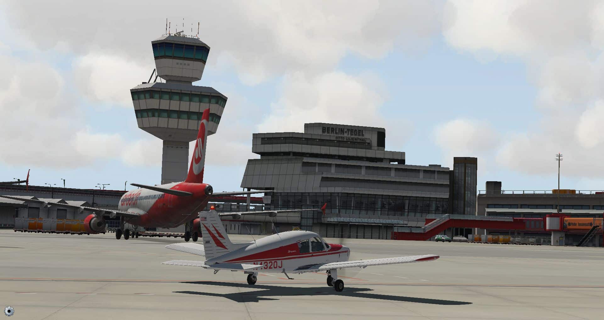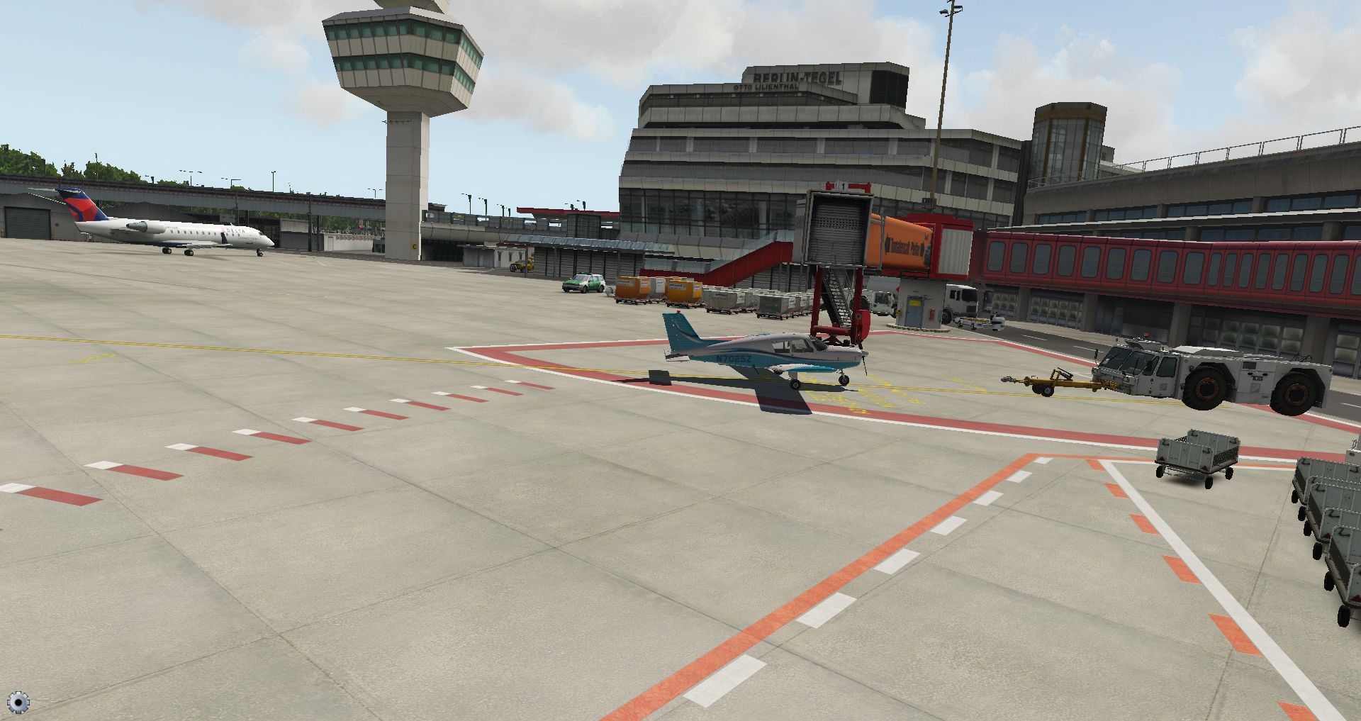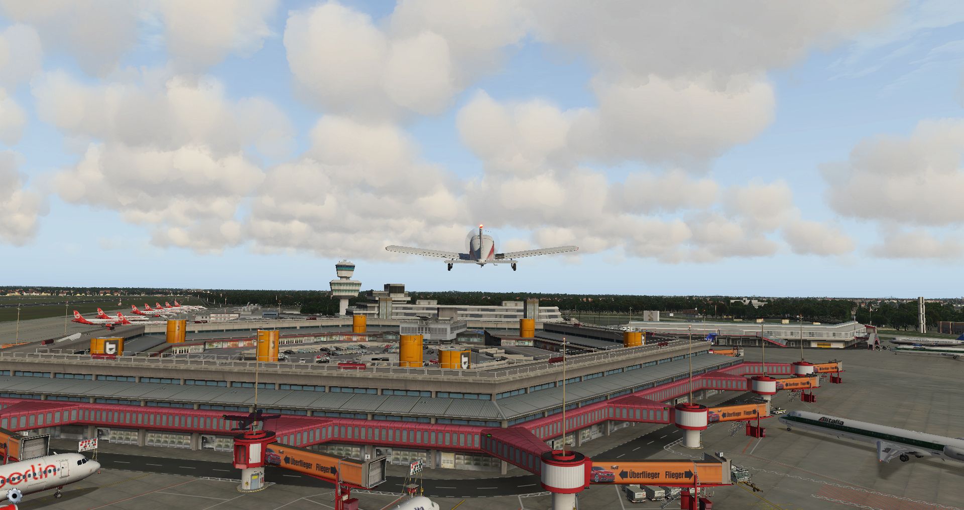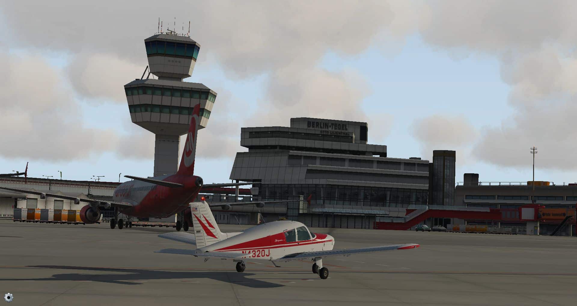 Schon die Bodenmarkierungen sind vielfältiger und detaillierter und wo die Konkurrenz komplett auf KI Flugzeuge verzichtet, ist der KI Verkehr schon fast das erste, was einen in Tegel begegnet.