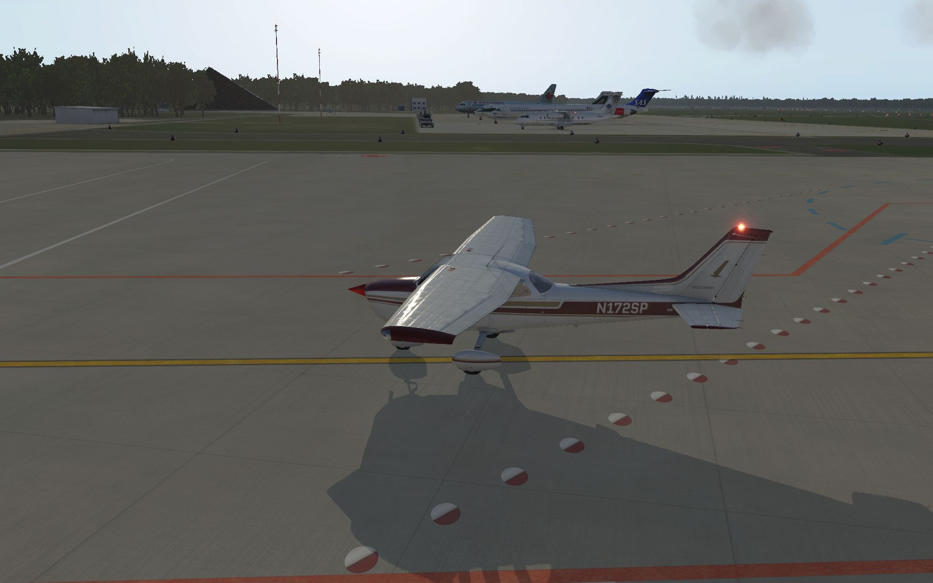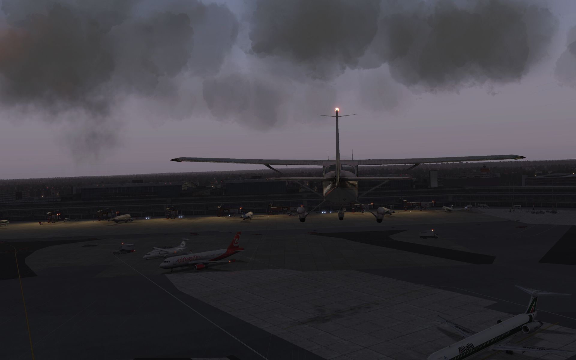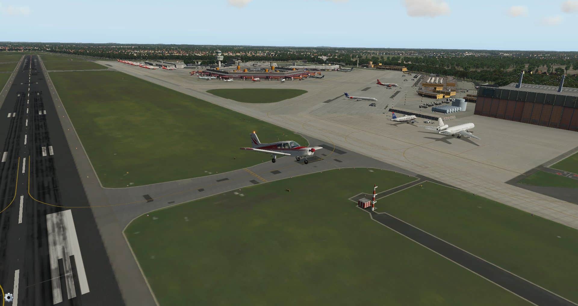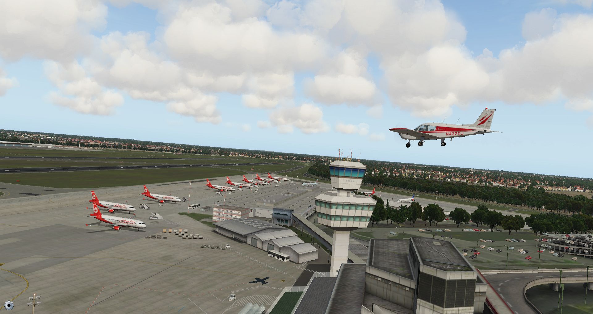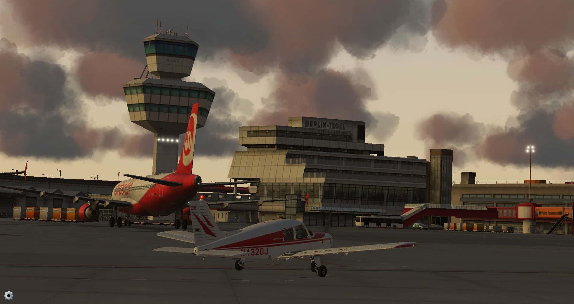 Schon die Bodenmarkierungen sind vielfältiger und detaillierter und wo die Konkurrenz komplett auf KI Flugzeuge verzichtet, ist der KI Verkehr schon fast das erste, was einen in Tegel begegnet.