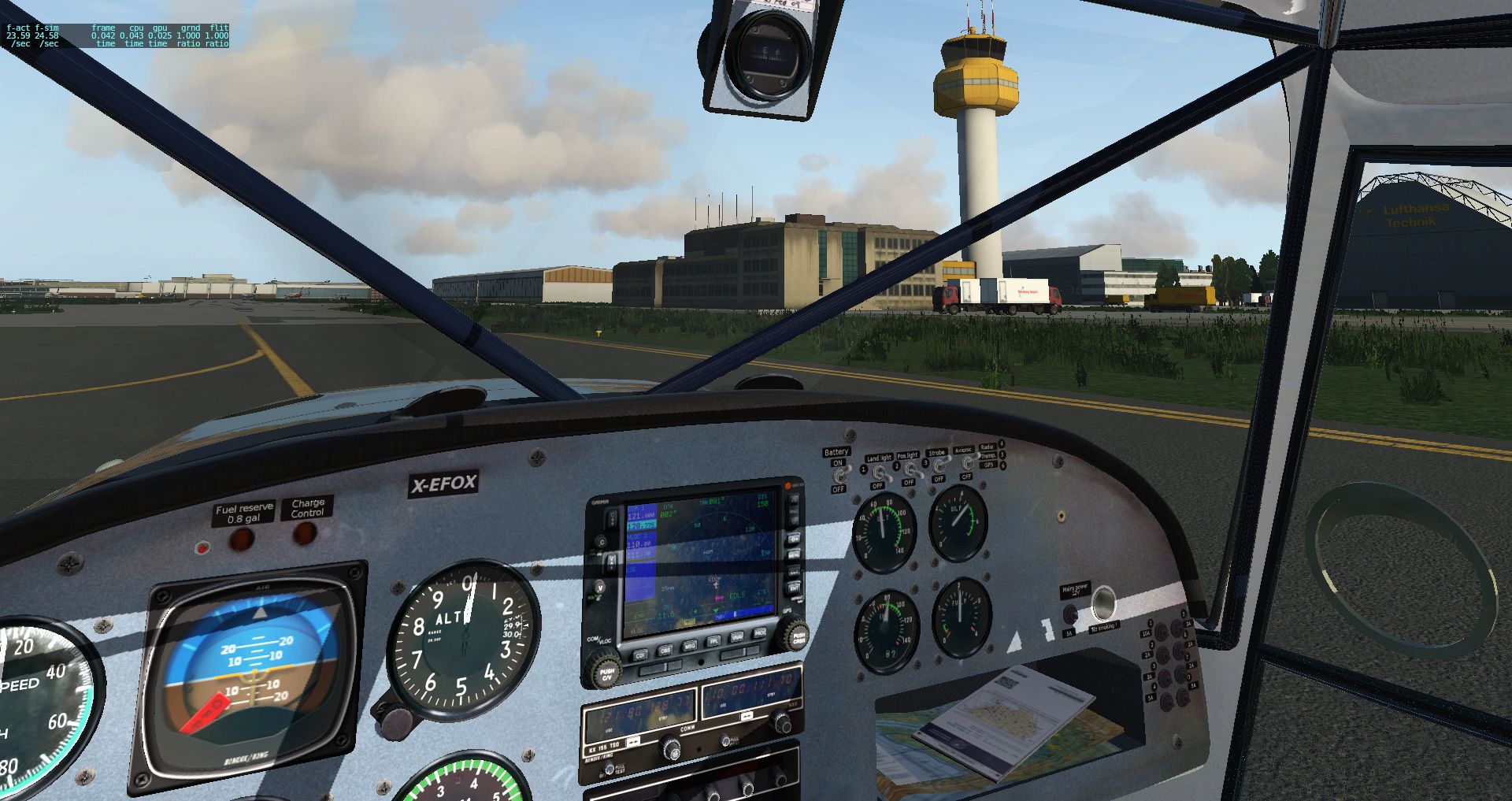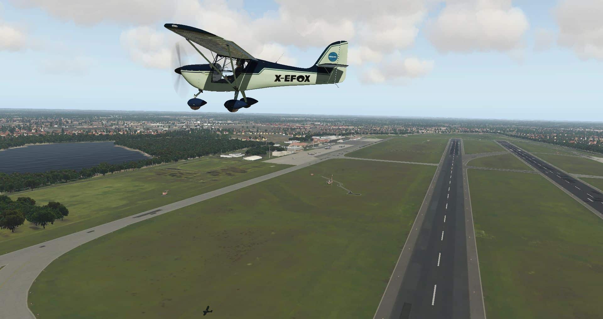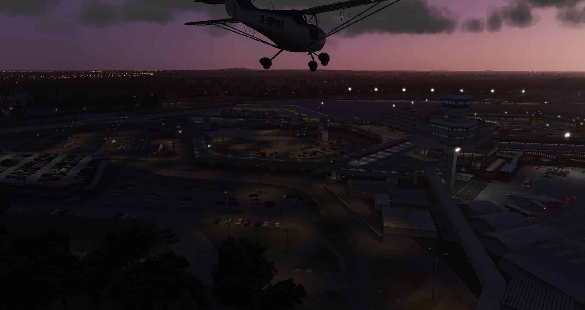In der Zwischenzeit hat es auch noch ein kleines Update von Hamburg gegeben, womit man die Beleuchtung der Taxiways noch einmal überarbeitet hat. Eine gute Gelegenheit mit der inzwischen dritten Version der Eurofox einen Kontrollflug zu machen. Schließlich kann diese Kiste auf jeden größeren Handtuch abheben und wirklich langsam fliegen.