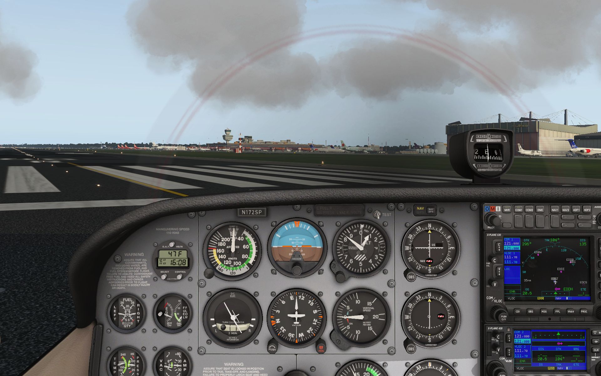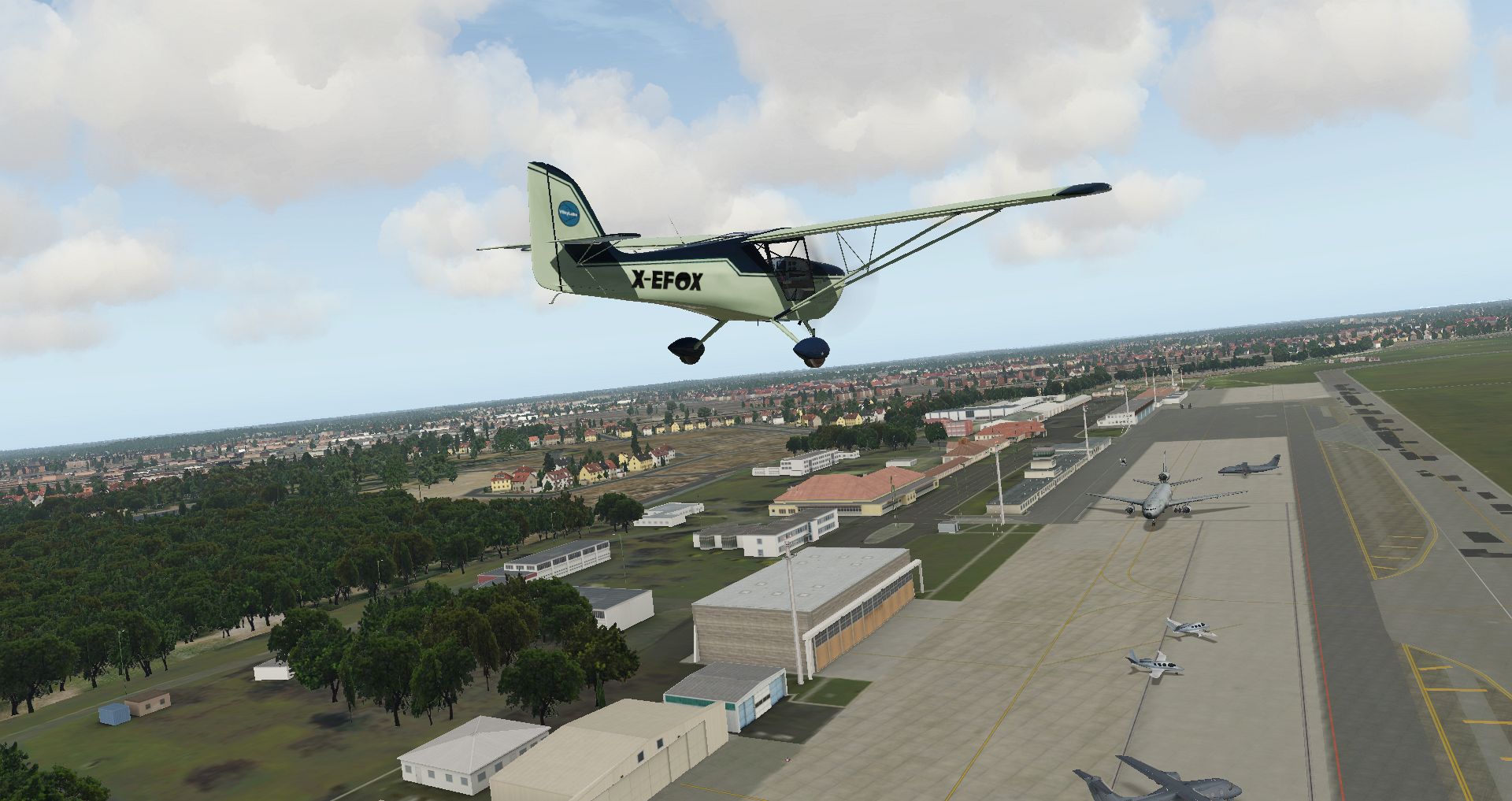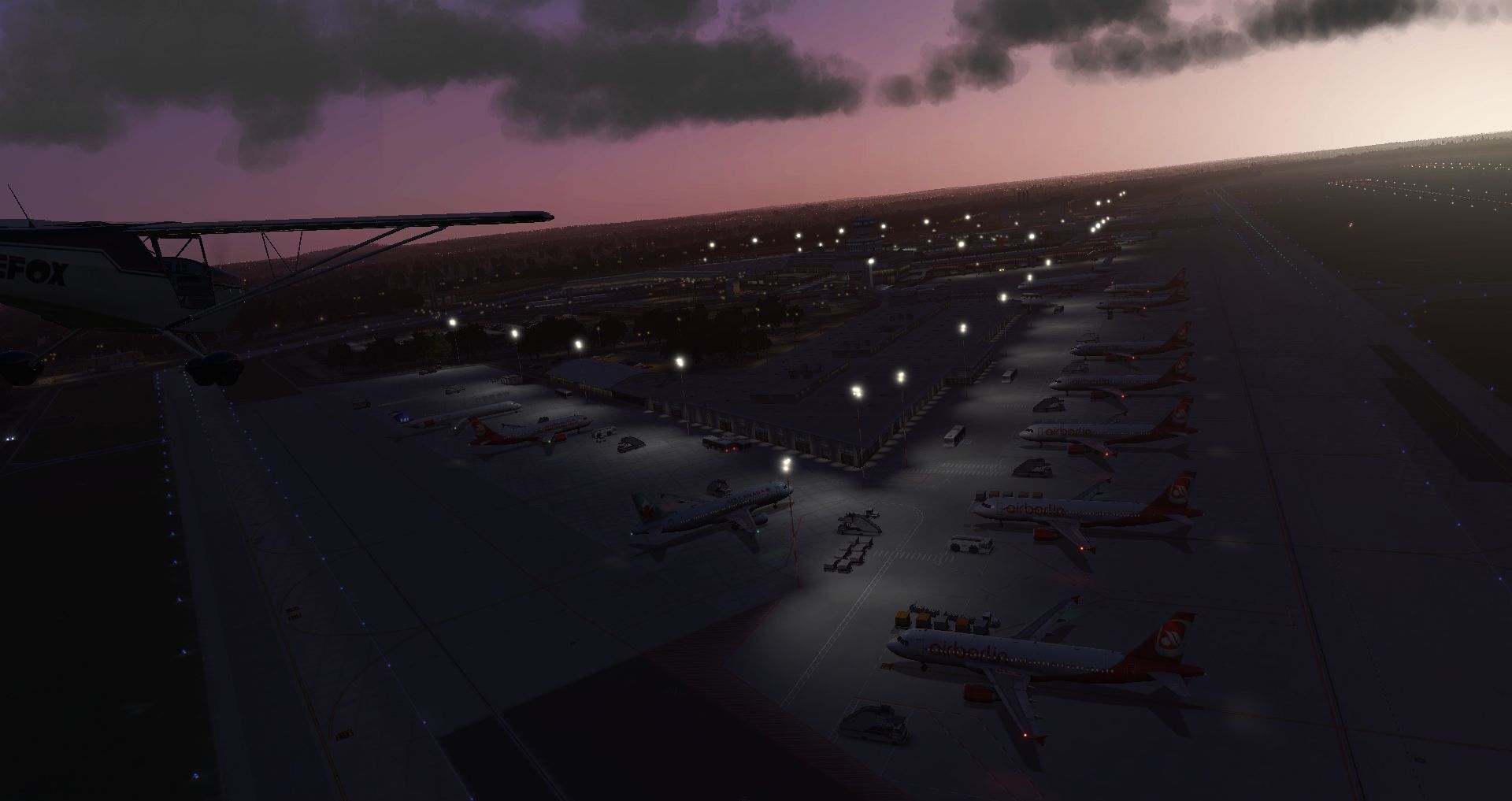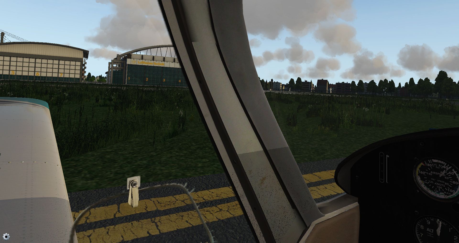 In der Zwischenzeit hat es auch noch ein kleines Update von Hamburg gegeben, womit man die Beleuchtung der Taxiways noch einmal überarbeitet hat. Eine gute Gelegenheit mit der inzwischen dritten Version der Eurofox einen Kontrollflug zu machen. Schließlich kann diese Kiste auf jeden größeren Handtuch abheben und wirklich langsam fliegen.